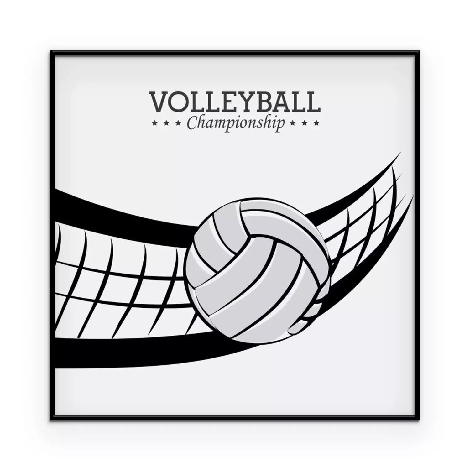 Poster: Volleyball Beschriftung und Ball, der das Netz trifft