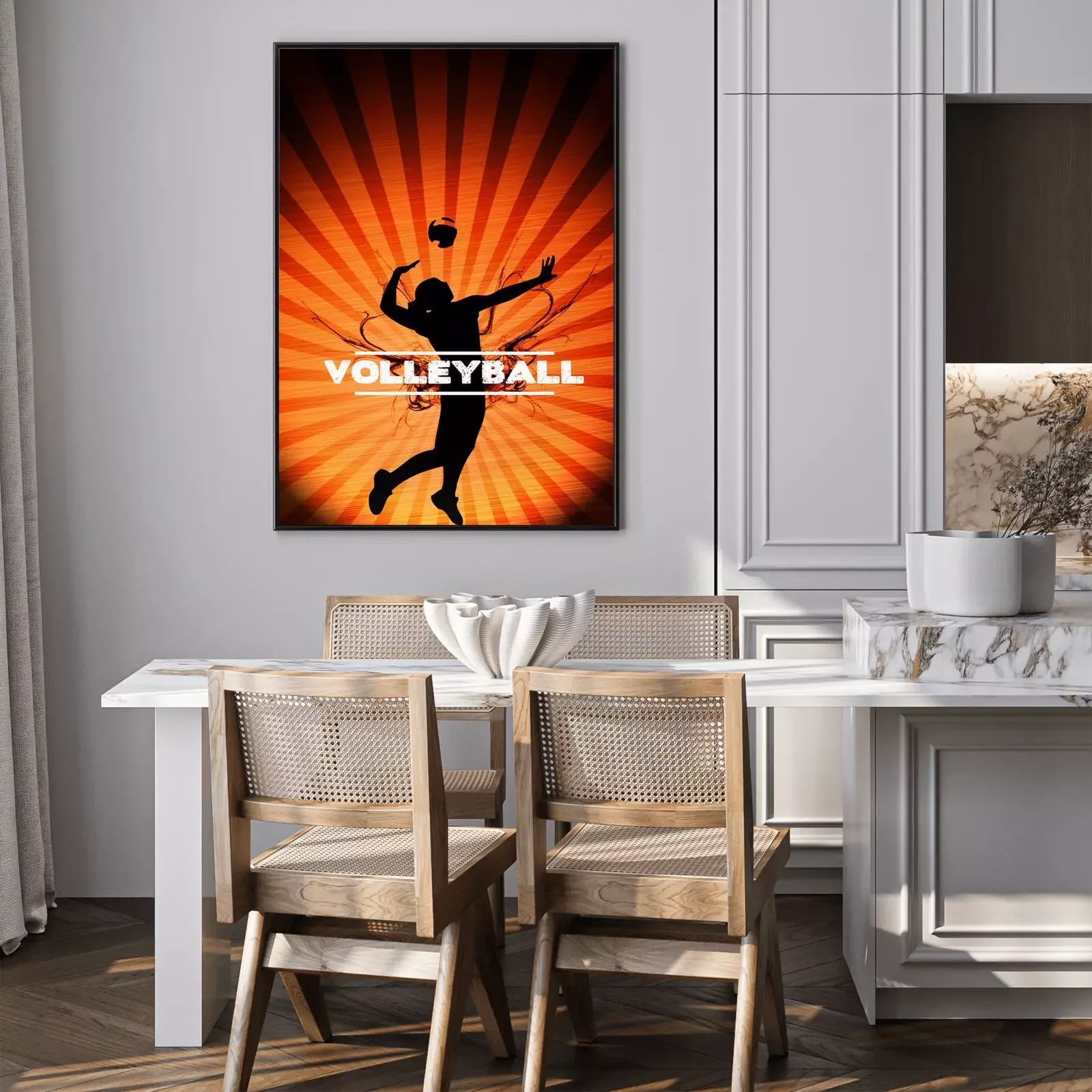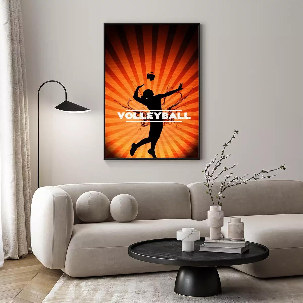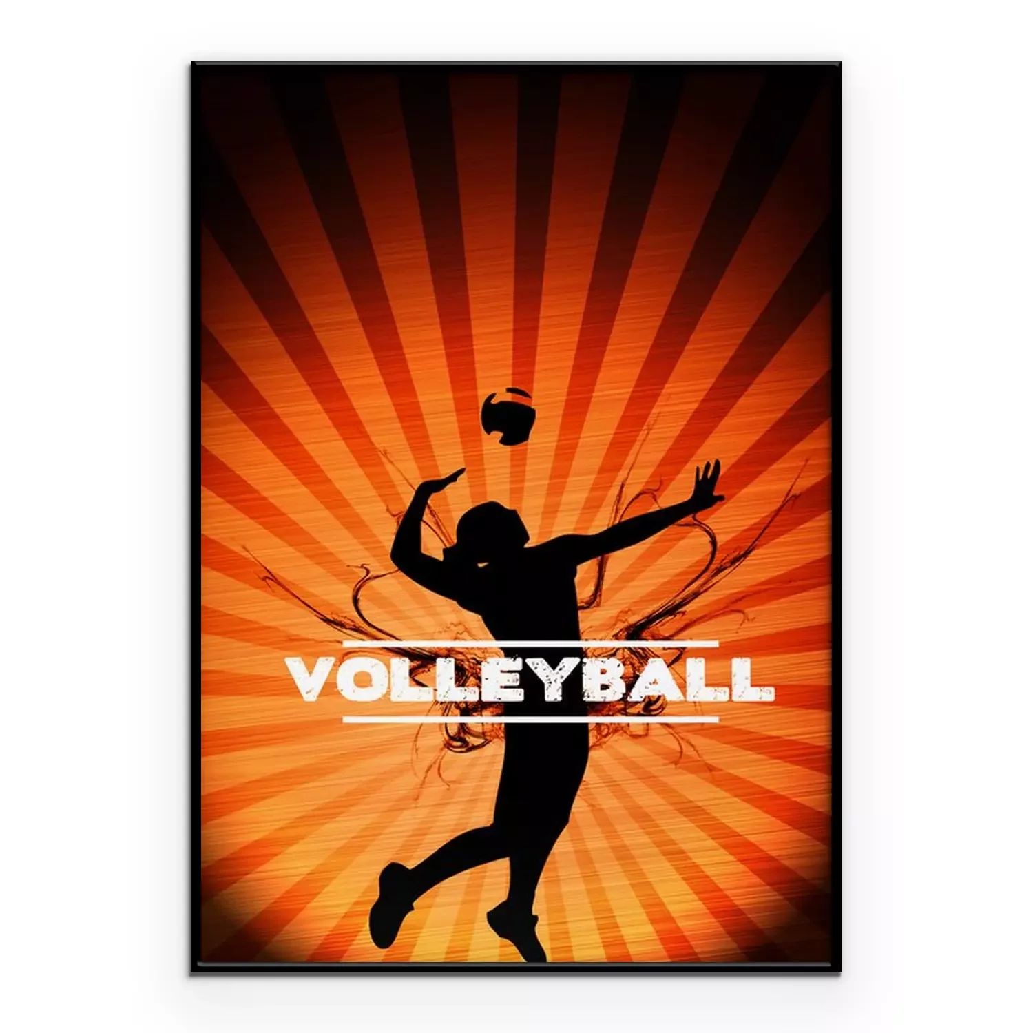 Poster: Volleyball Beschriftung und ein aufschlagender Volleyballspieler im Hintergrund
