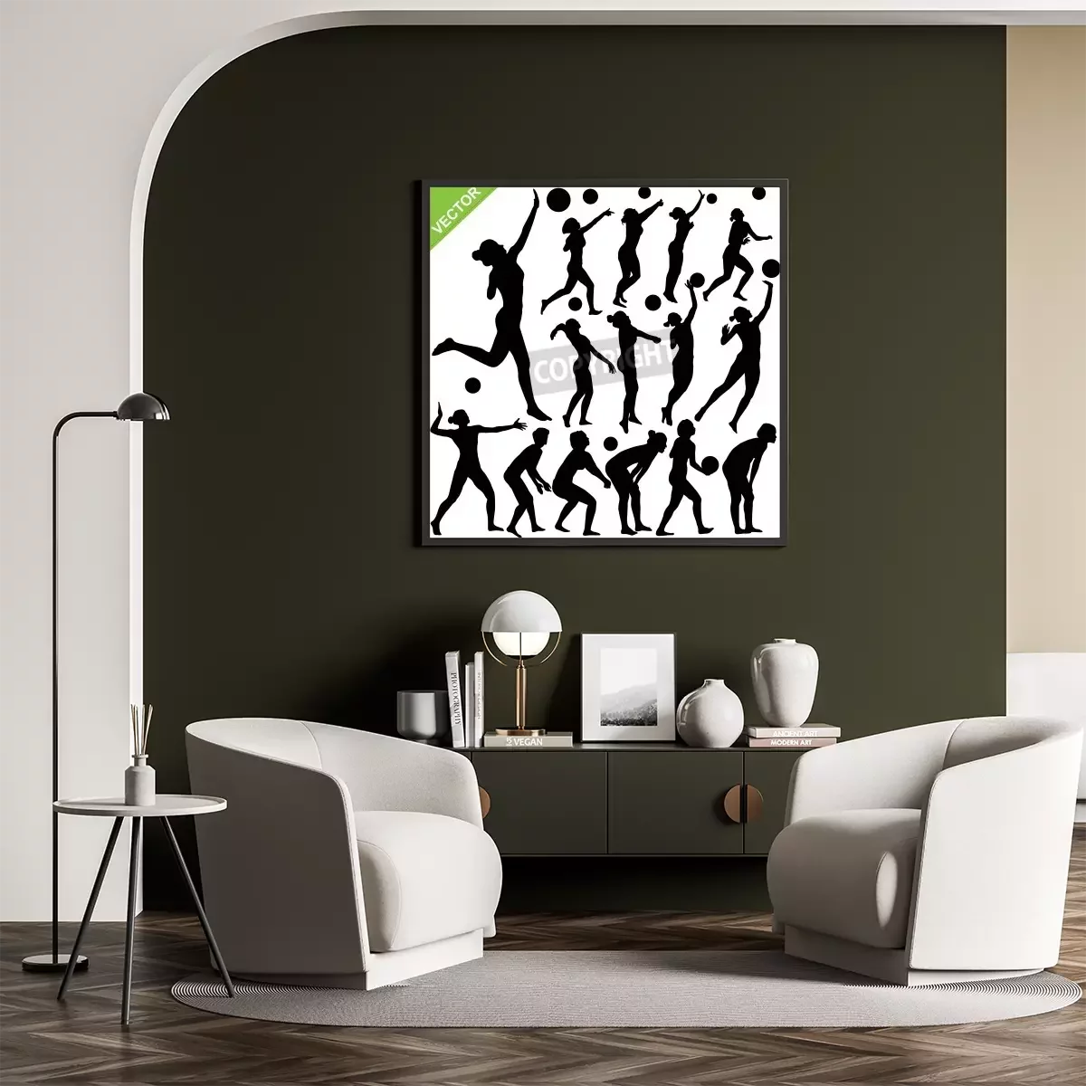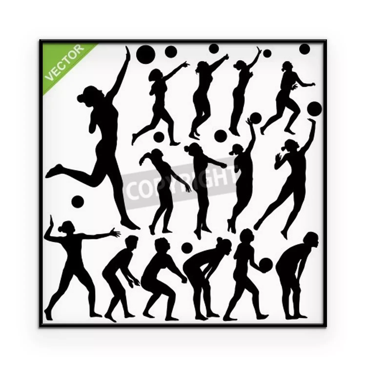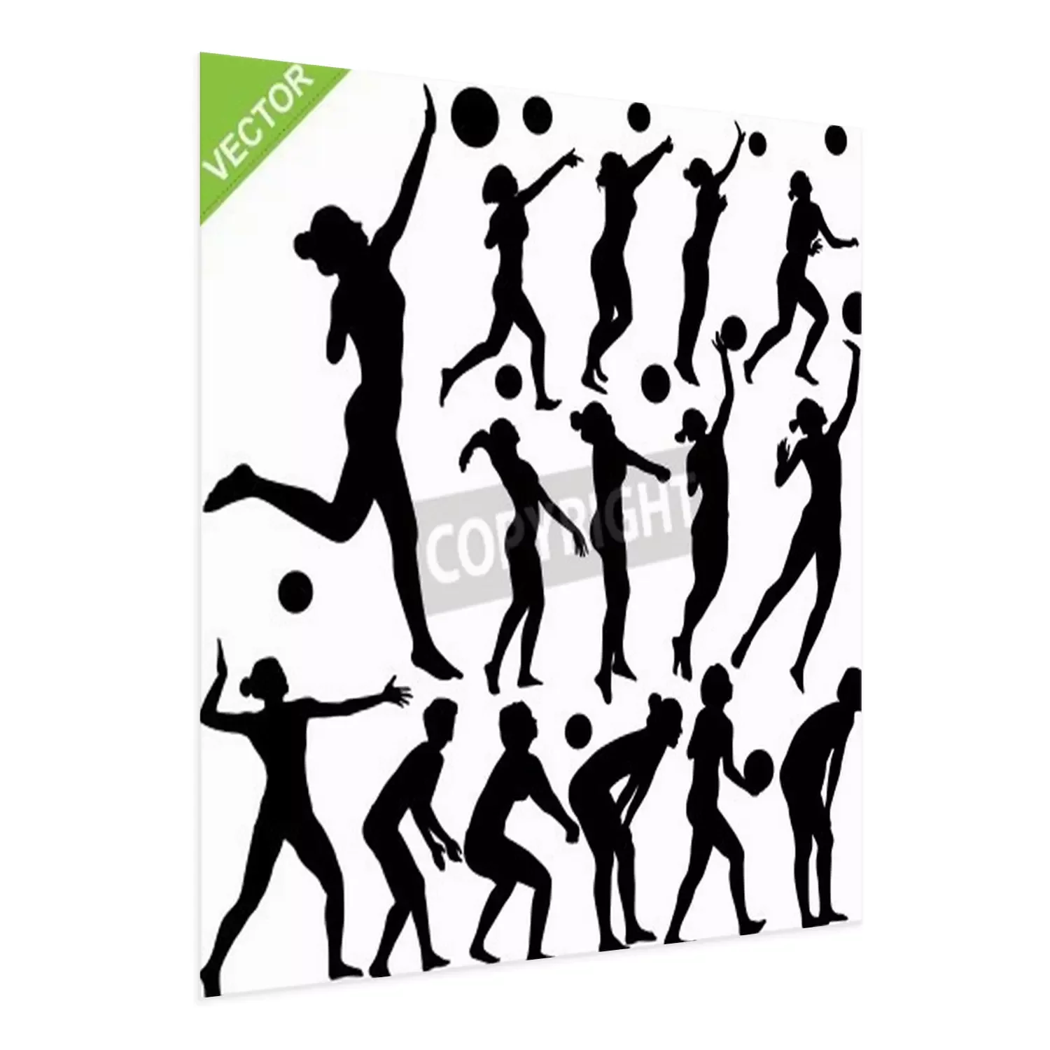 Poster Volleyball Frau in verschiedenen Volleyball-Posen