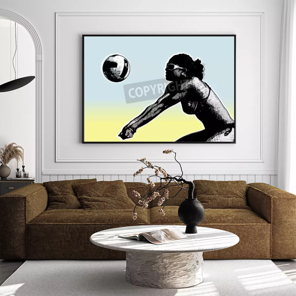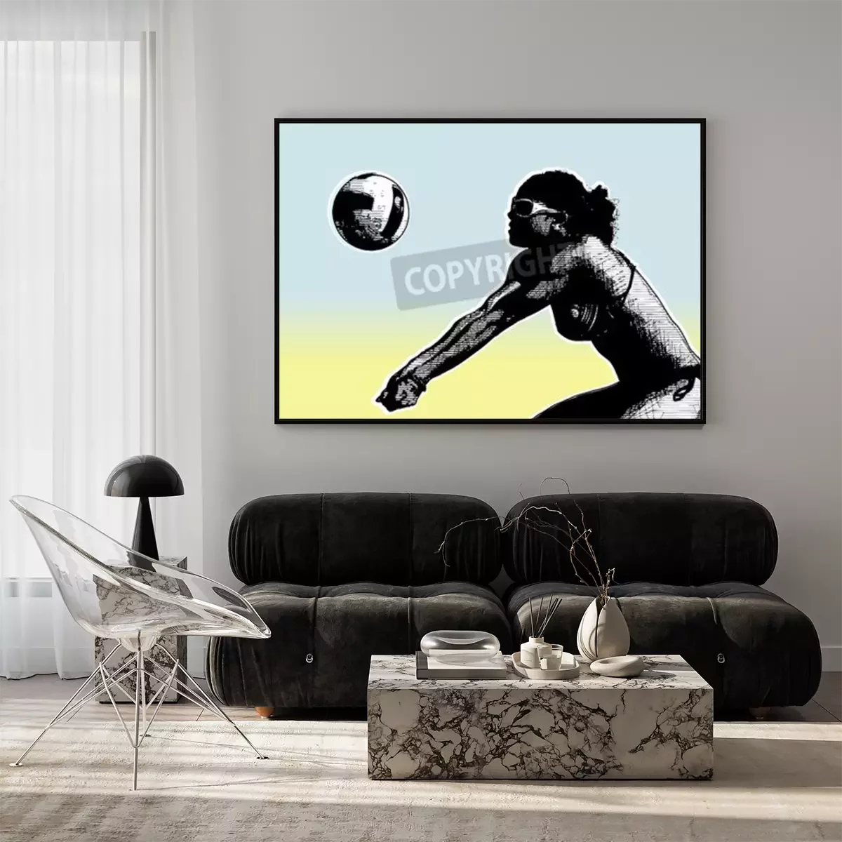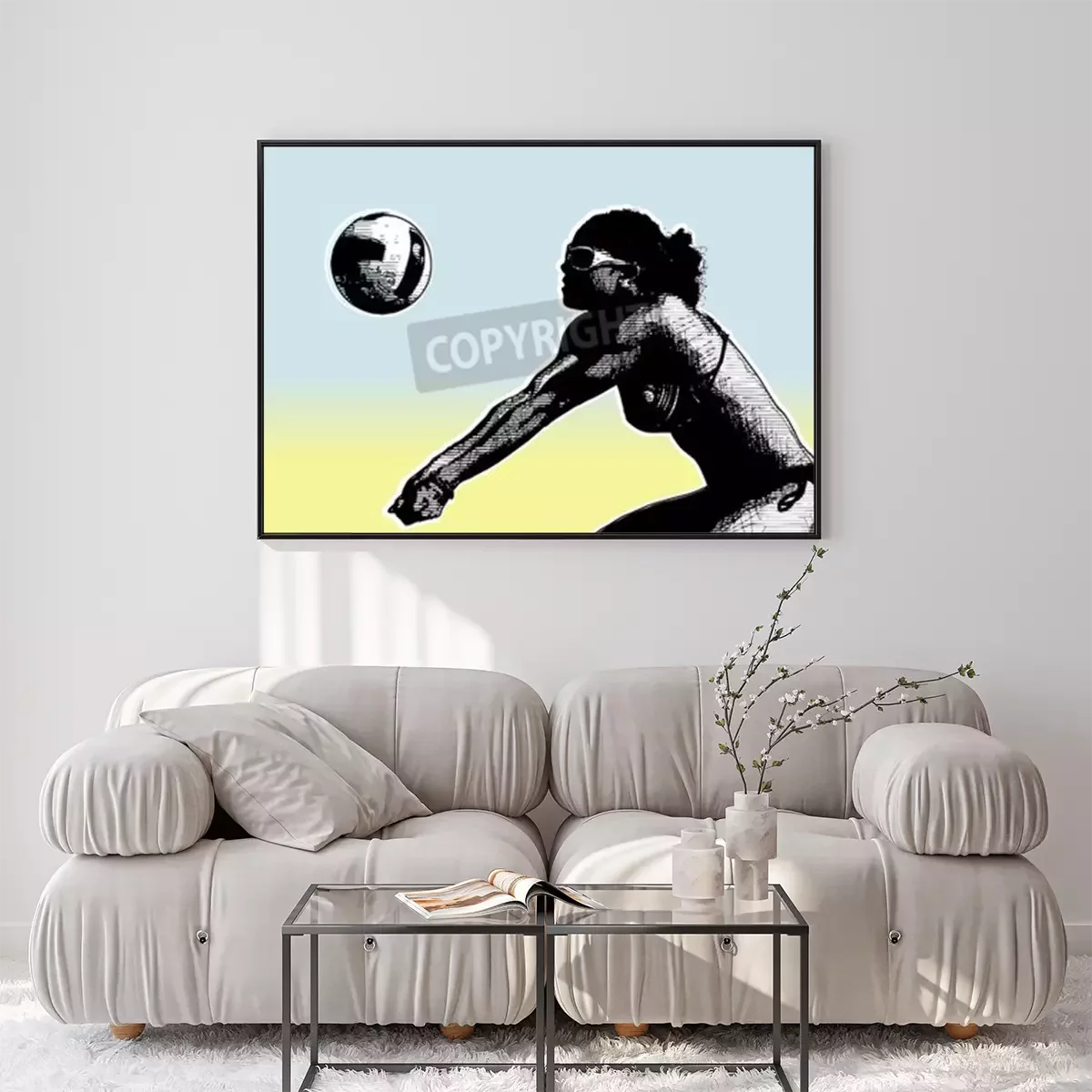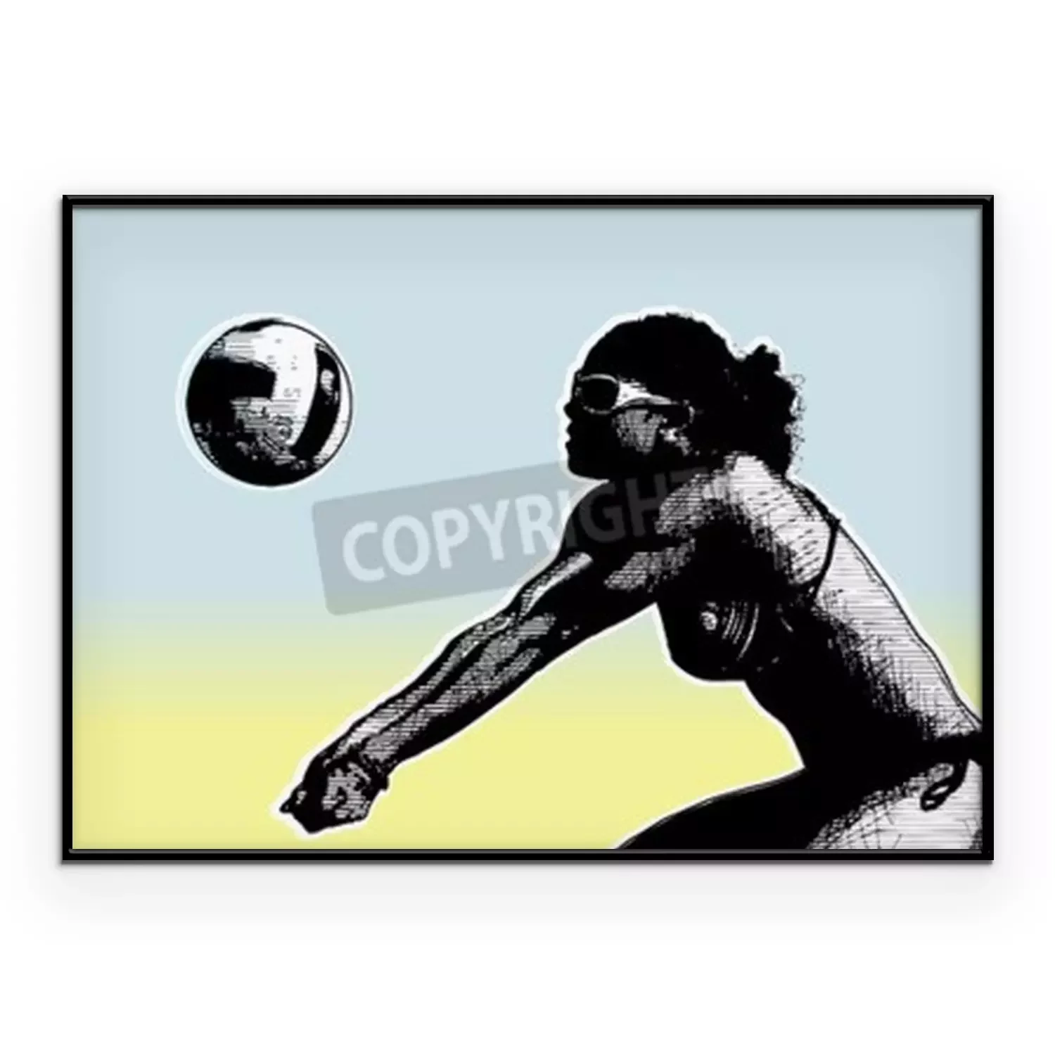 Poster Volleyball Strandspiel Grafik mit Volleyballspielerin