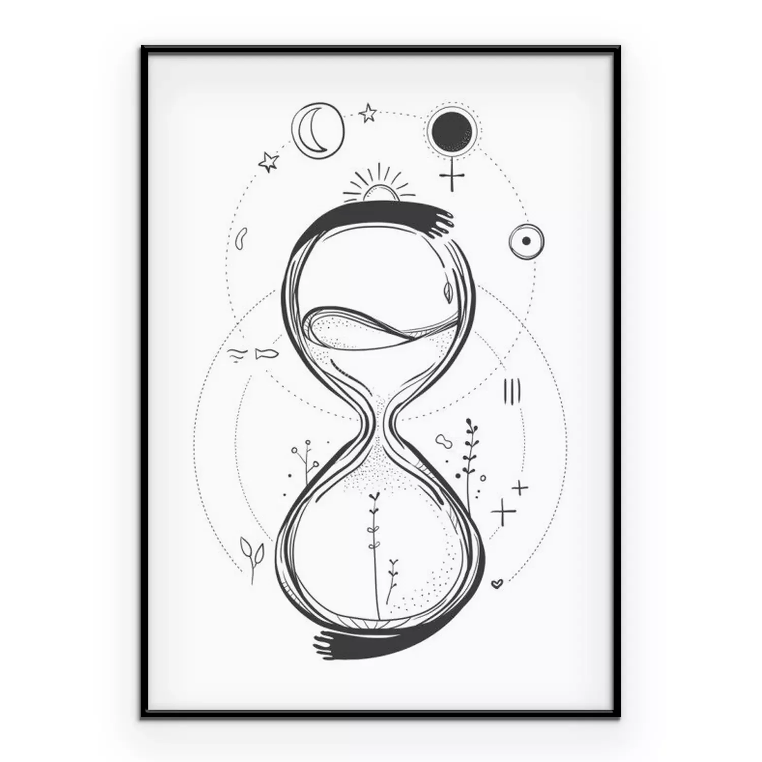 Poster: Von Blumensymbolen umgebene Sanduhr