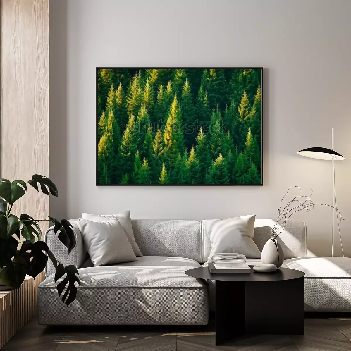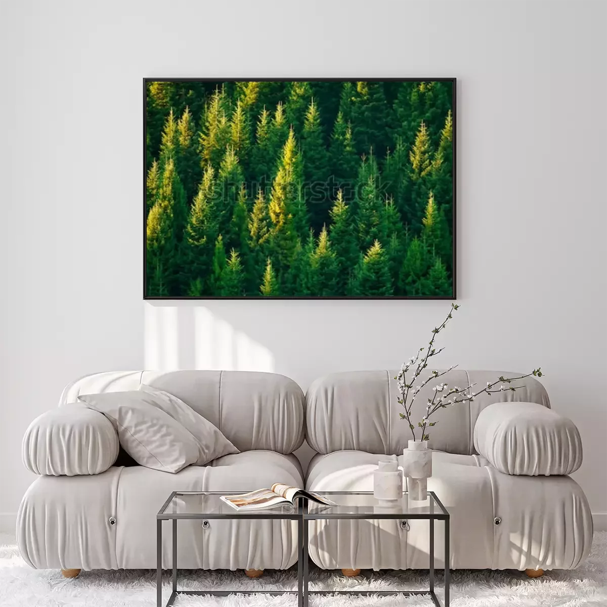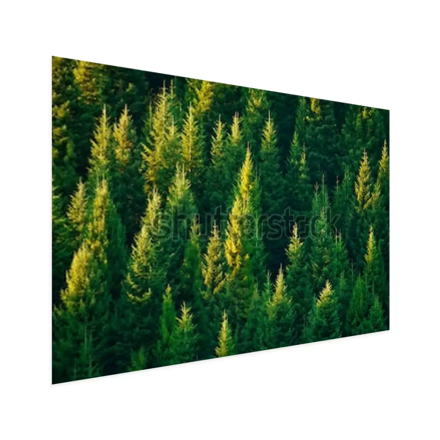 Poster: Von oben von Sonnenstrahlen beleuchteter Wald