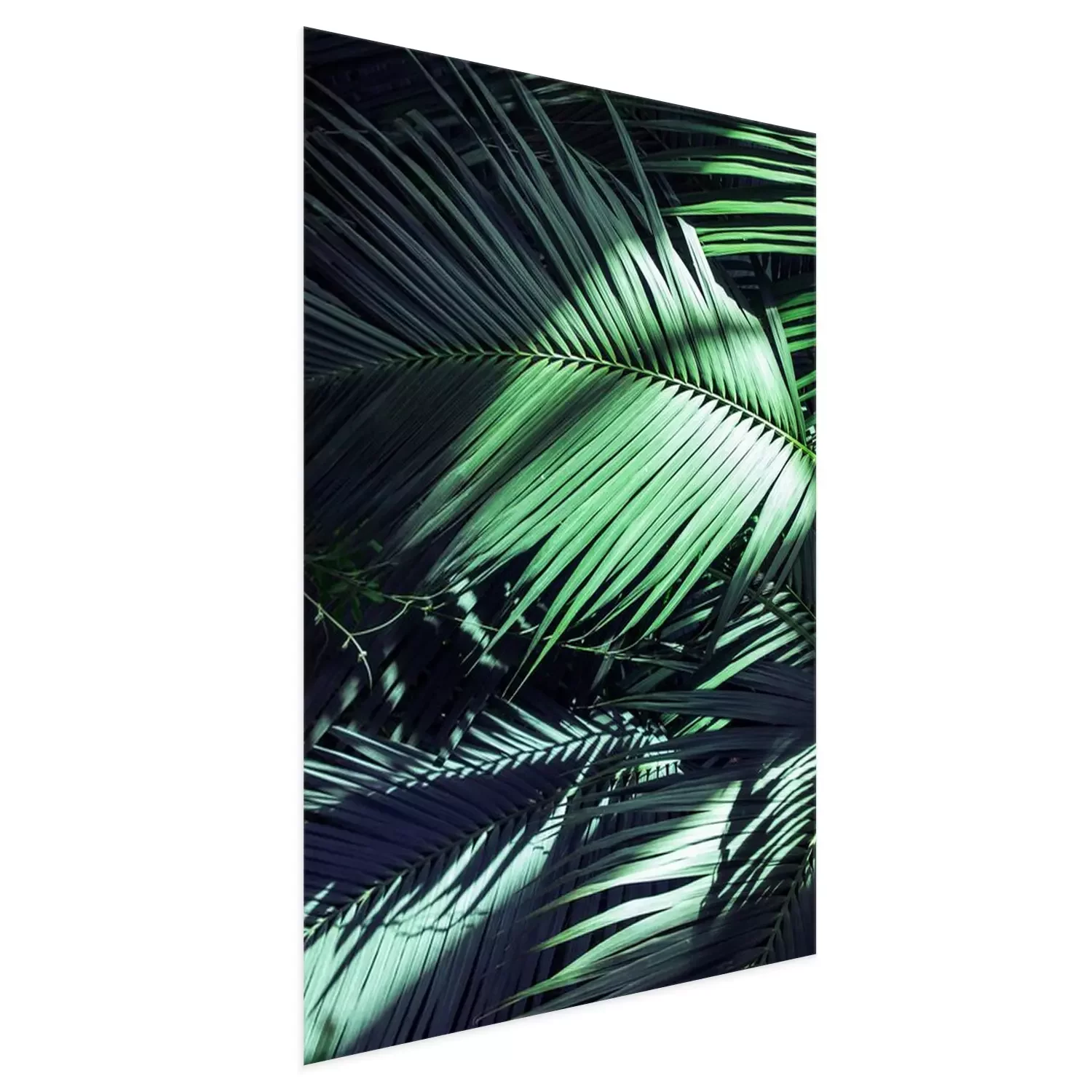 Poster Von Sonnenstrahlen beleuchtete Palmenblätter