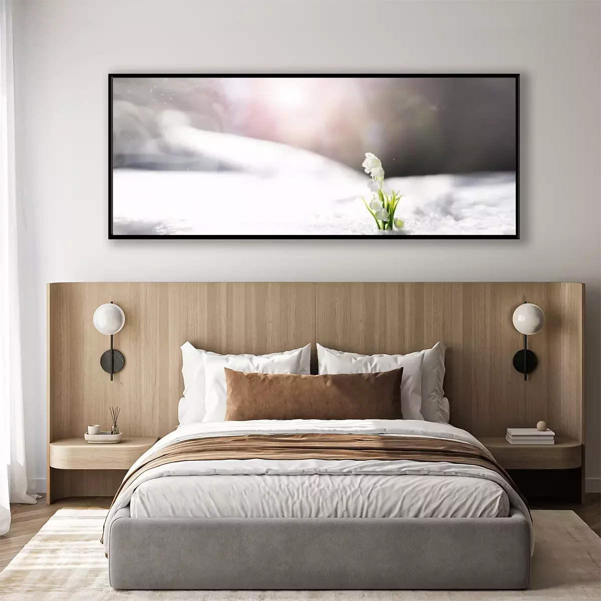 Poster: Vorboten des Frühlings in einer Winterlandschaft