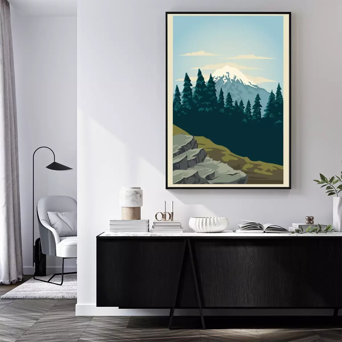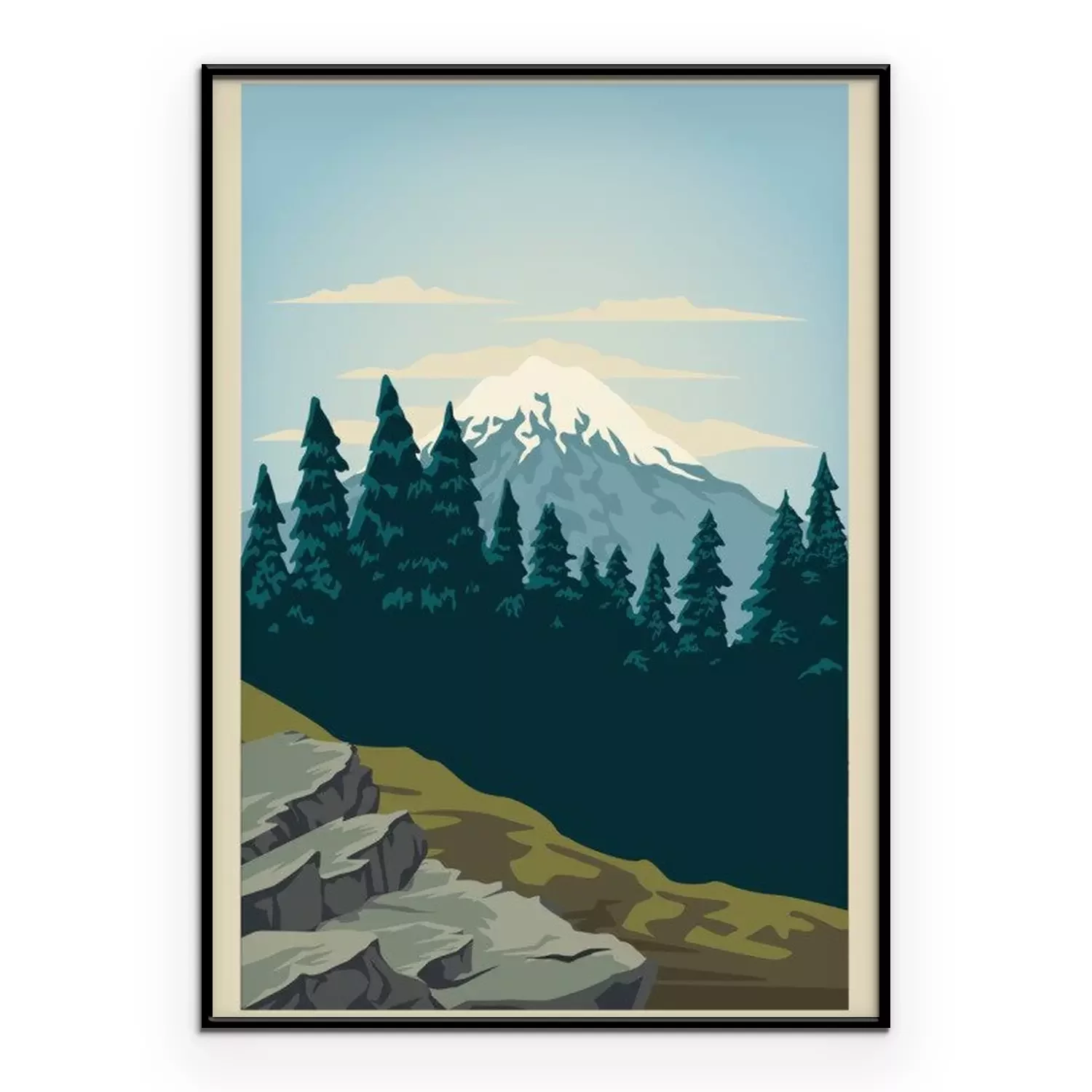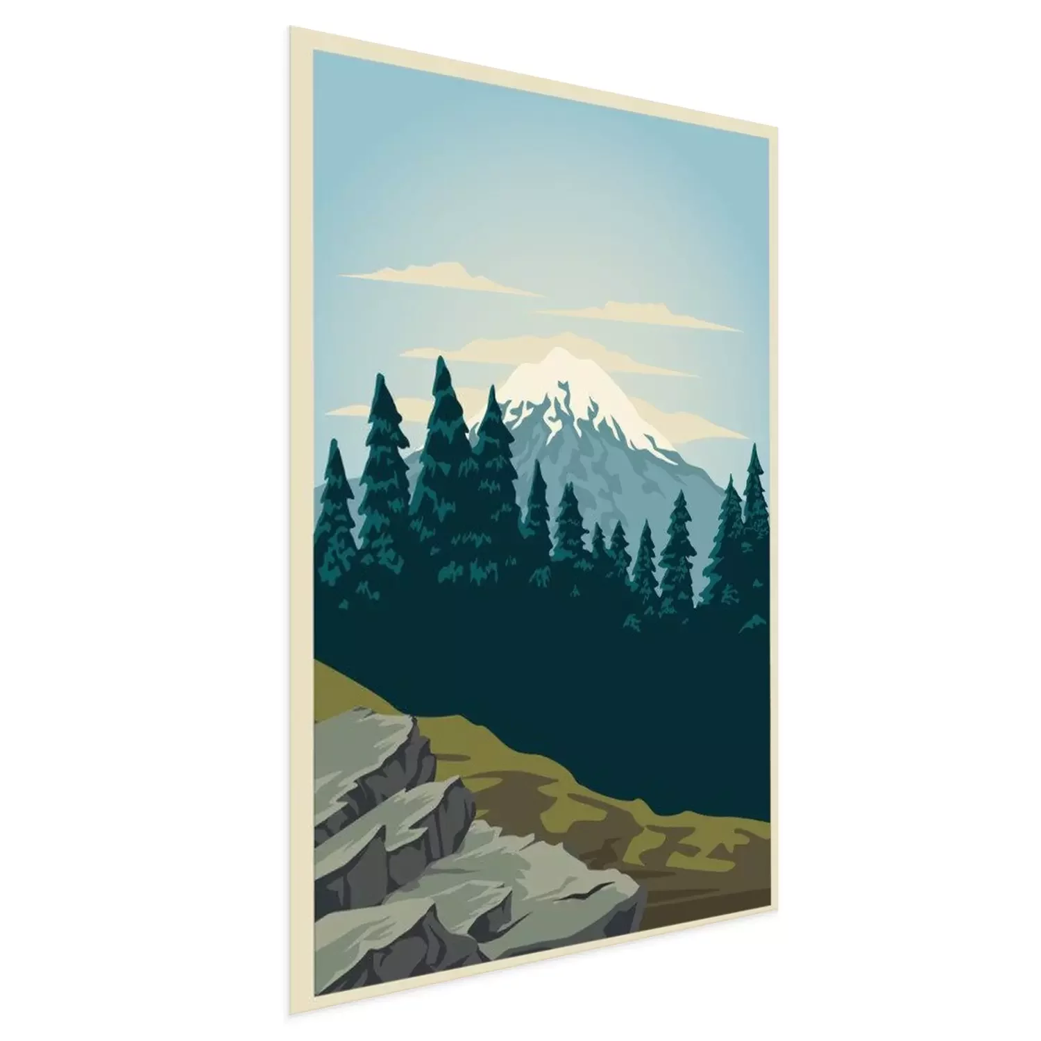 Poster: Wald Nadelbäume vor dem Hintergrund des Berges