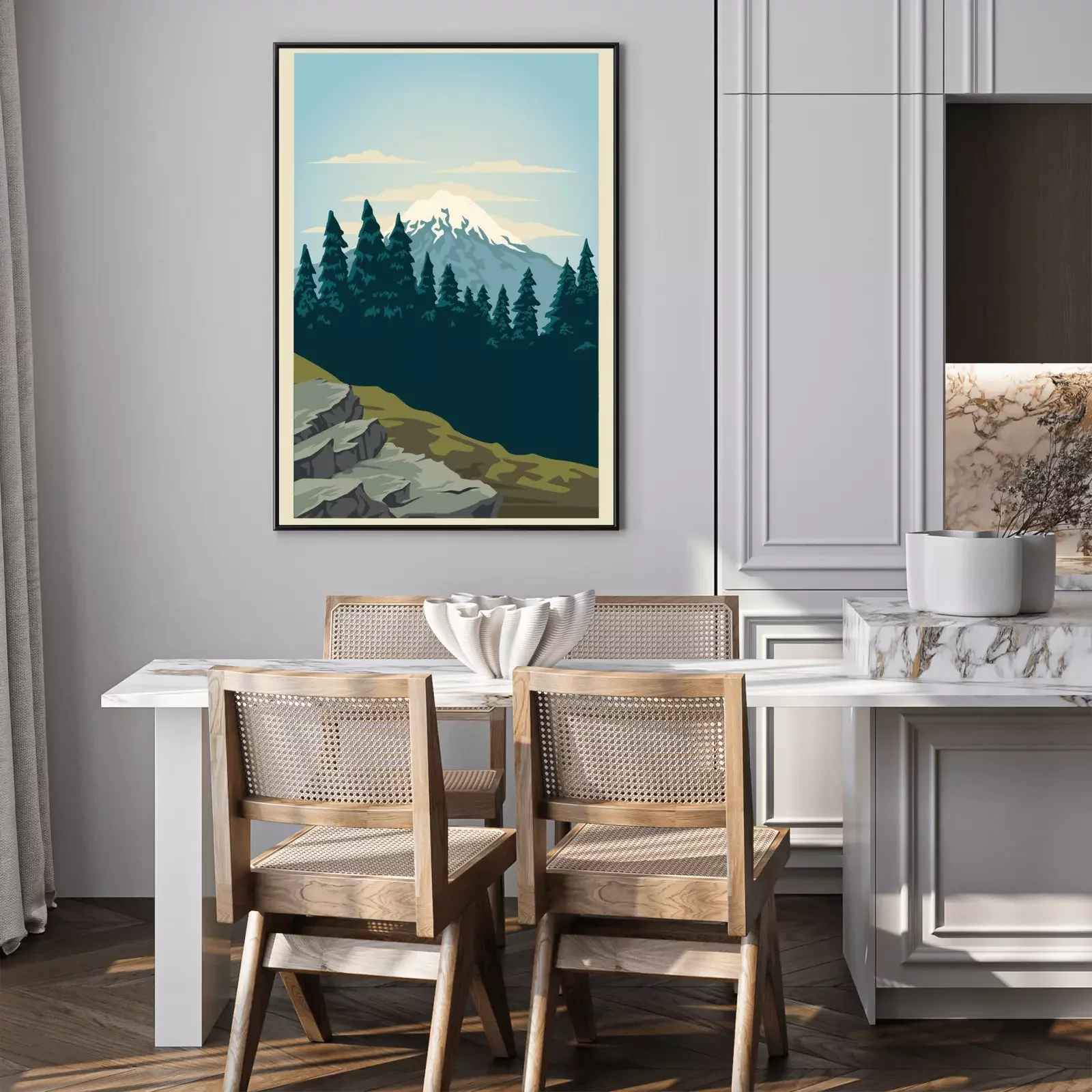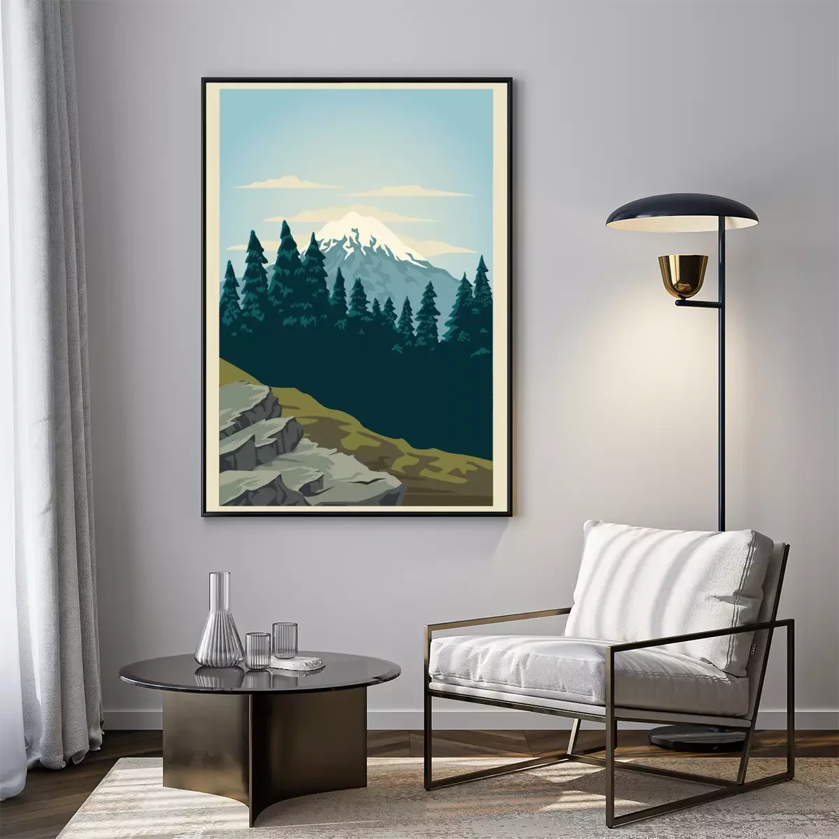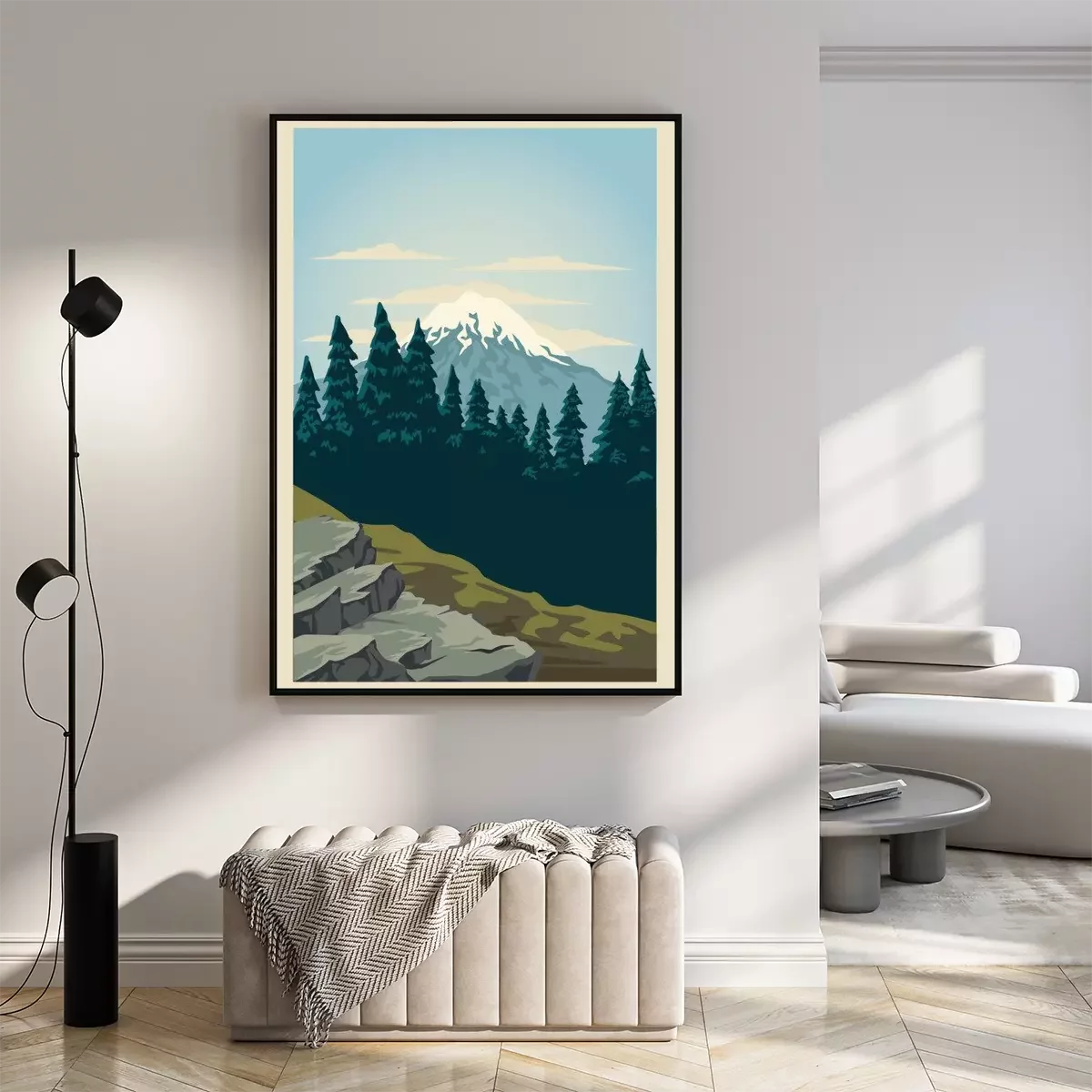 Poster: Wald Nadelbäume vor dem Hintergrund des Berges