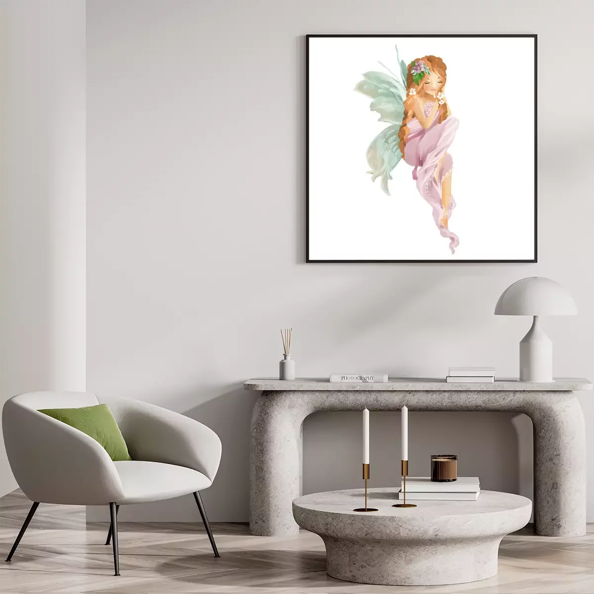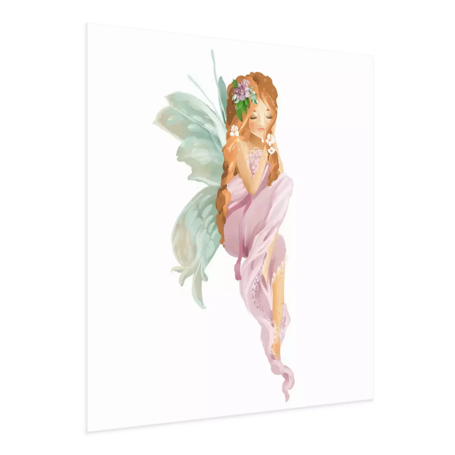 Fee mit grünen Flügeln, die einen Vogel umarmt