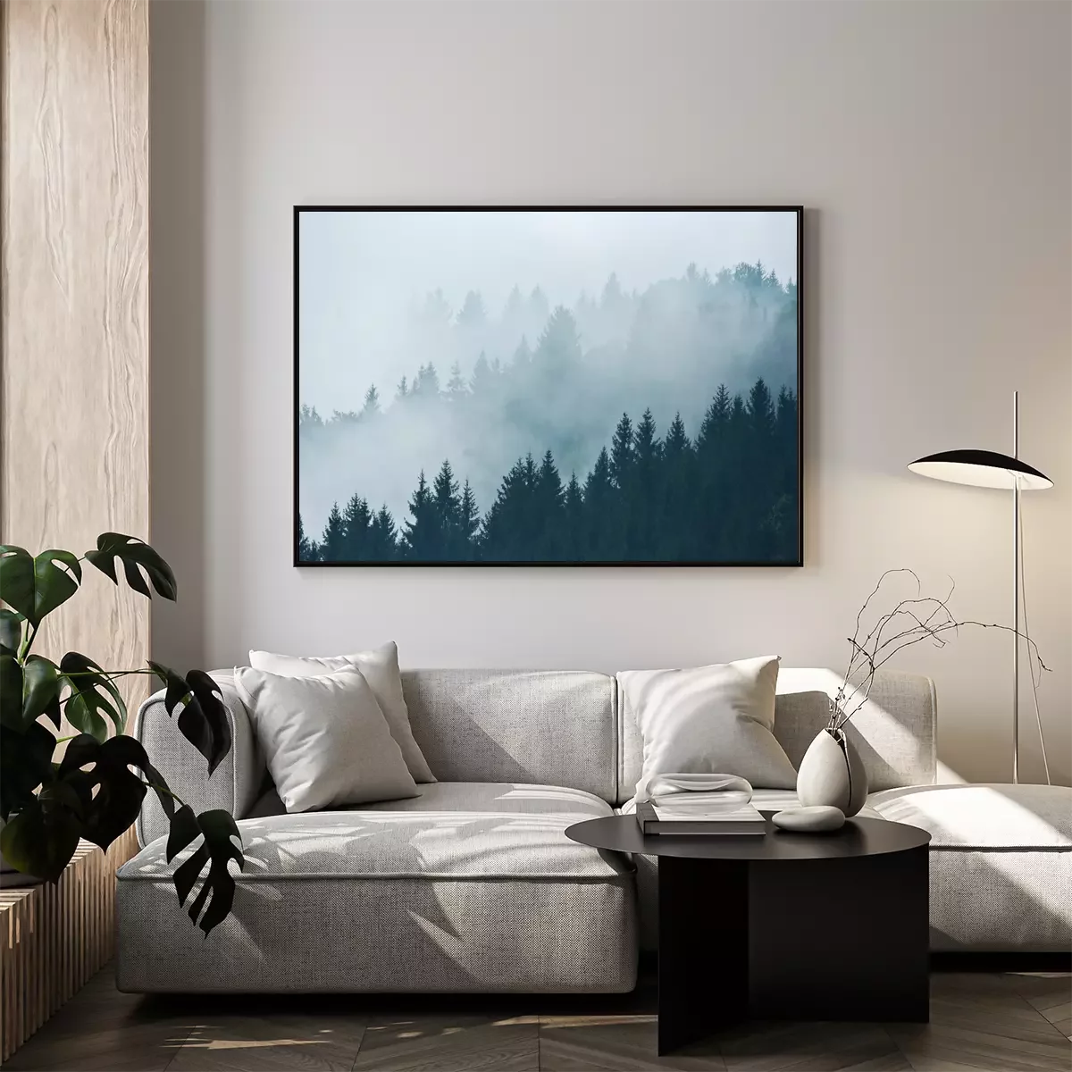 Poster Waldlandschaft mit Nebeln