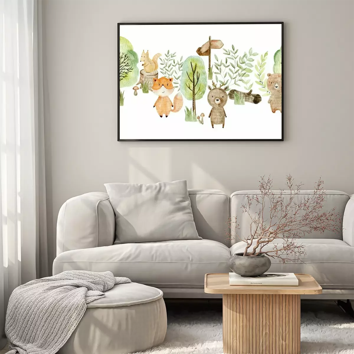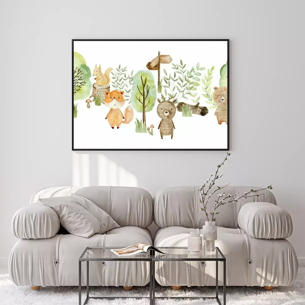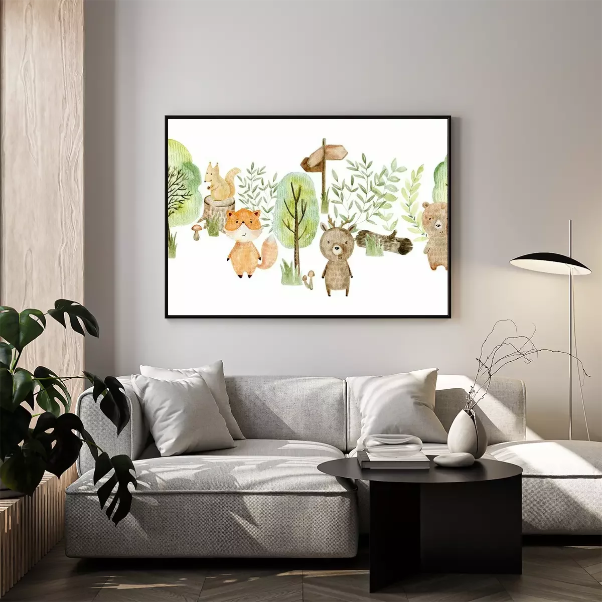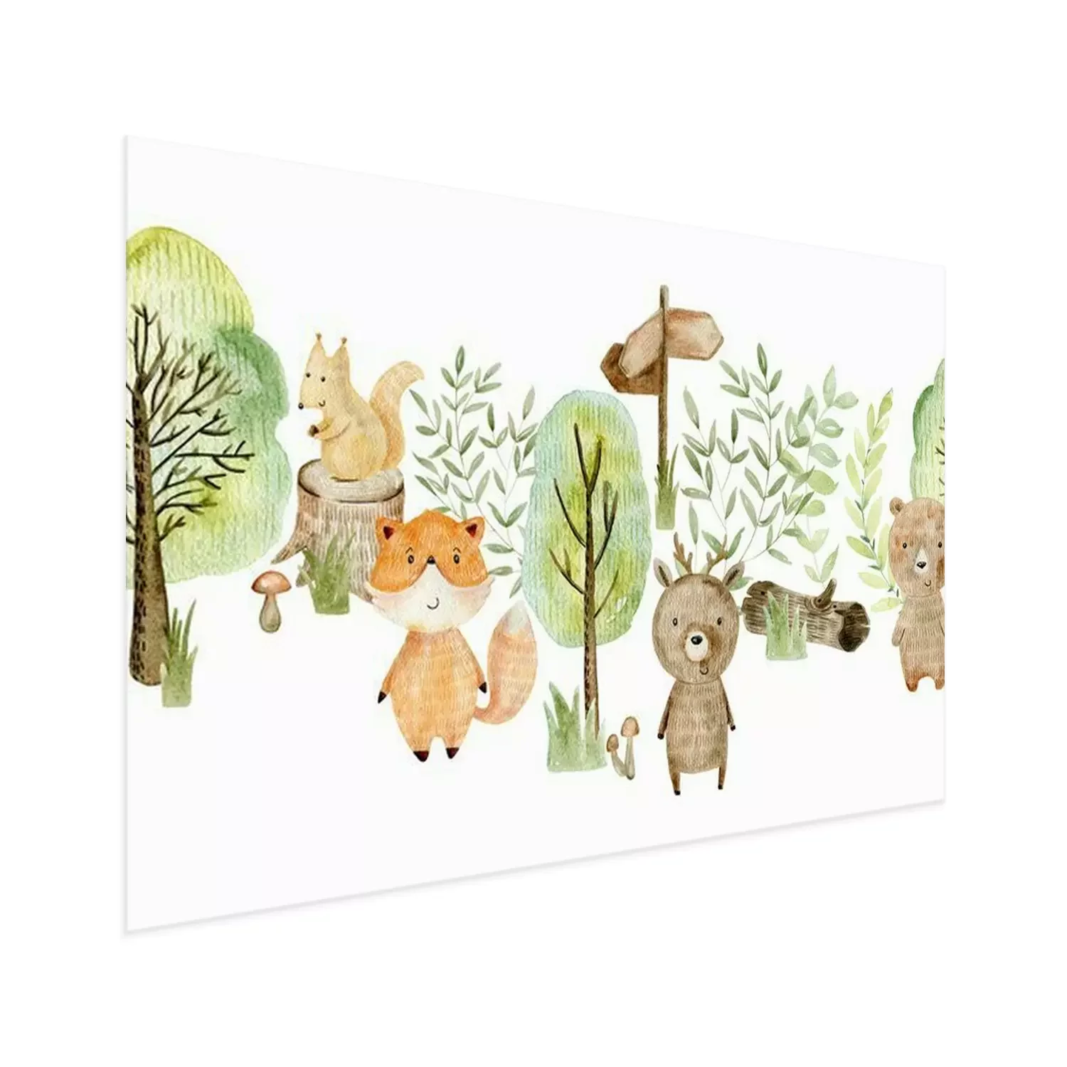 Poster: Waldtiere umgeben von grünen Bäumen