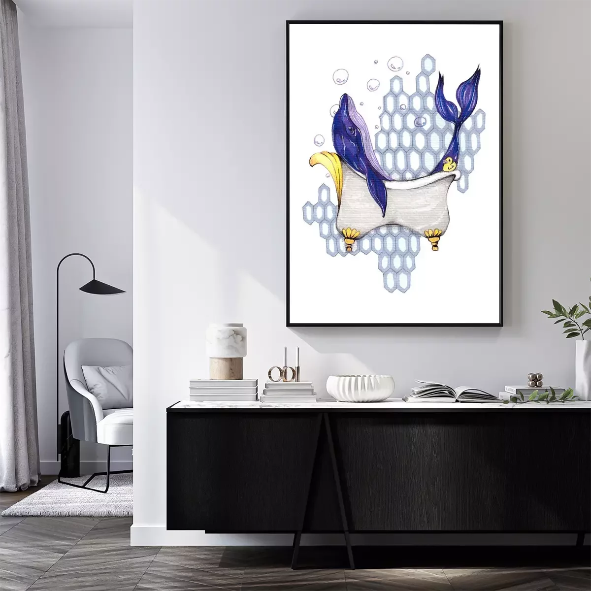 Poster Walfisch in der Badewanne im Ludwig-Stil