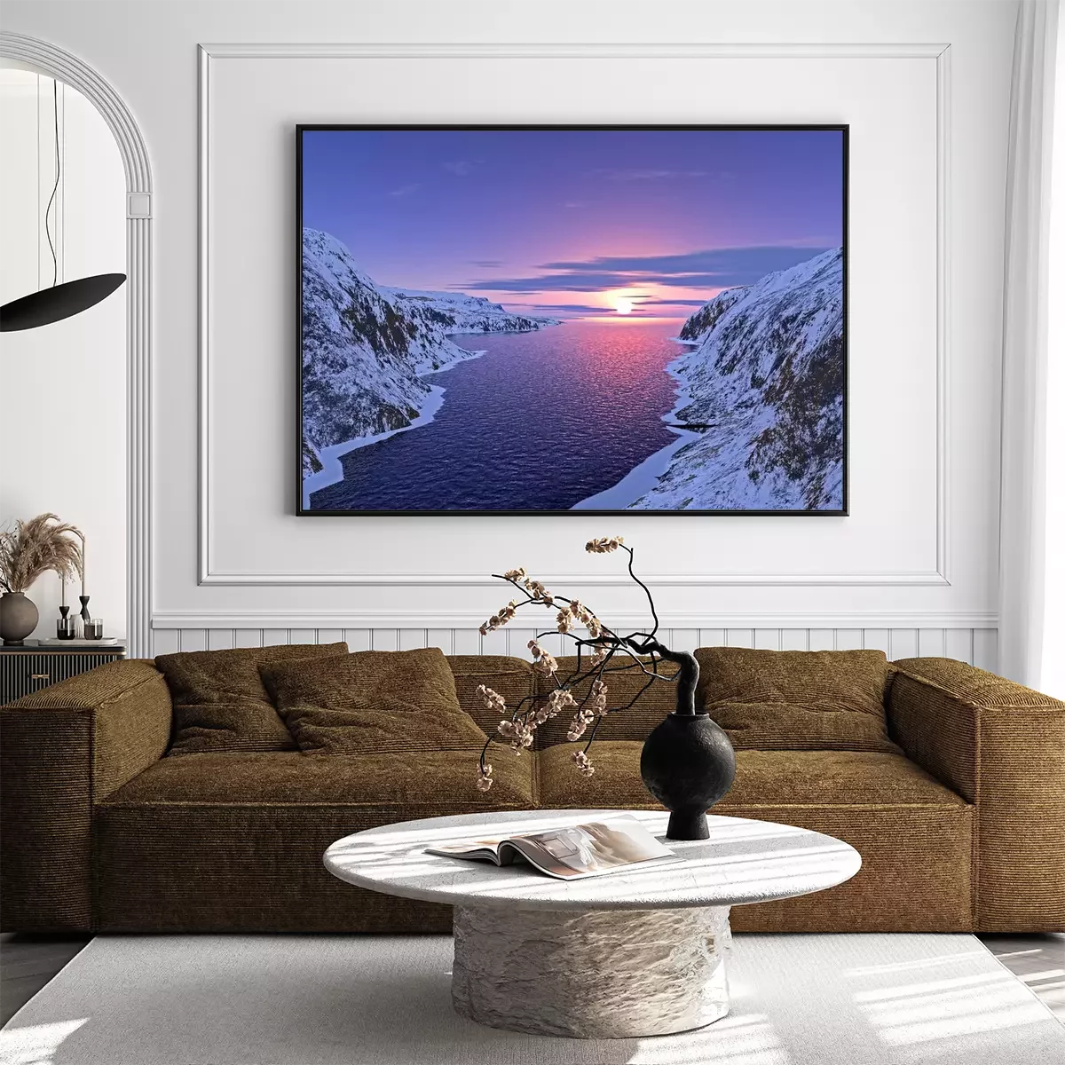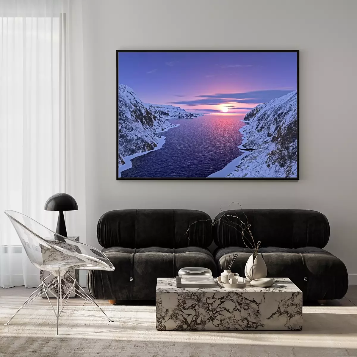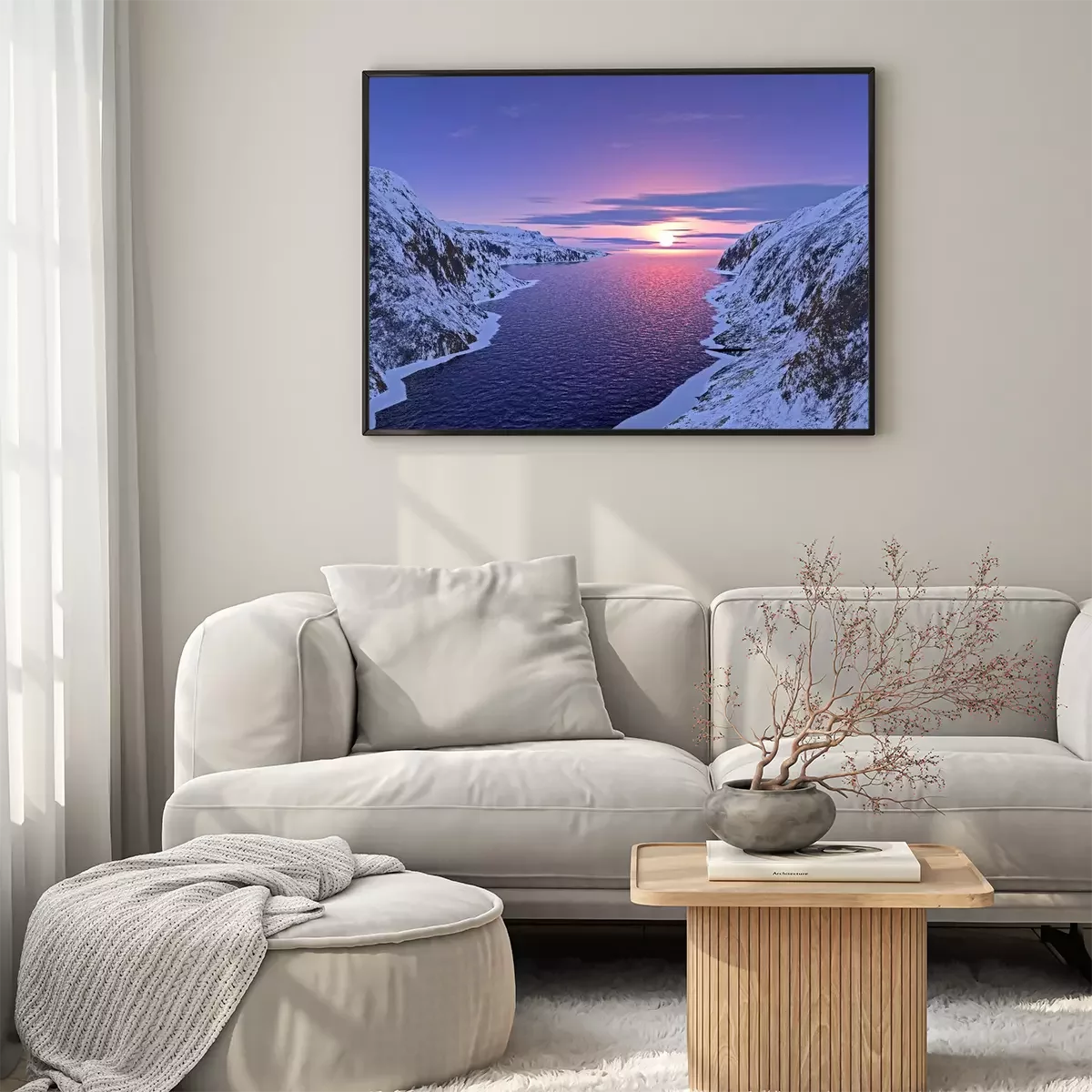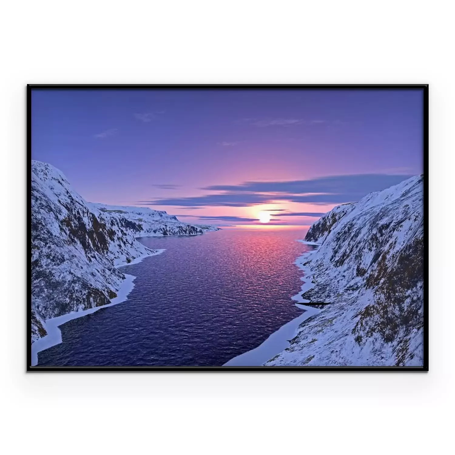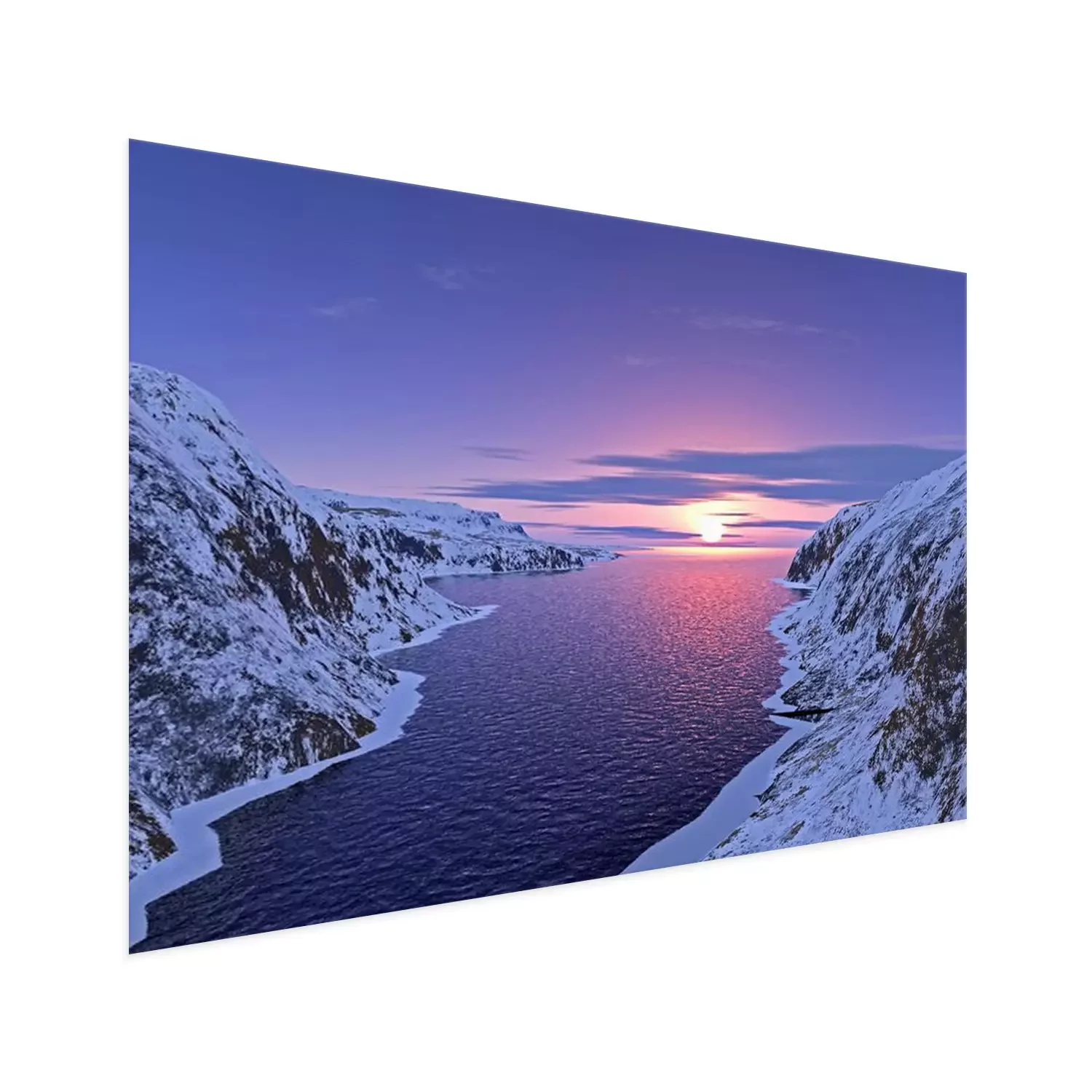 Poster: Wasser umgeben von schneebedeckten Hängen
