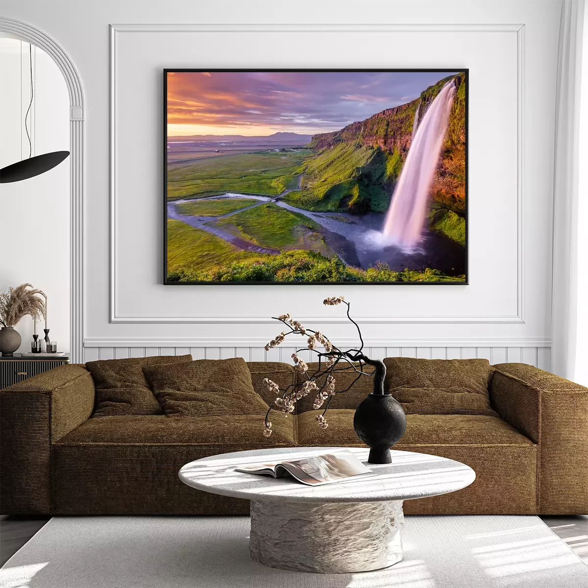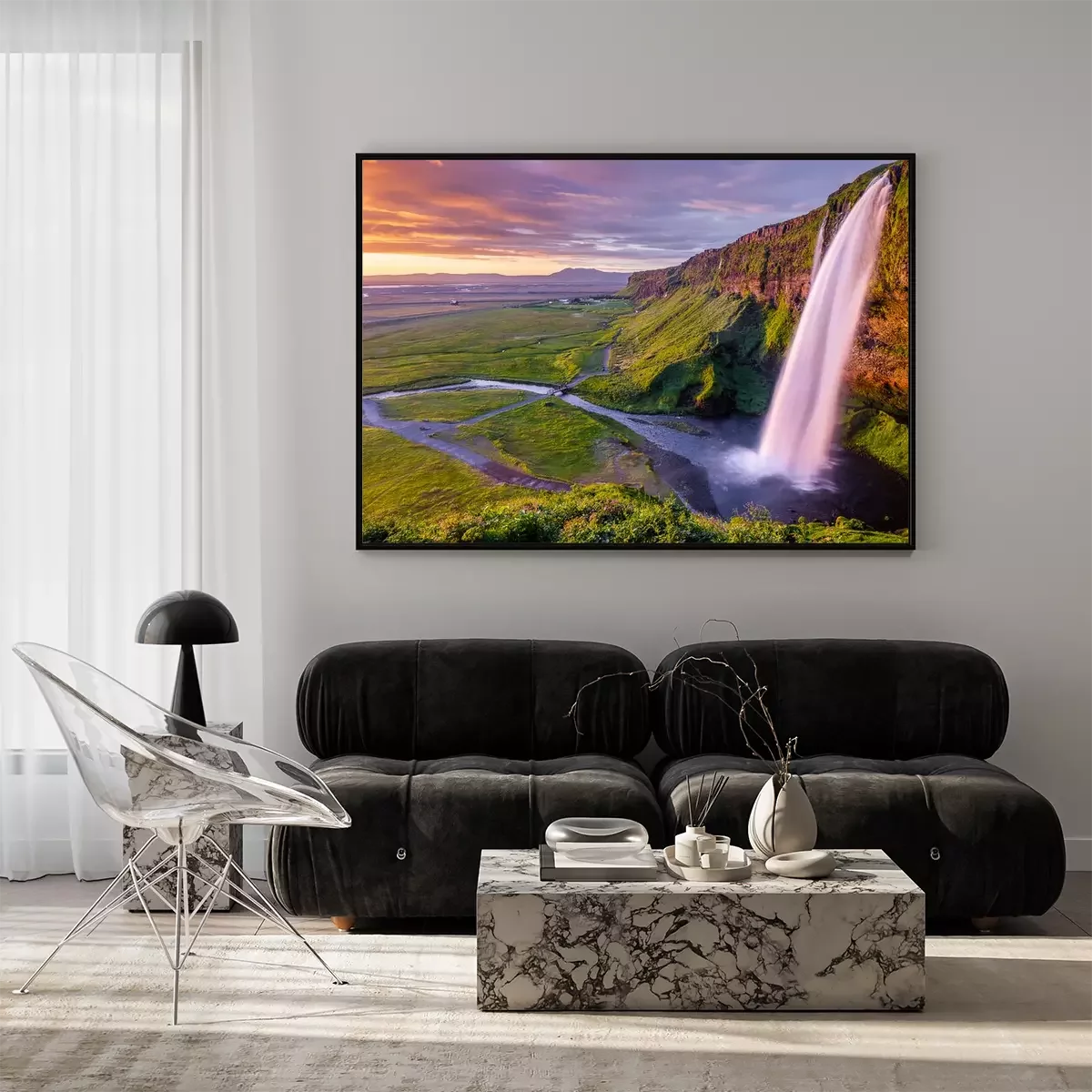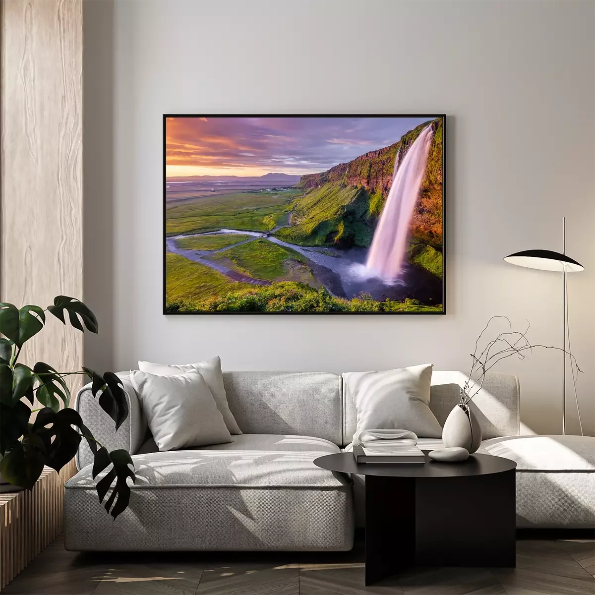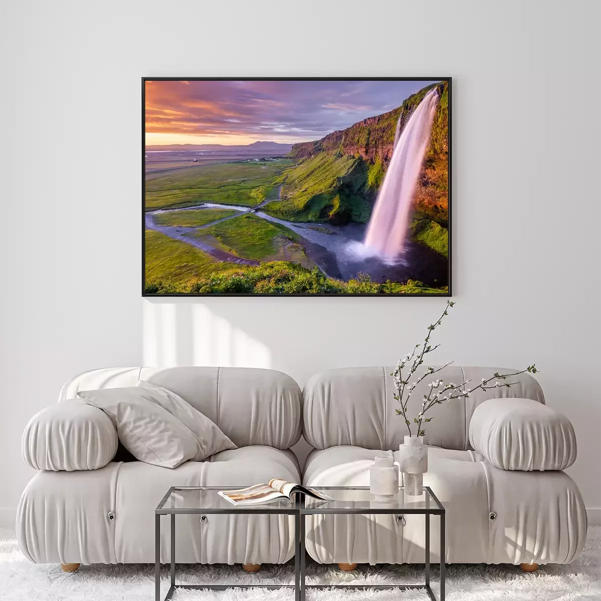 Poster: Wasserfall Natur bei Sonnenuntergang