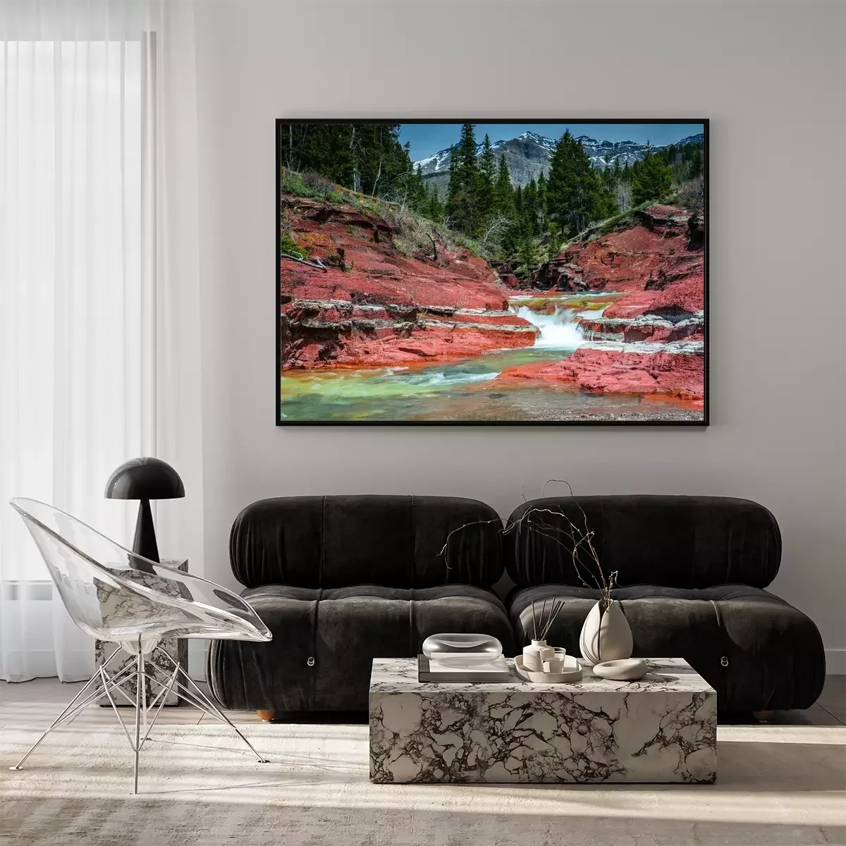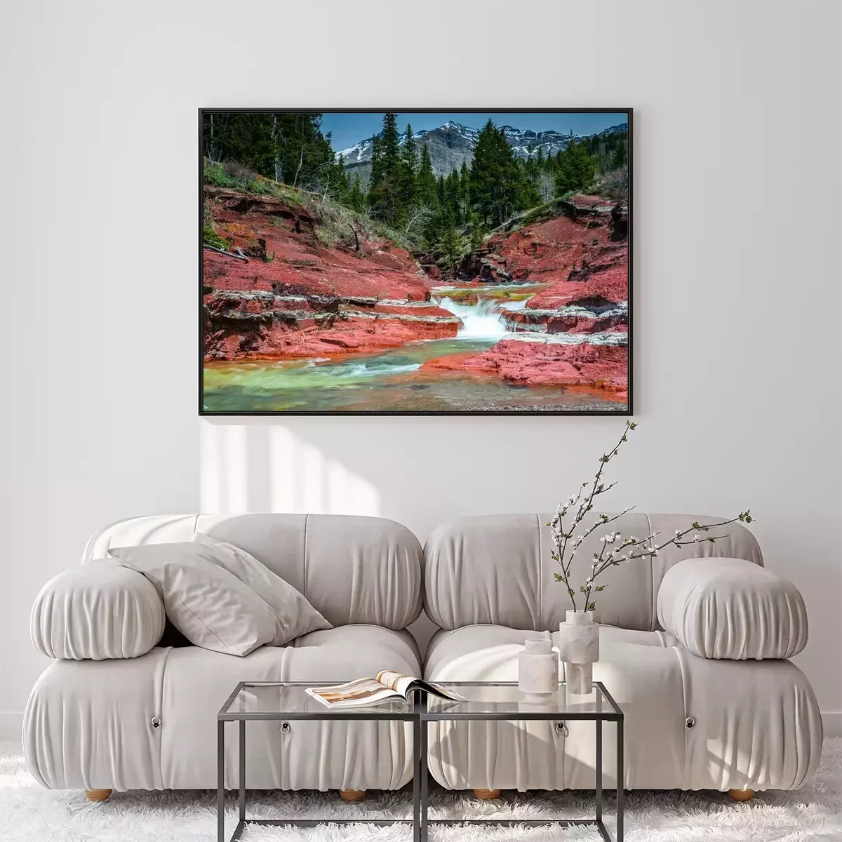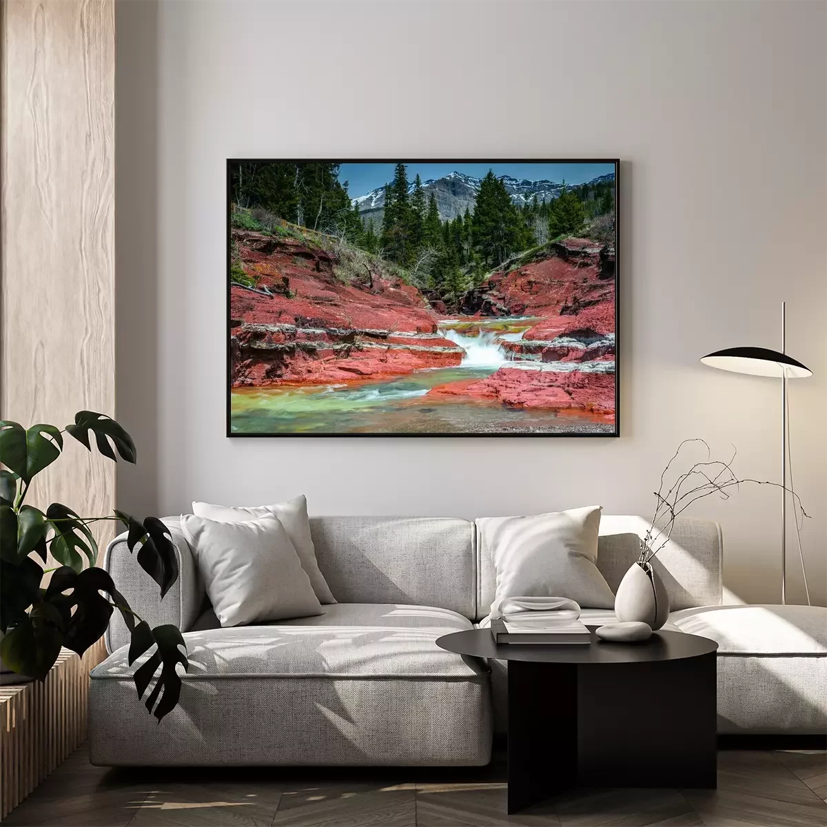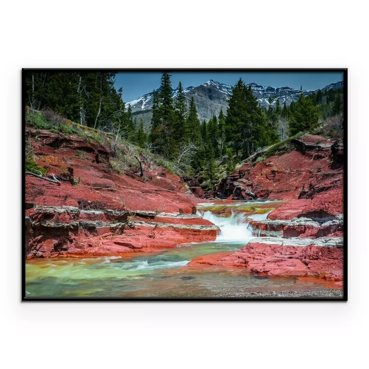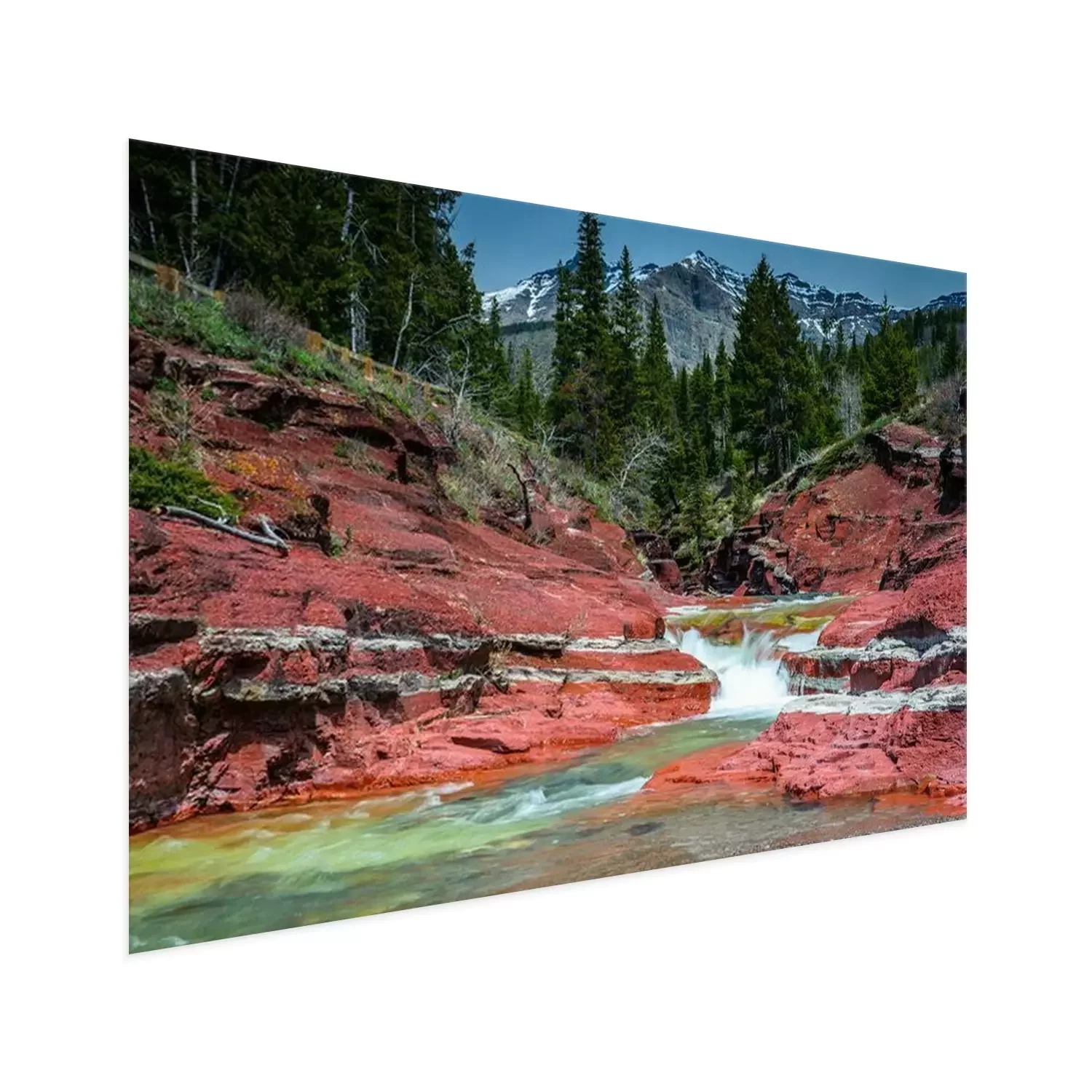 Poster: Wasserfall Natur umgeben von roten Felsen