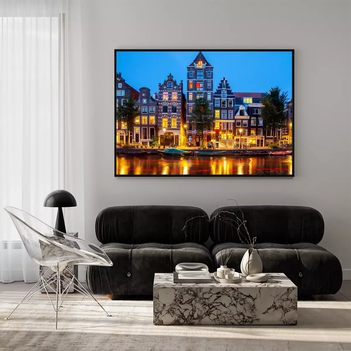 Poster Wasserkanal Amsterdam bei Nacht