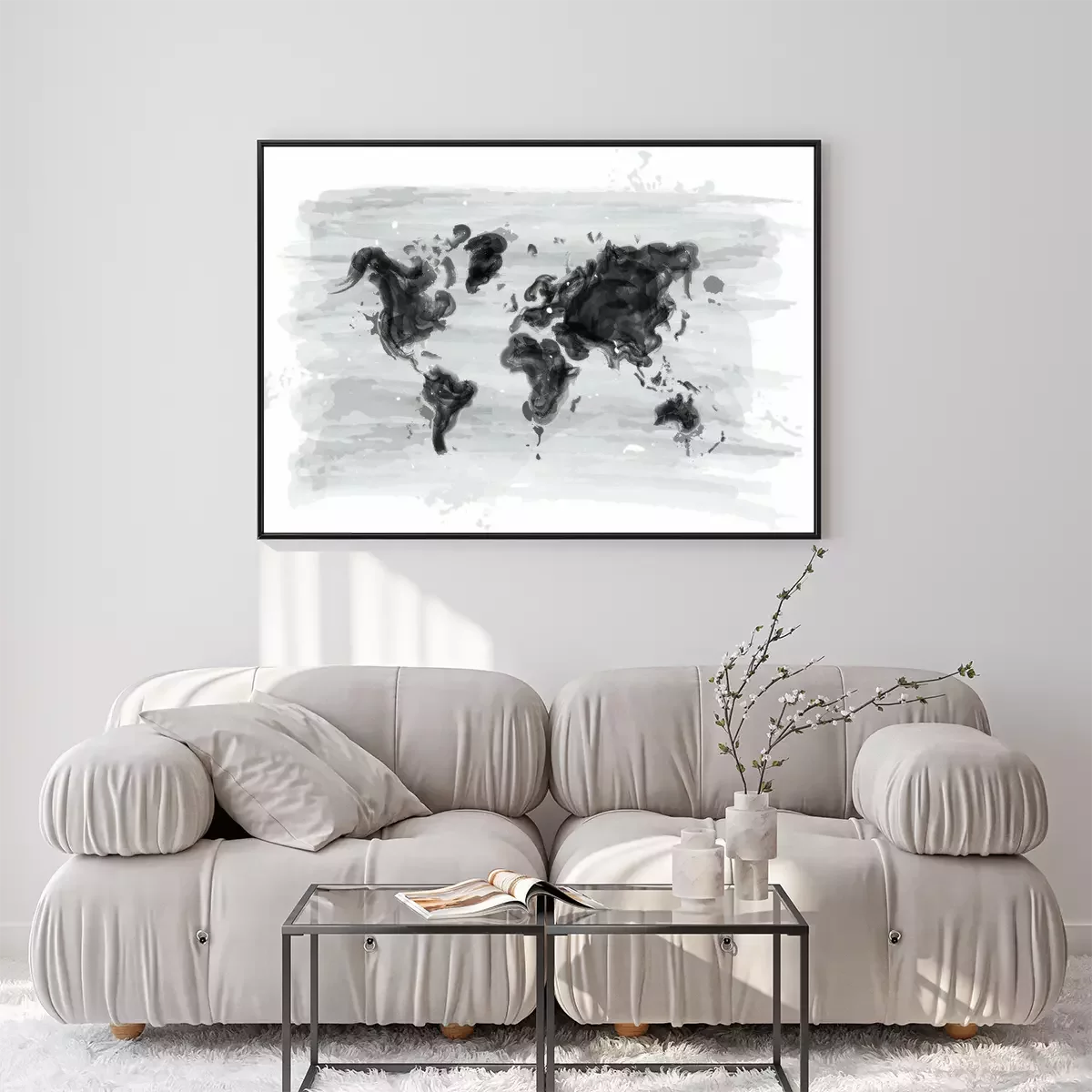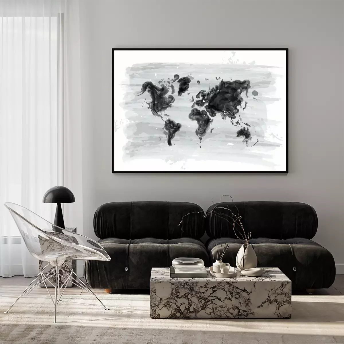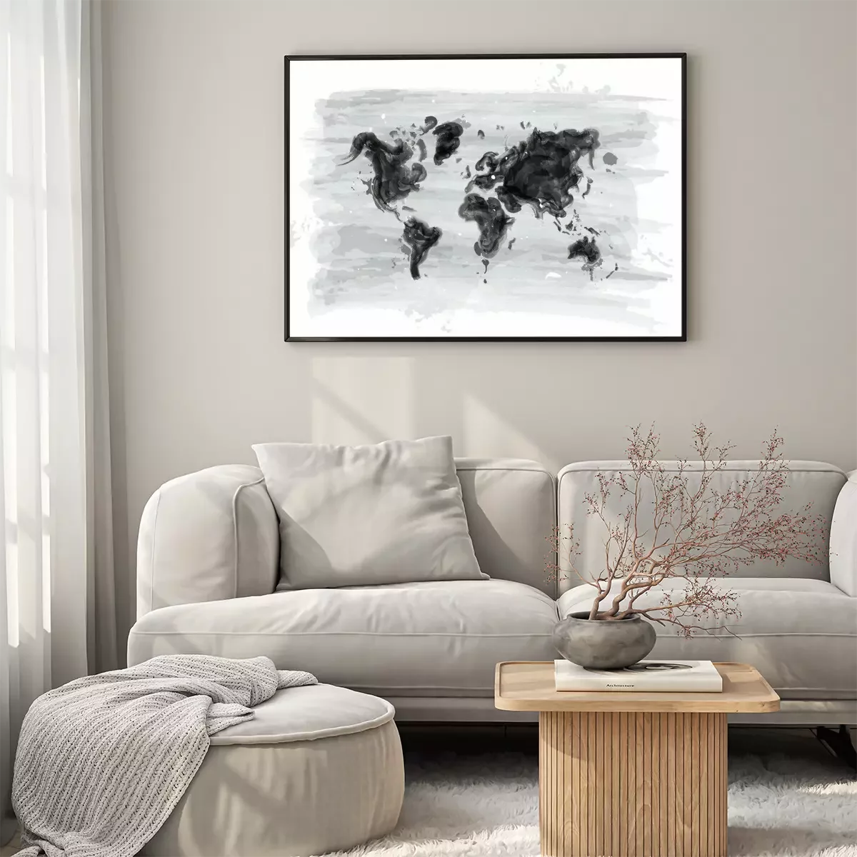 Poster Watercolor painting design of world map . ( Environmental pollution concept ) . Vector