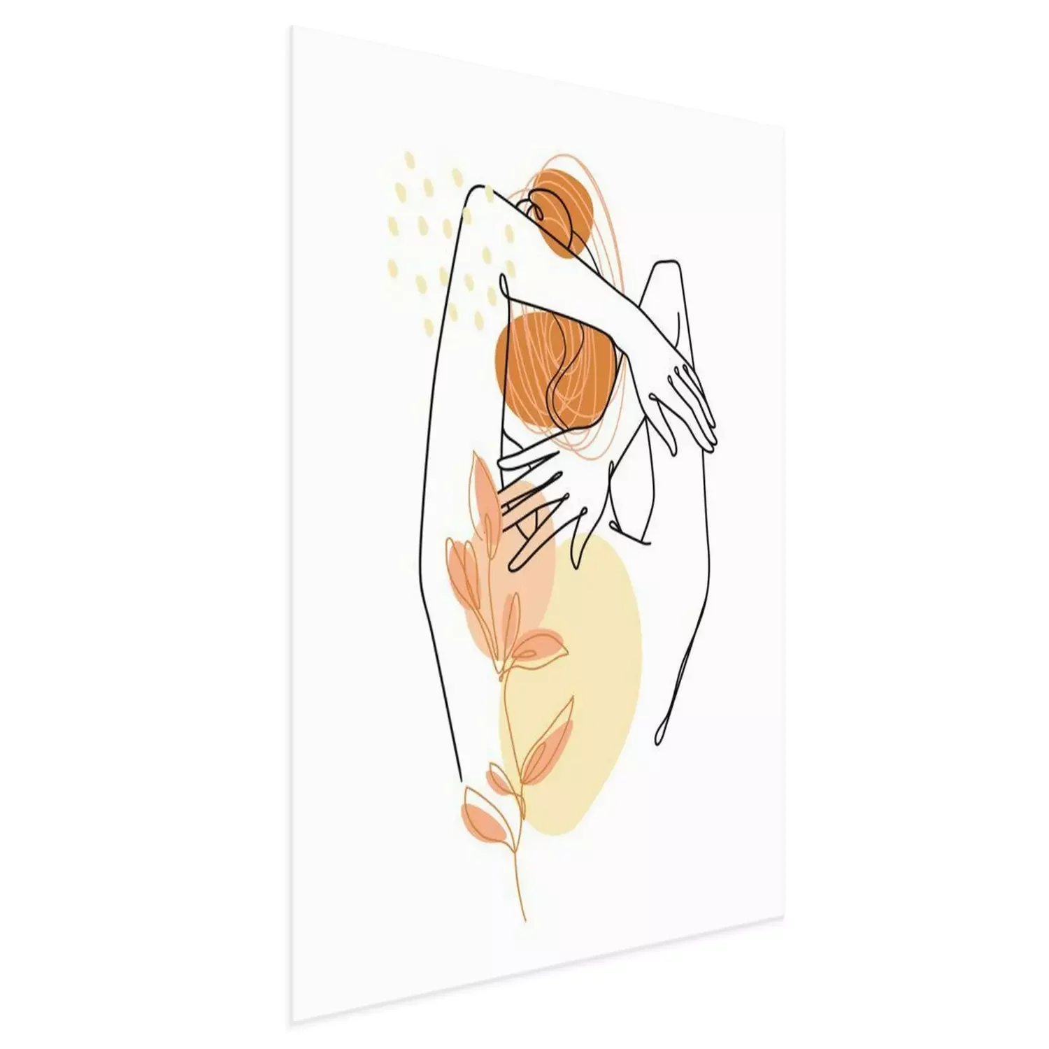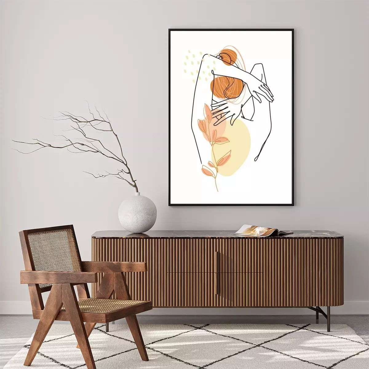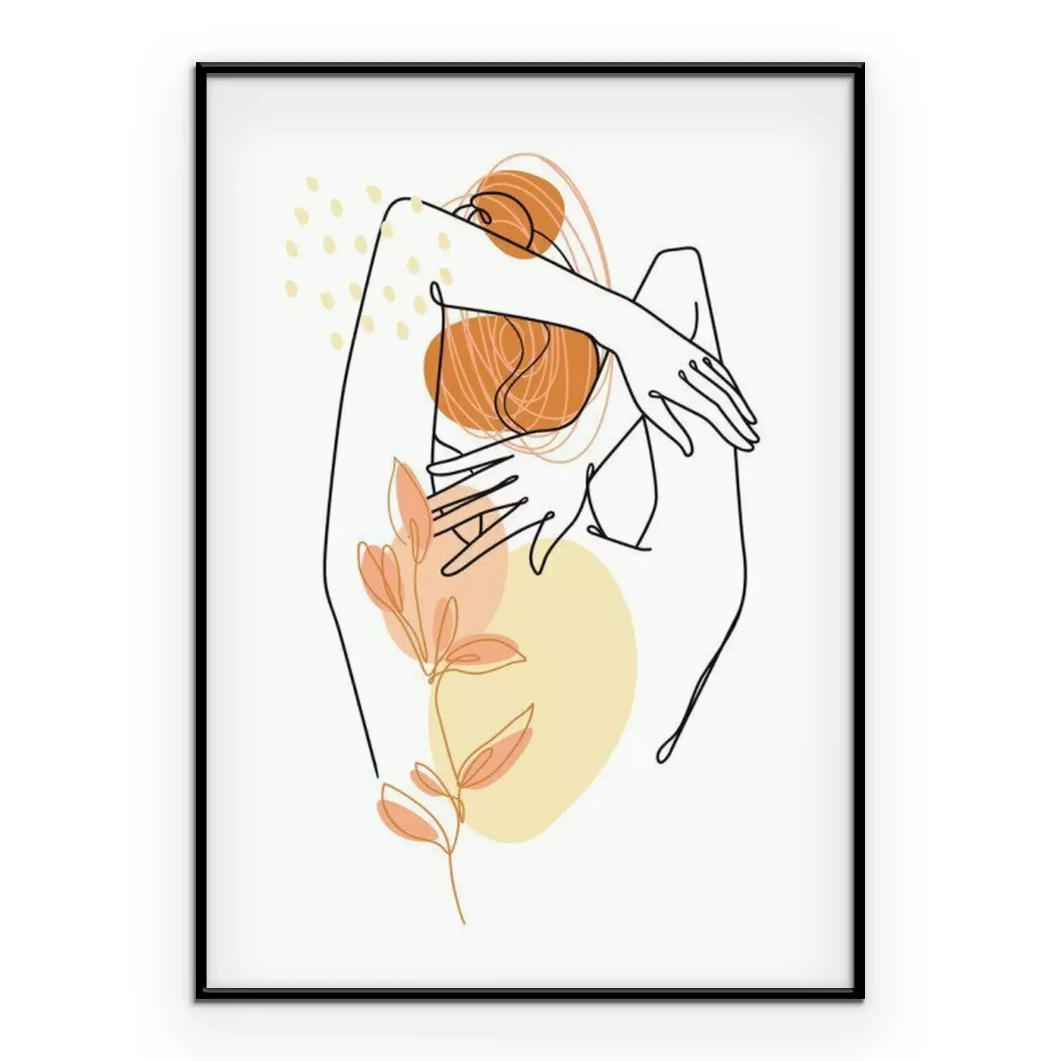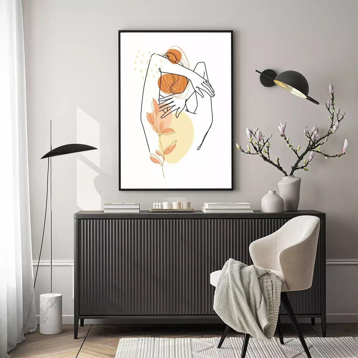 Poster: Weibliche Silhouette mit Blatt in Line Art
