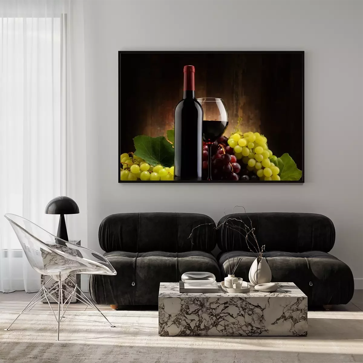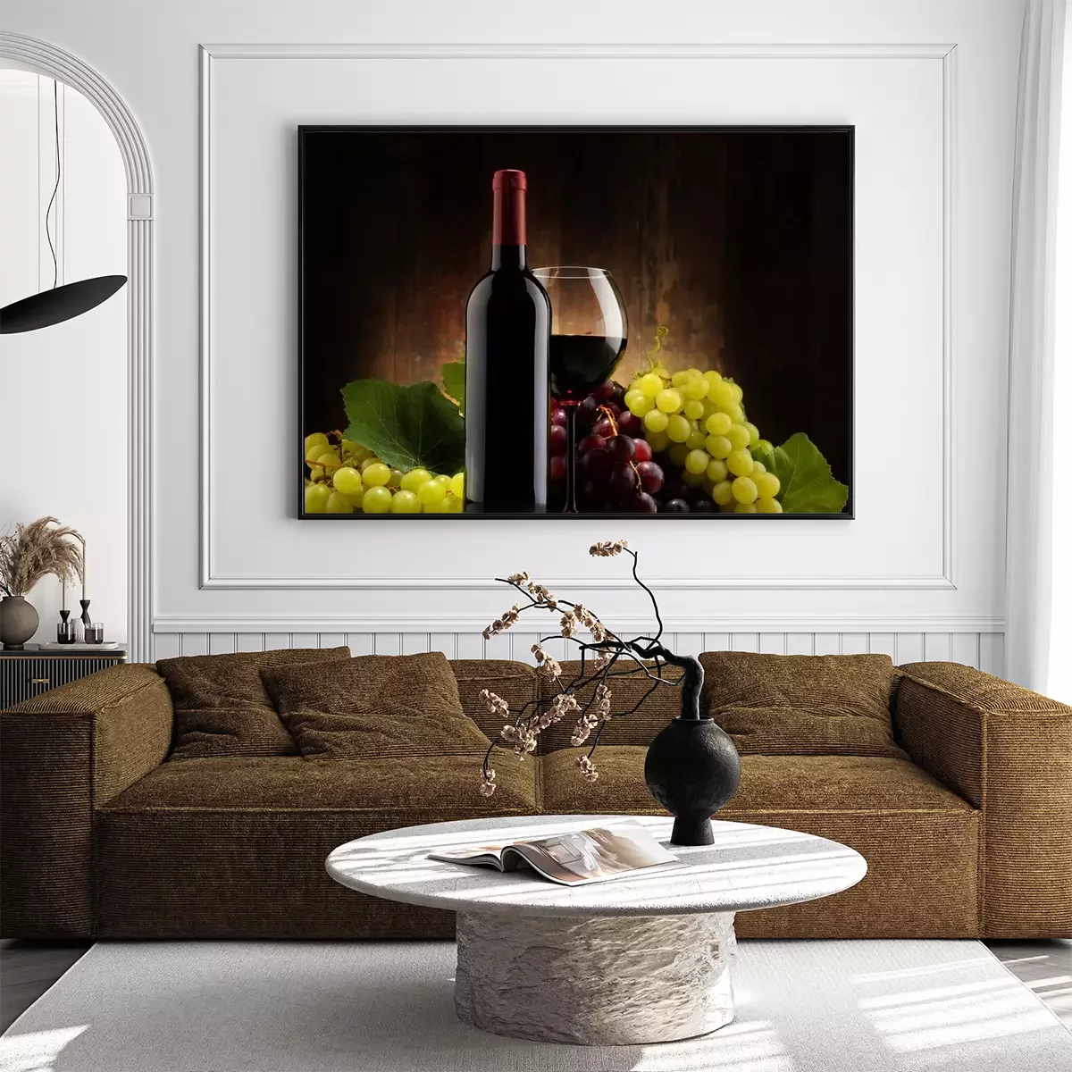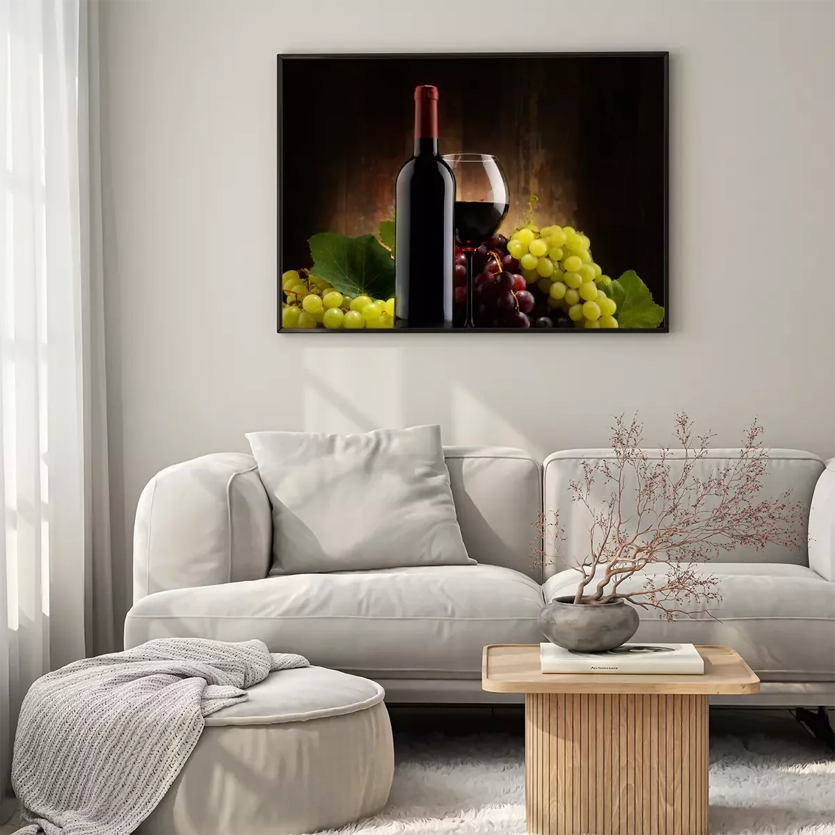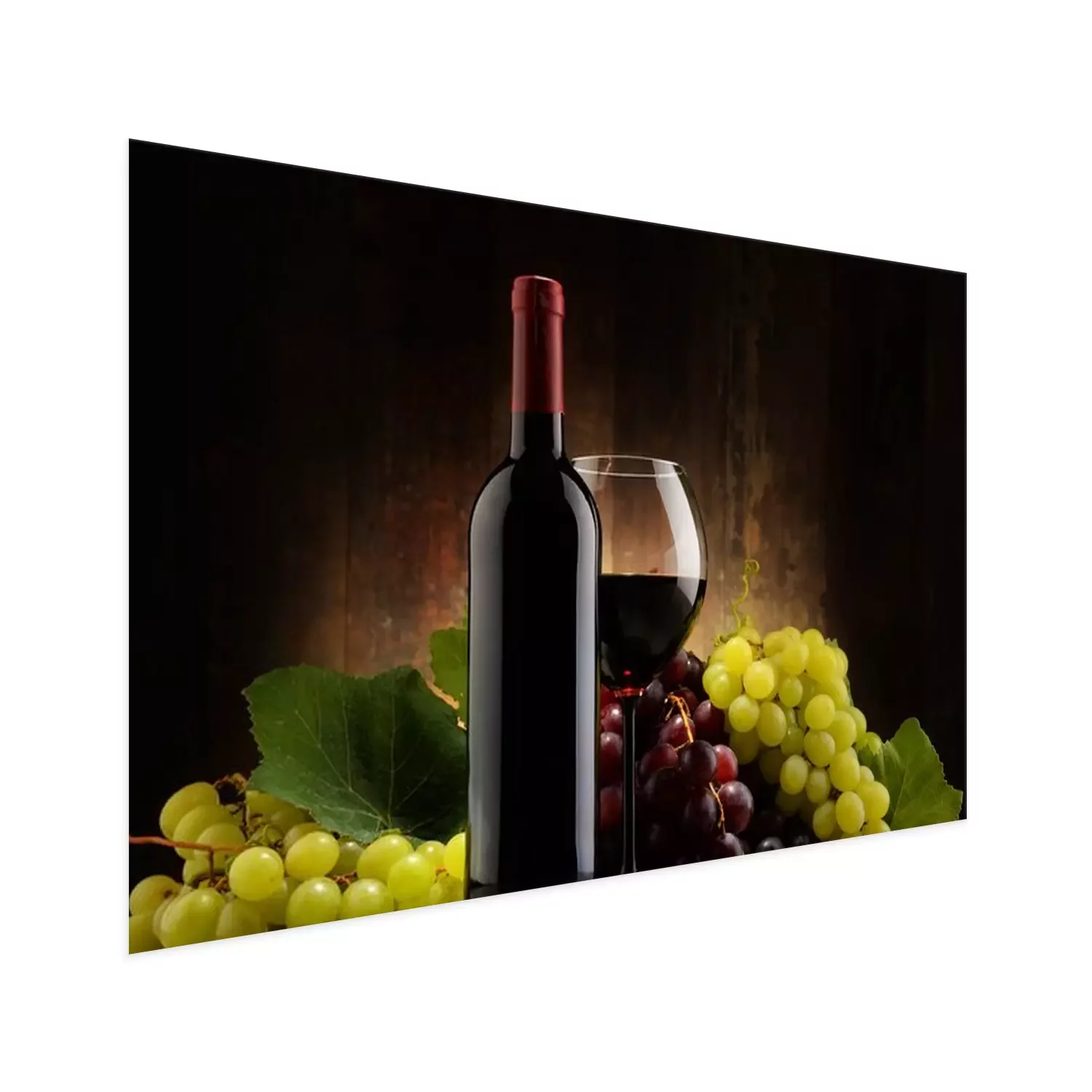 Poster: Wein vor dem Hintergrund von Trauben und Holz