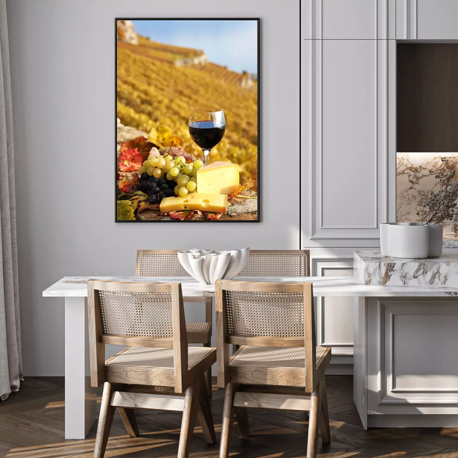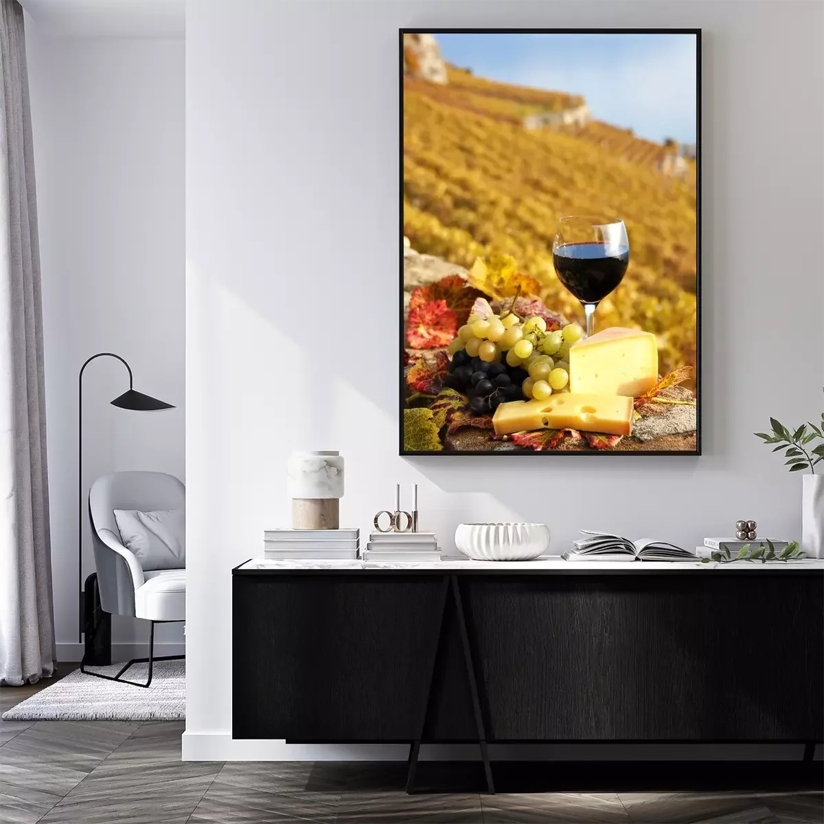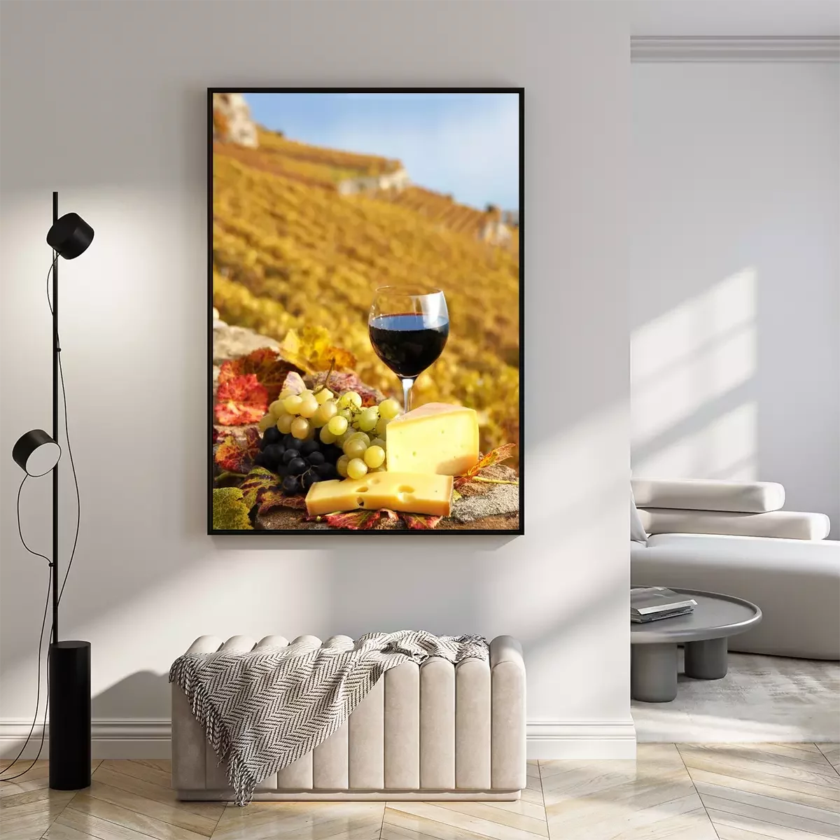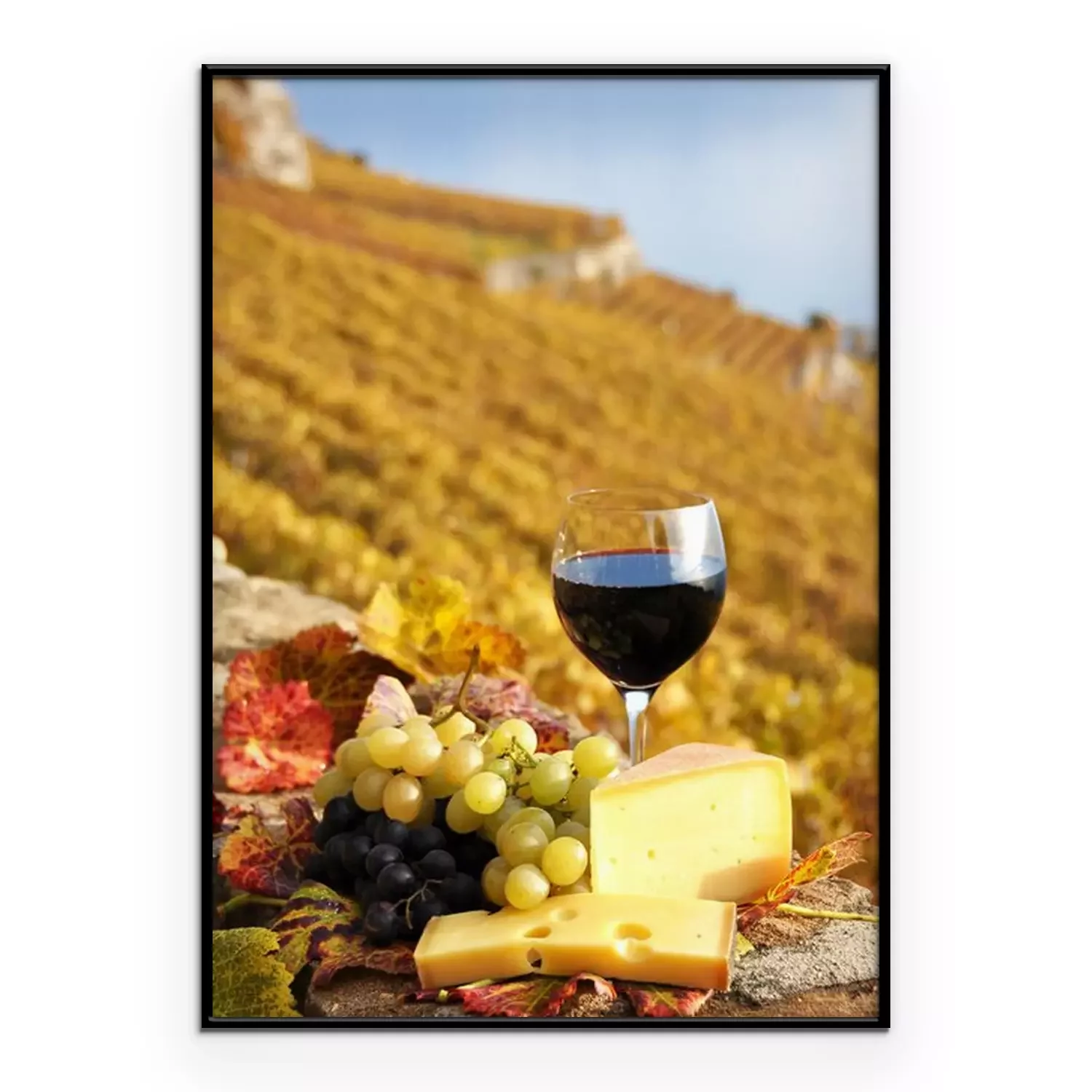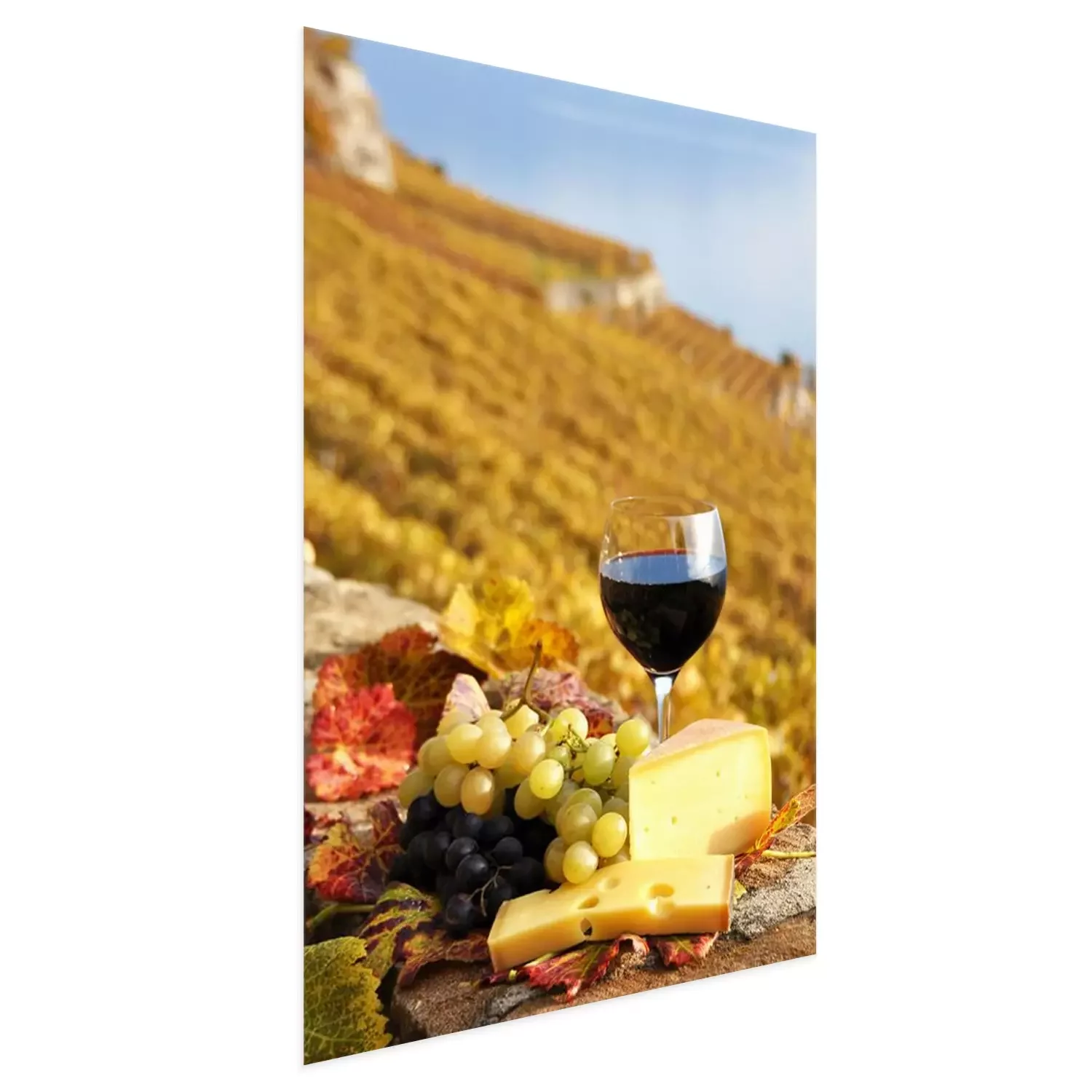 Poster: Weinlese und Käseplatte