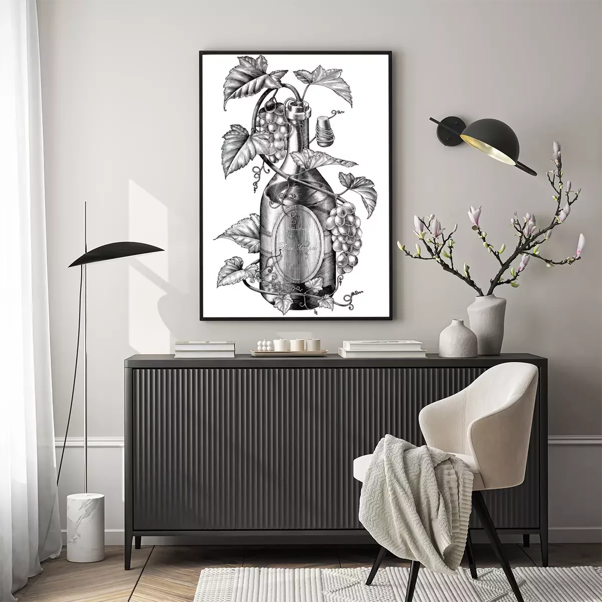 Poster: Weinrebe aus einer Flasche herauswachsend