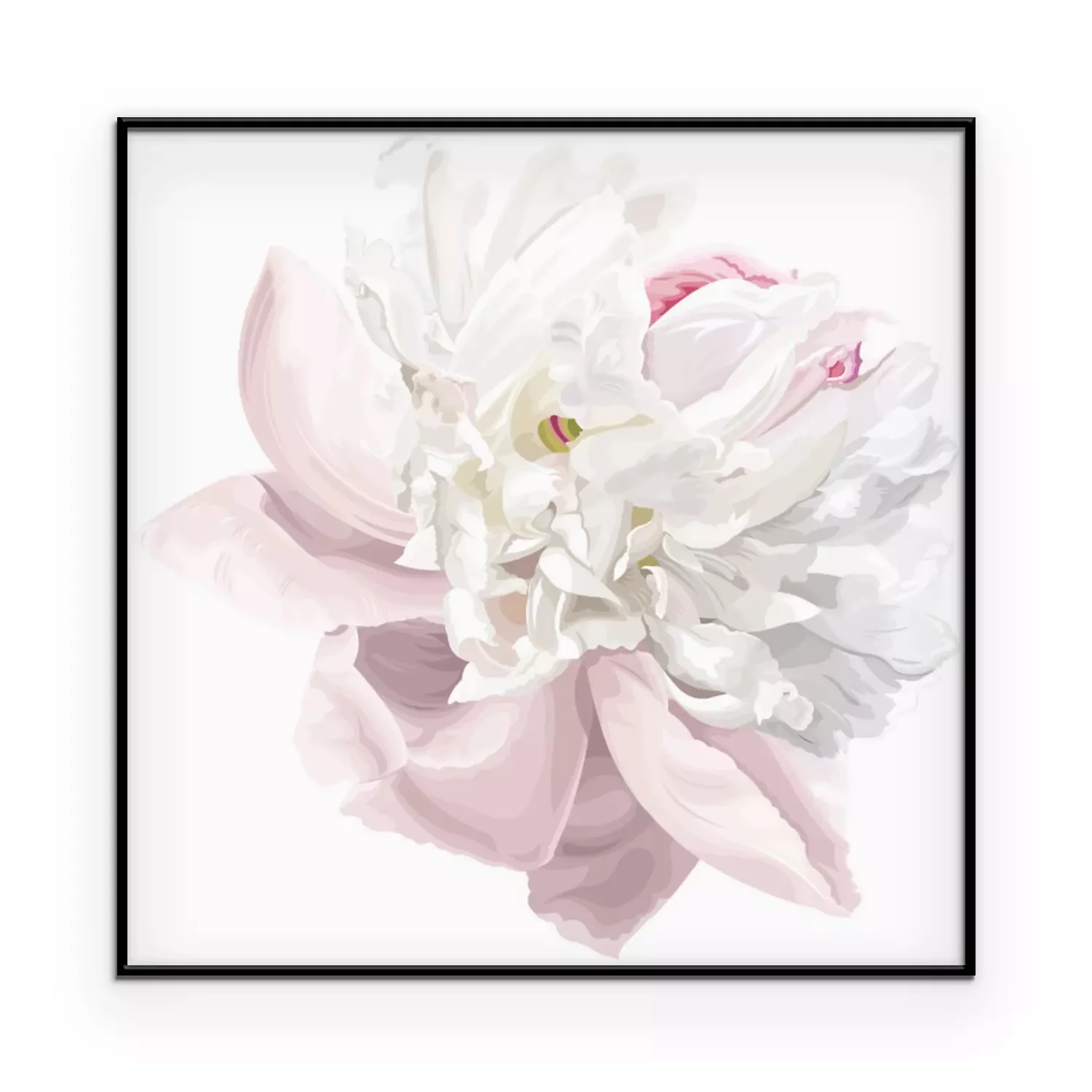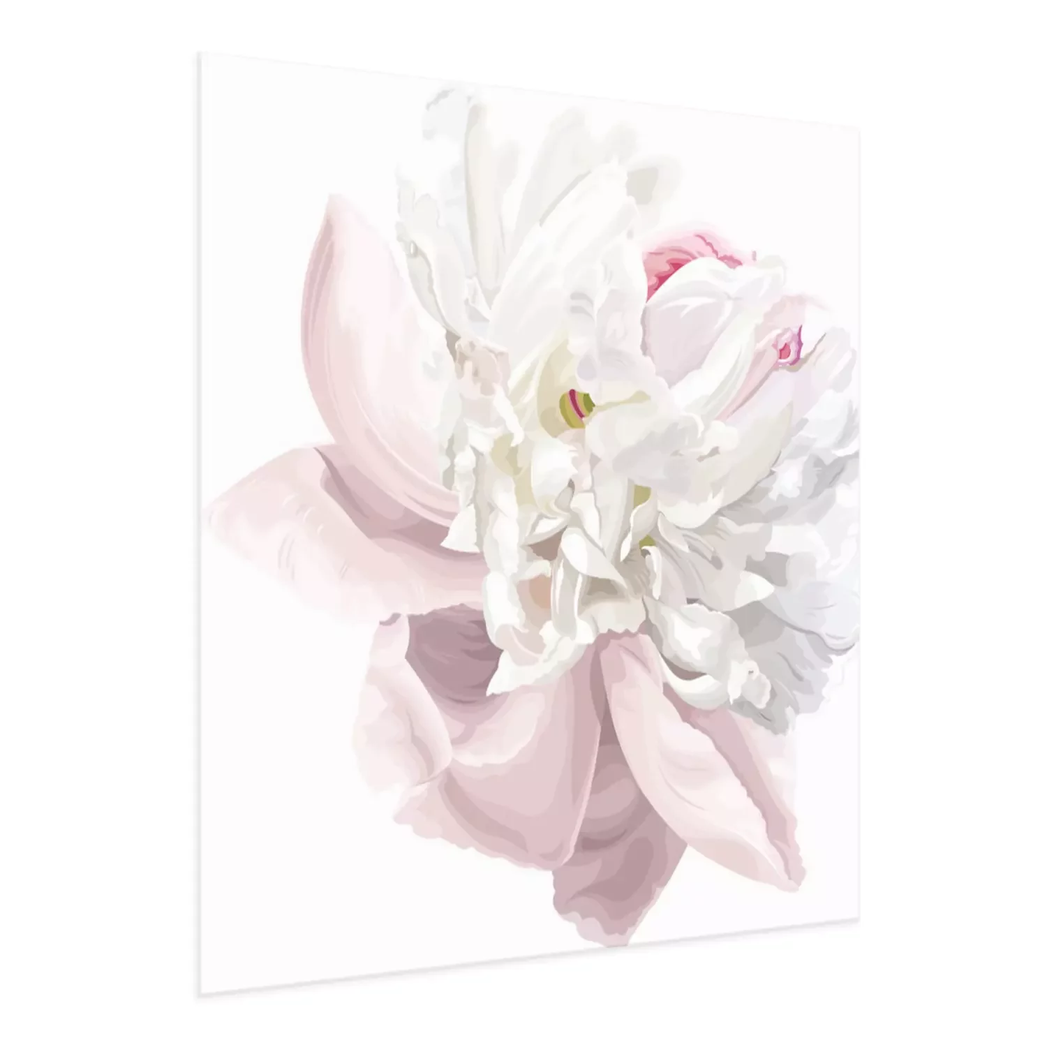 Poster: Weiß-rosa Pfingstrose mit vielen Blütenblättern