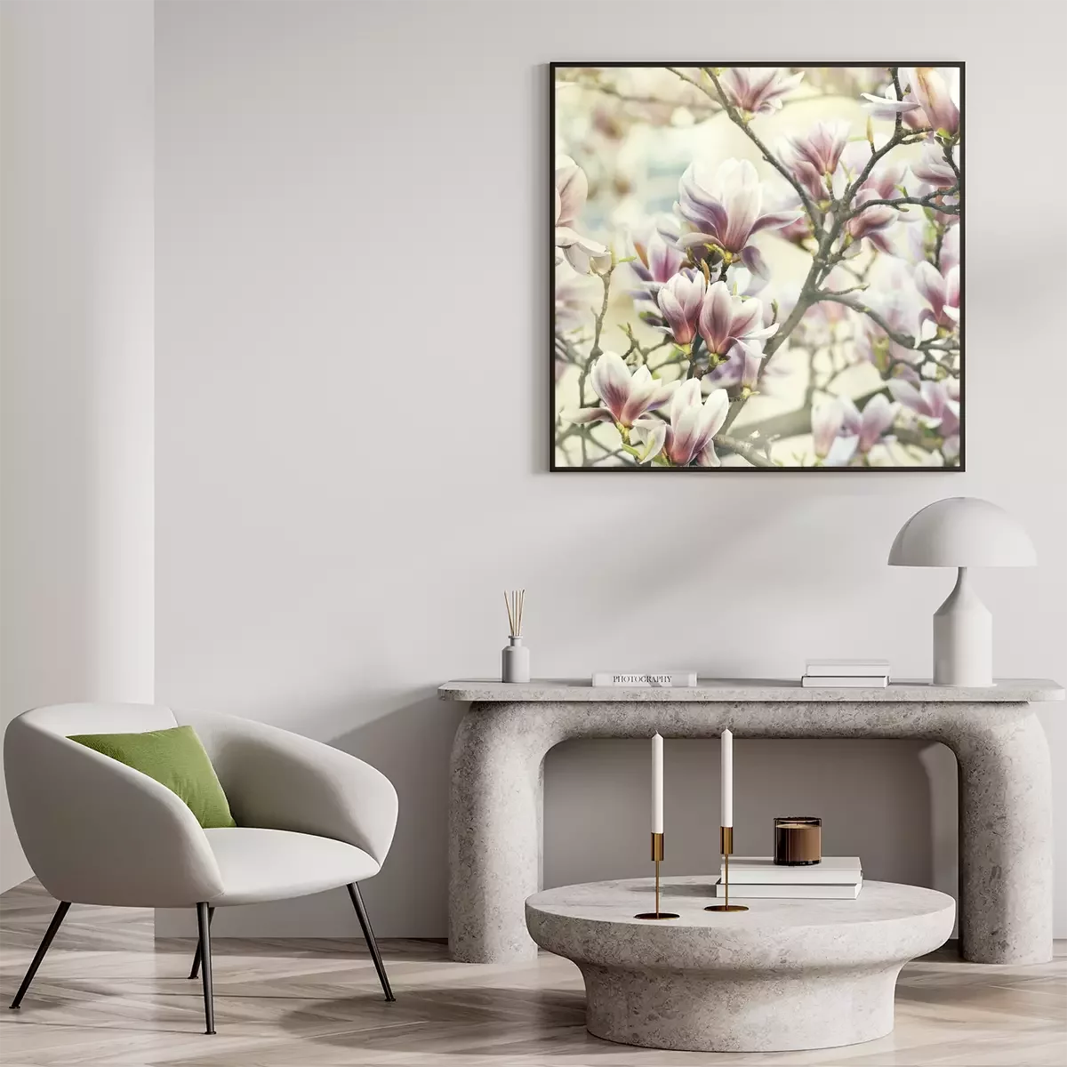 Poster: Weiße Blumen in der Mitte rosa gefärbt
