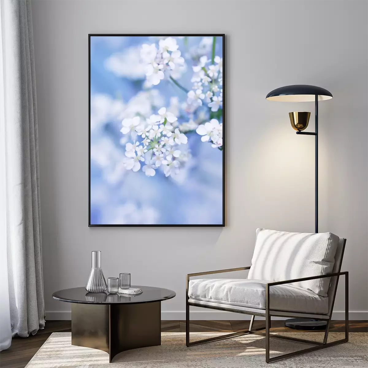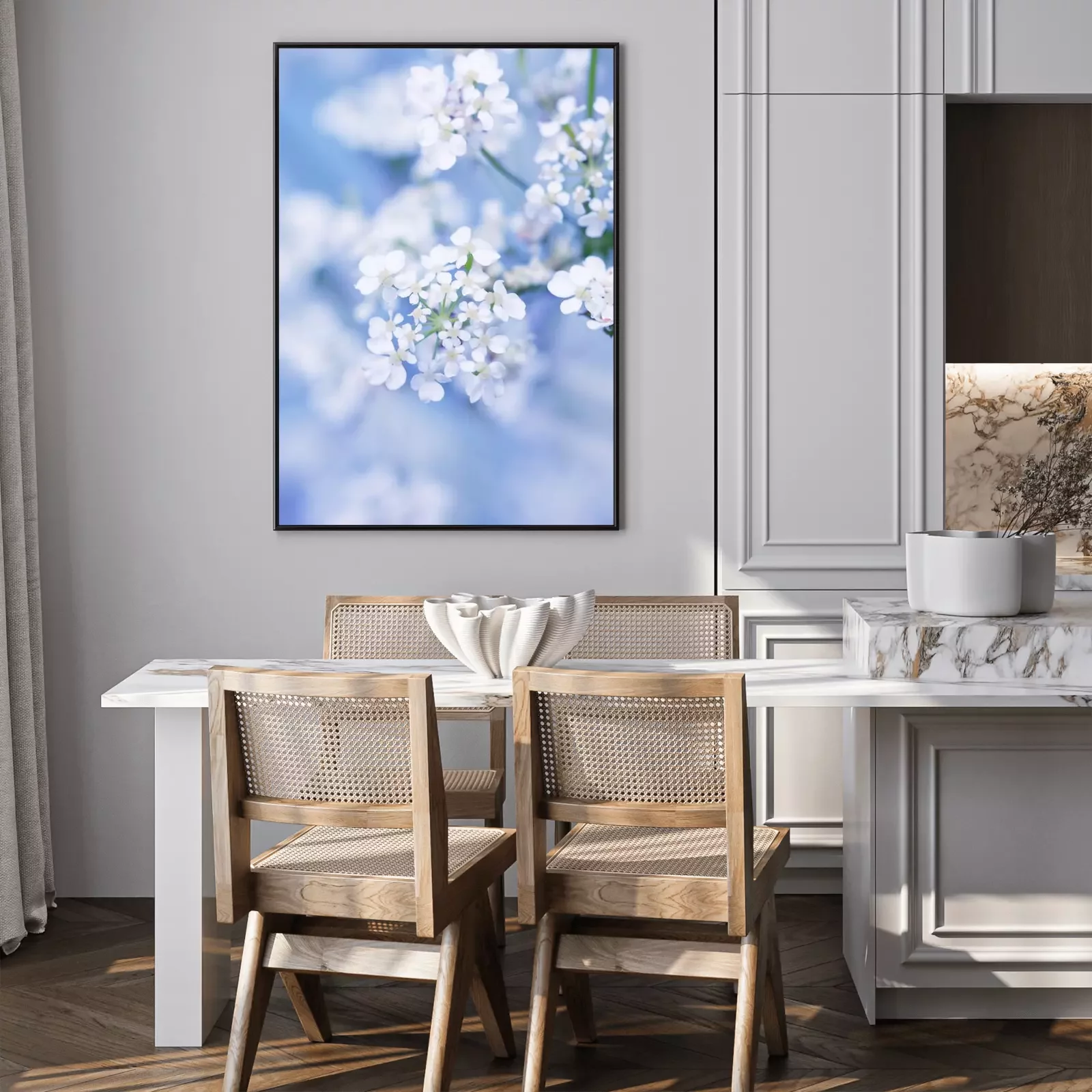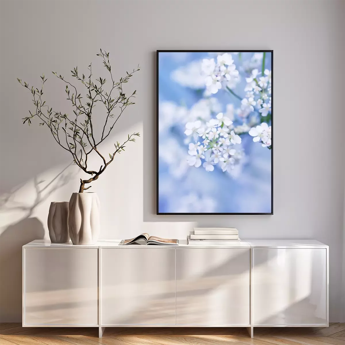Poster: Weiße Frühlingsblumen auf einem unscharfen Hintergrund