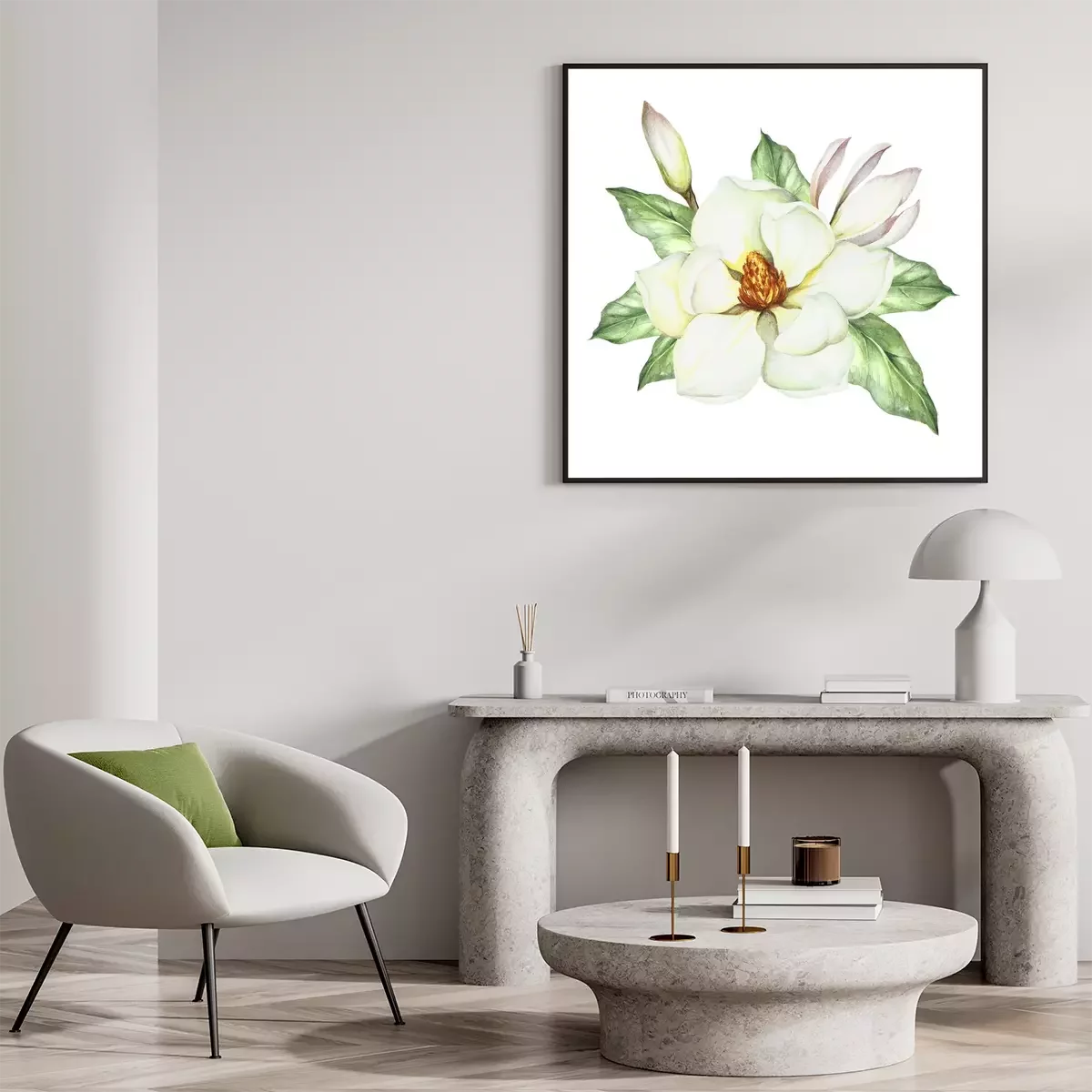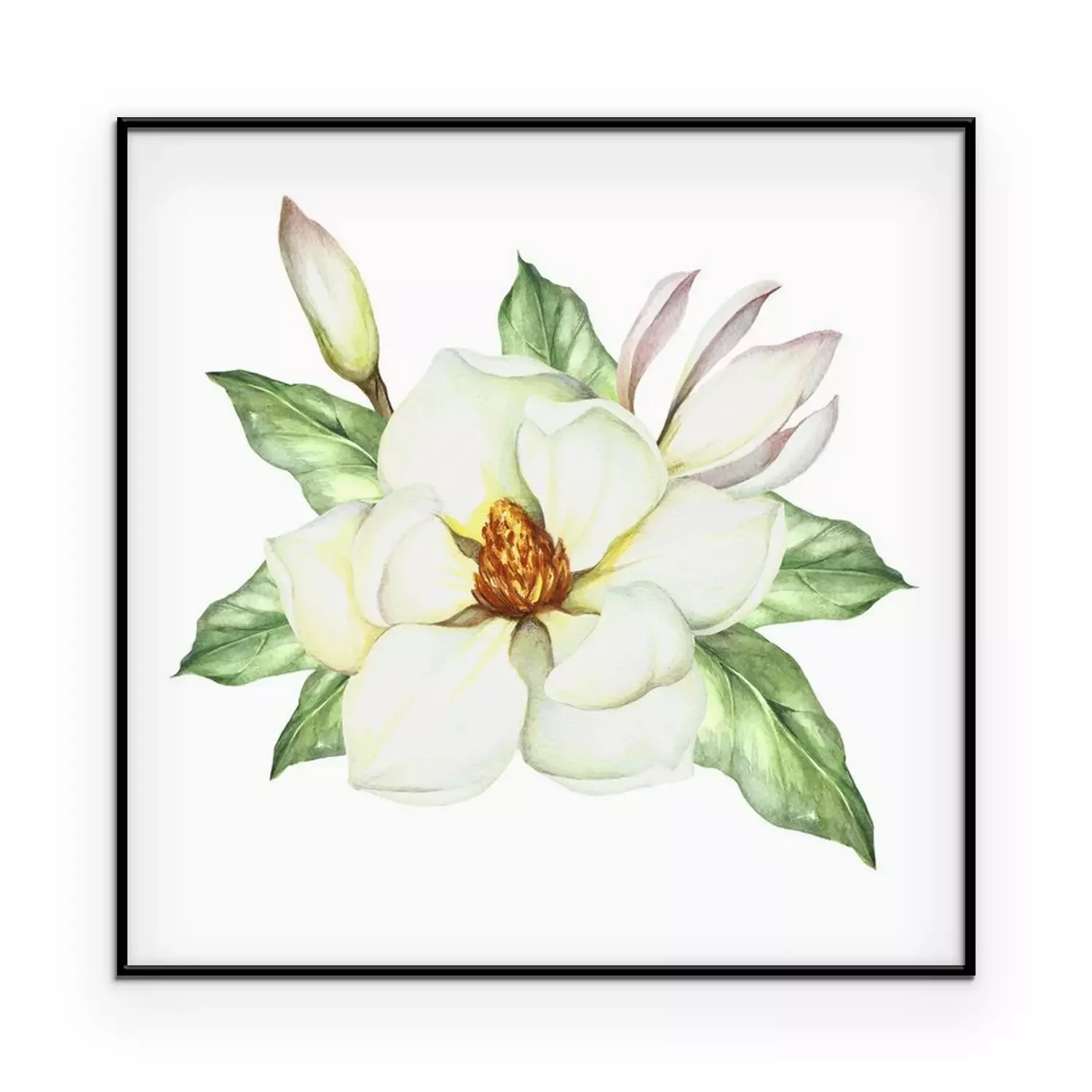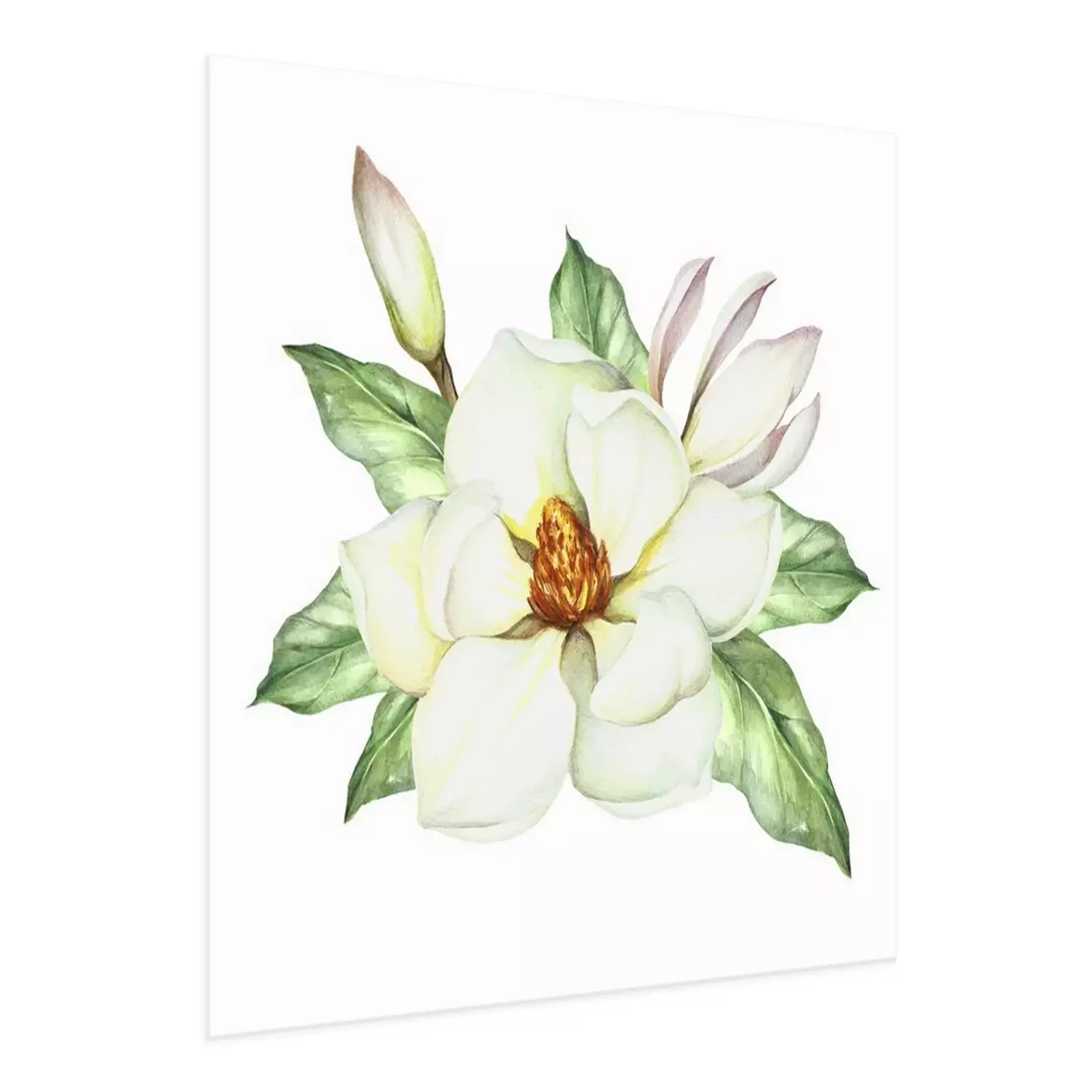 Poster: Weiße Magnolie eingebettet in grüne Blätter