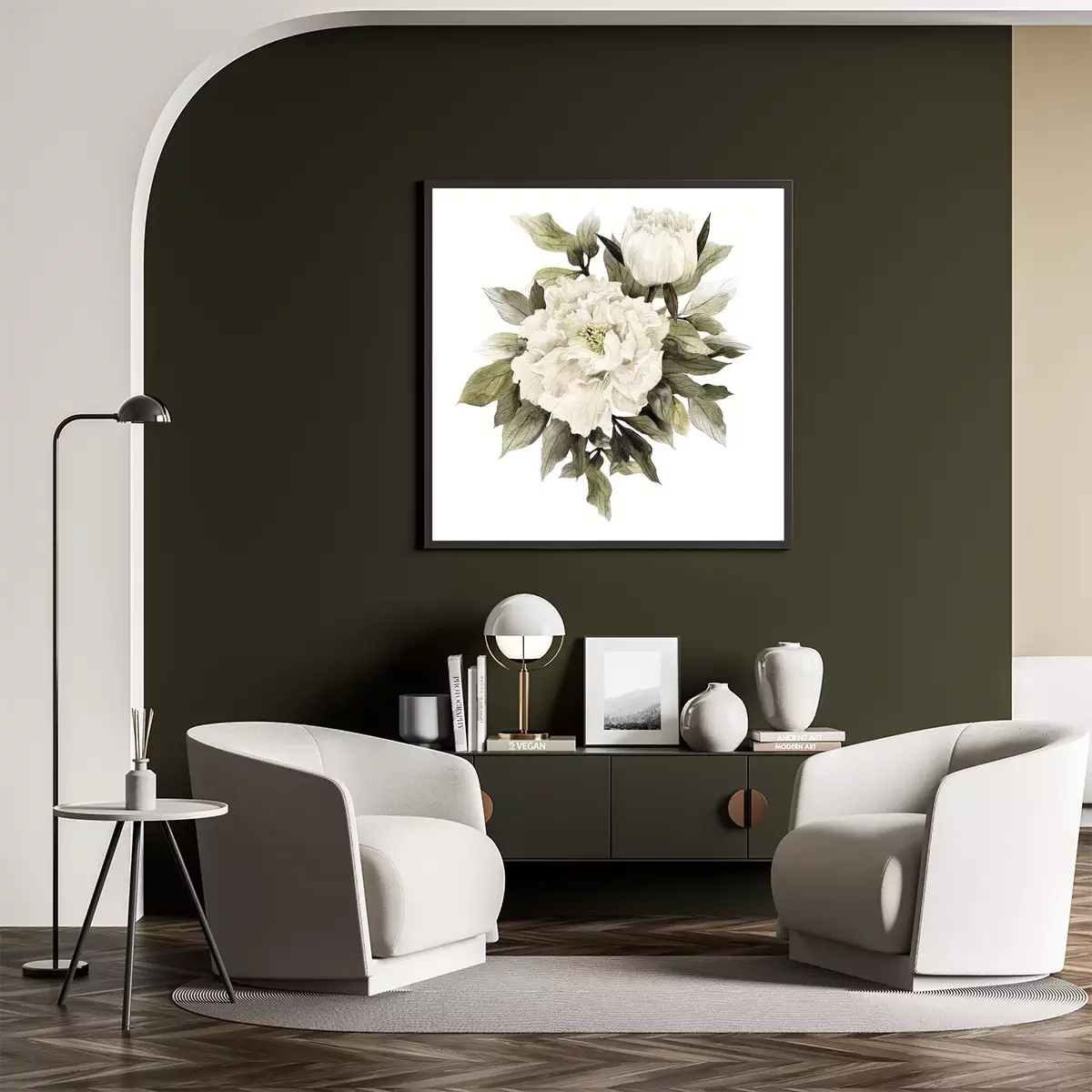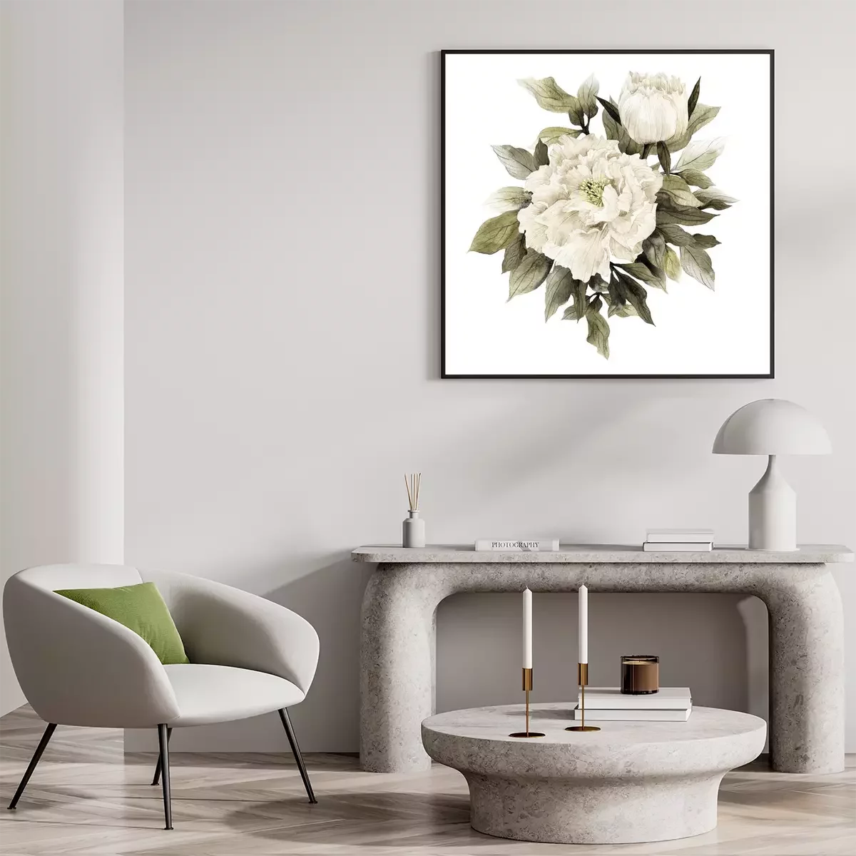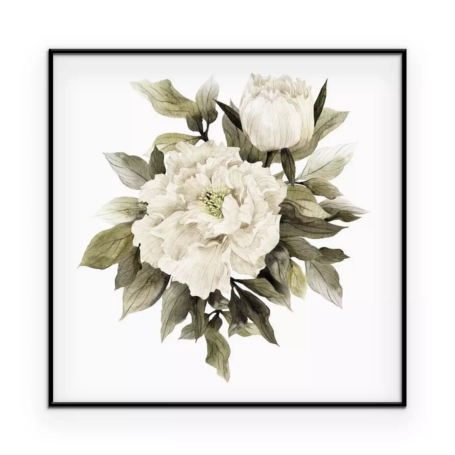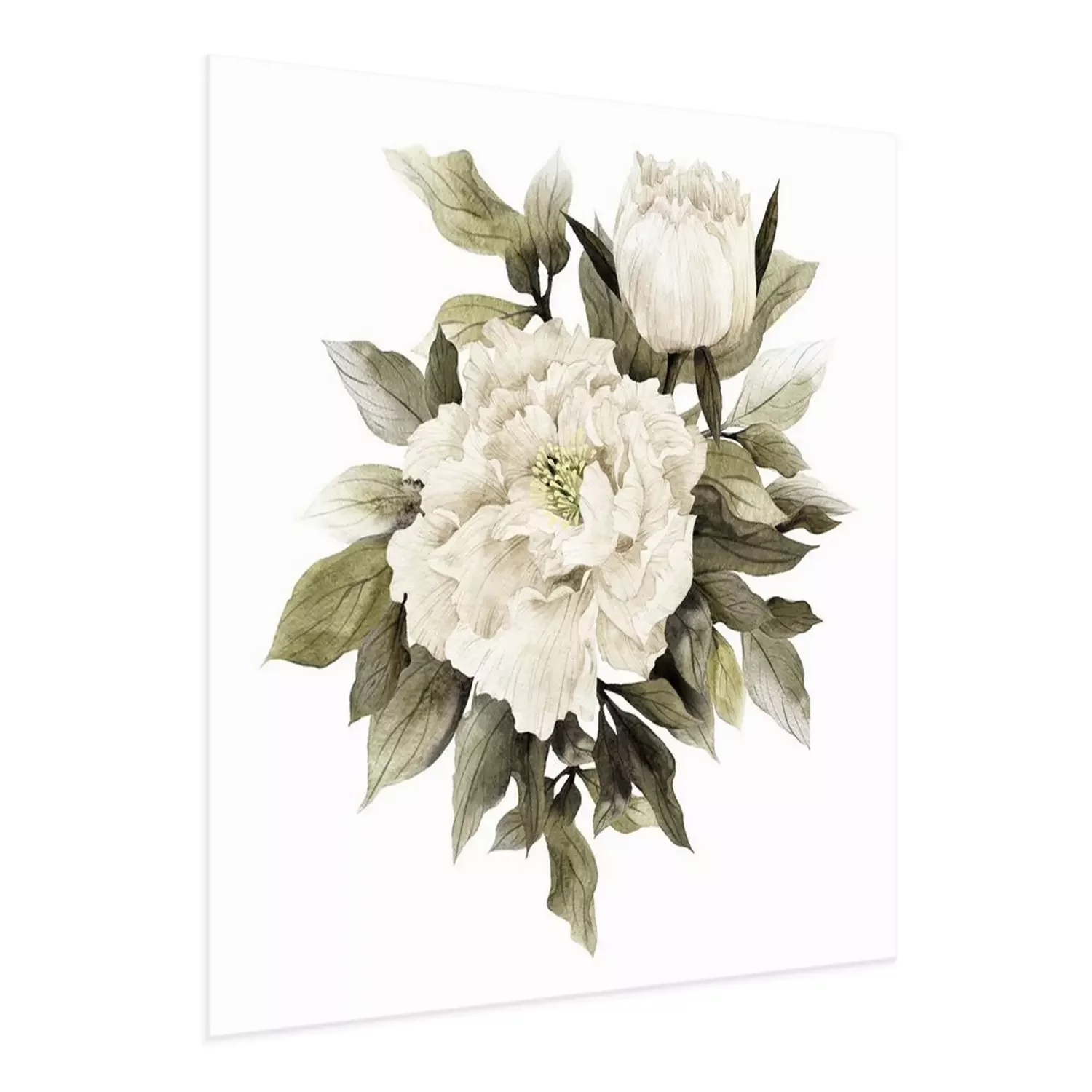 Poster: Weiße Pfingstrosen mit Wassertechnik gemalt