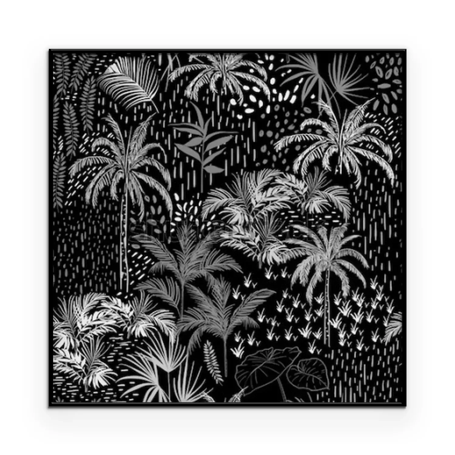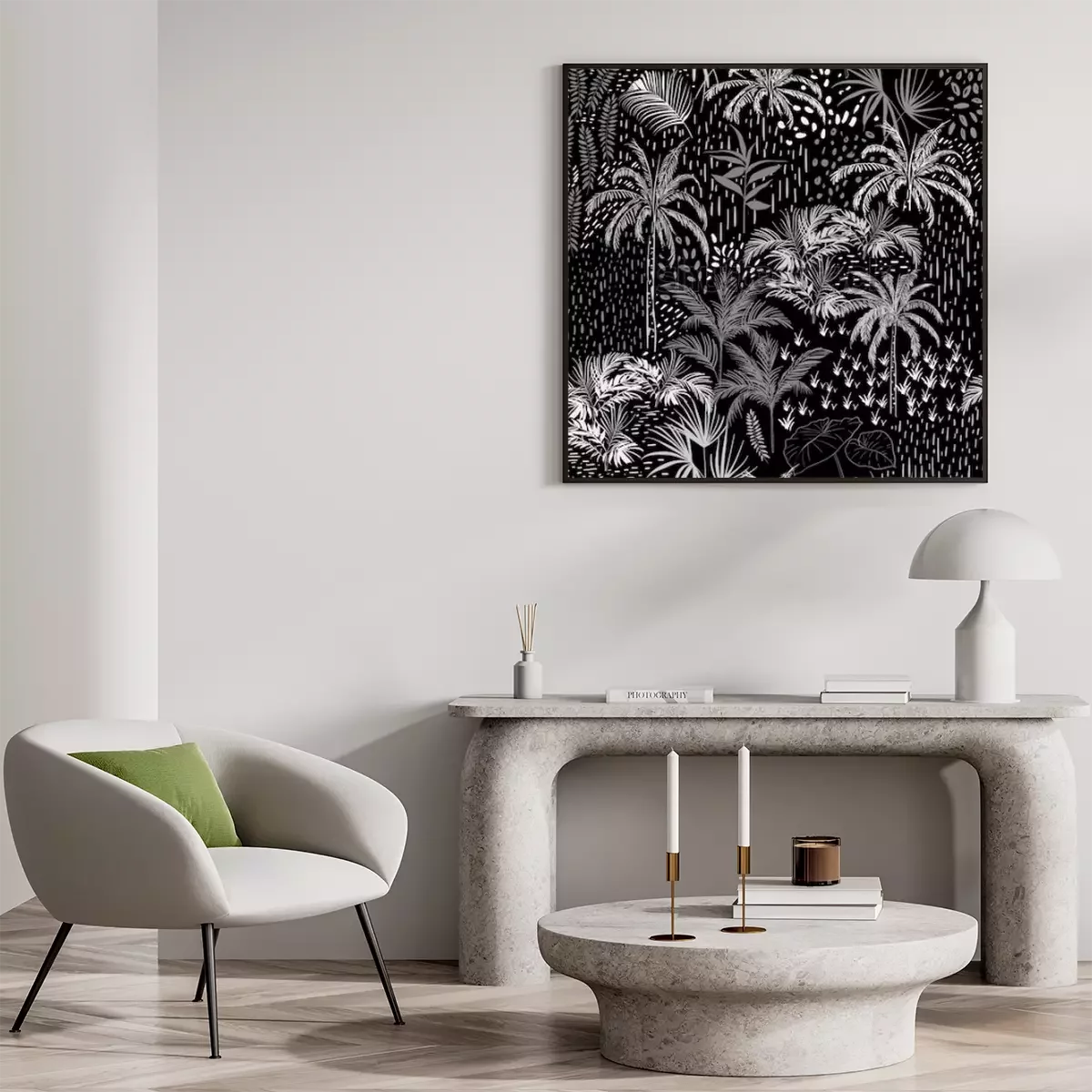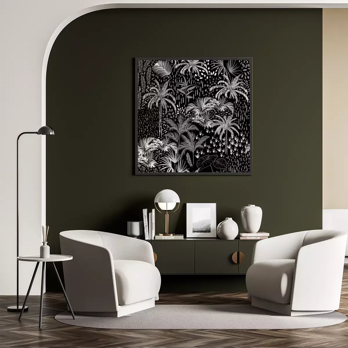 Poster: Weiße tropische Pflanzen auf schwarzem Hintergrund