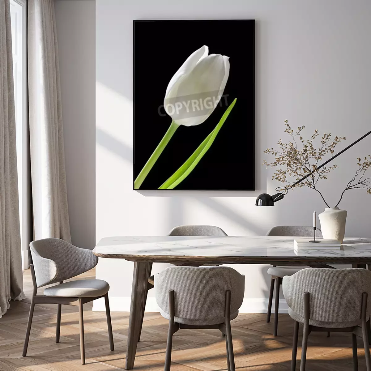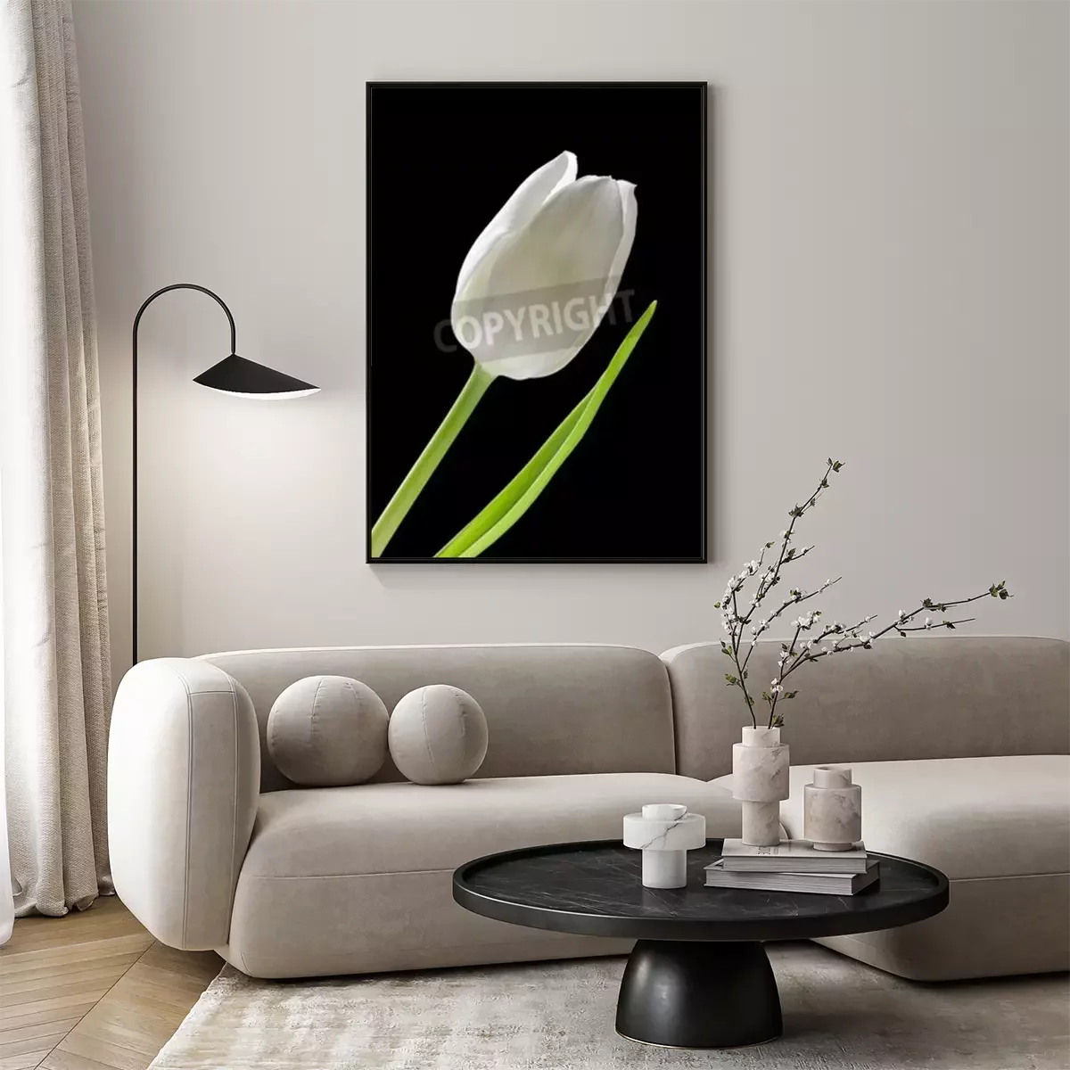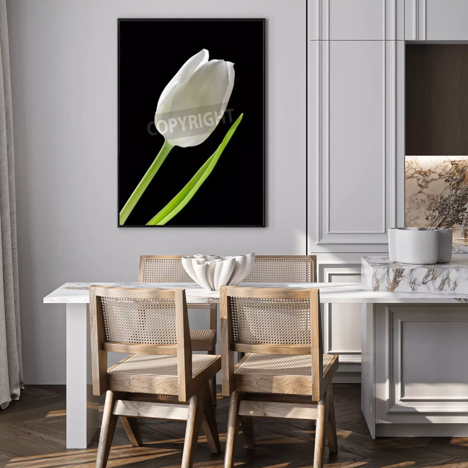 Poster: Weiße Tulpe auf dunklem Hintergrund