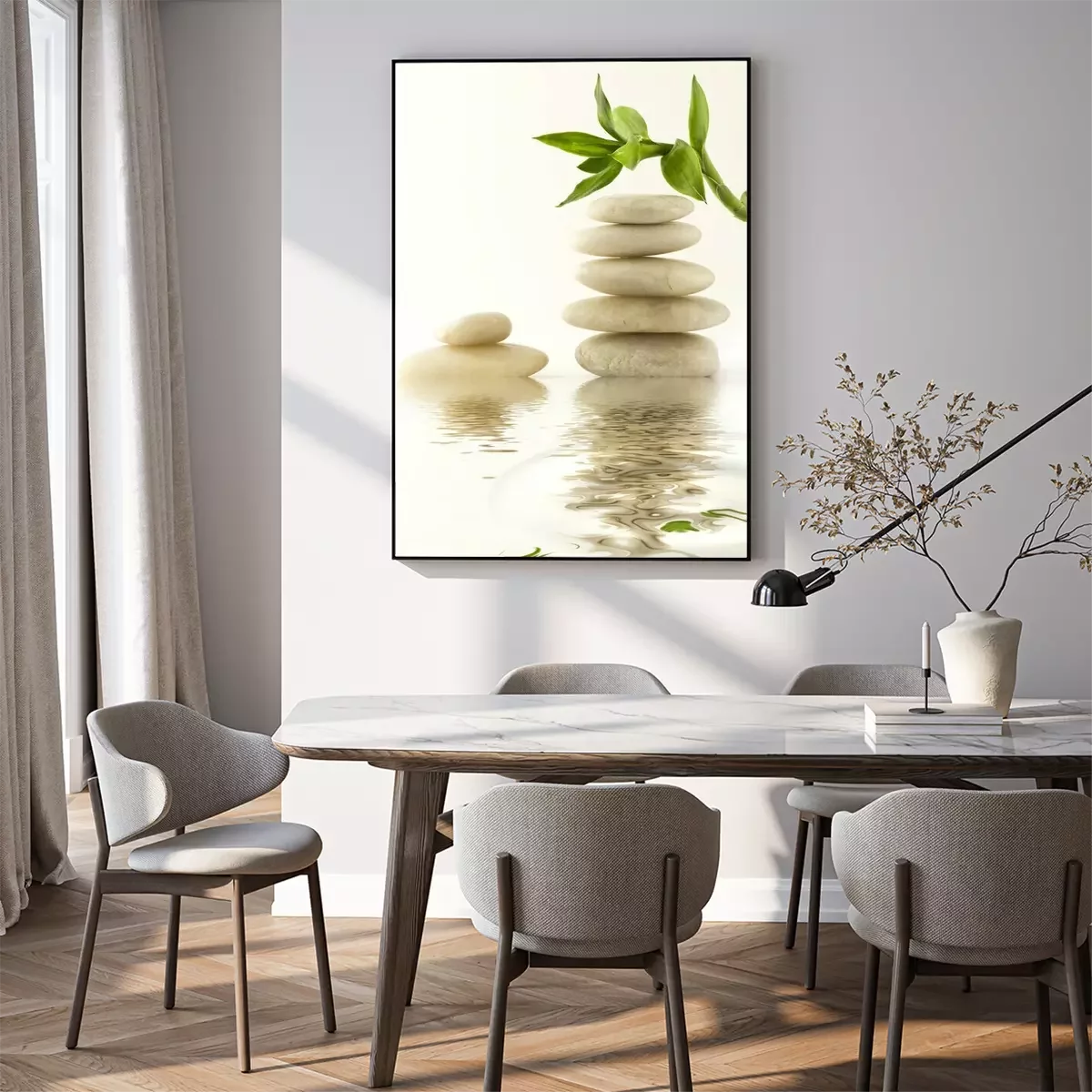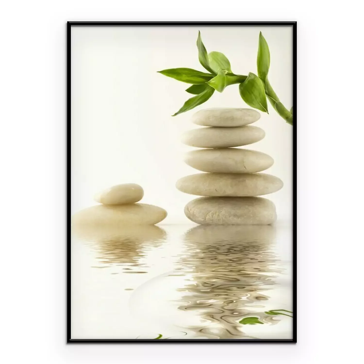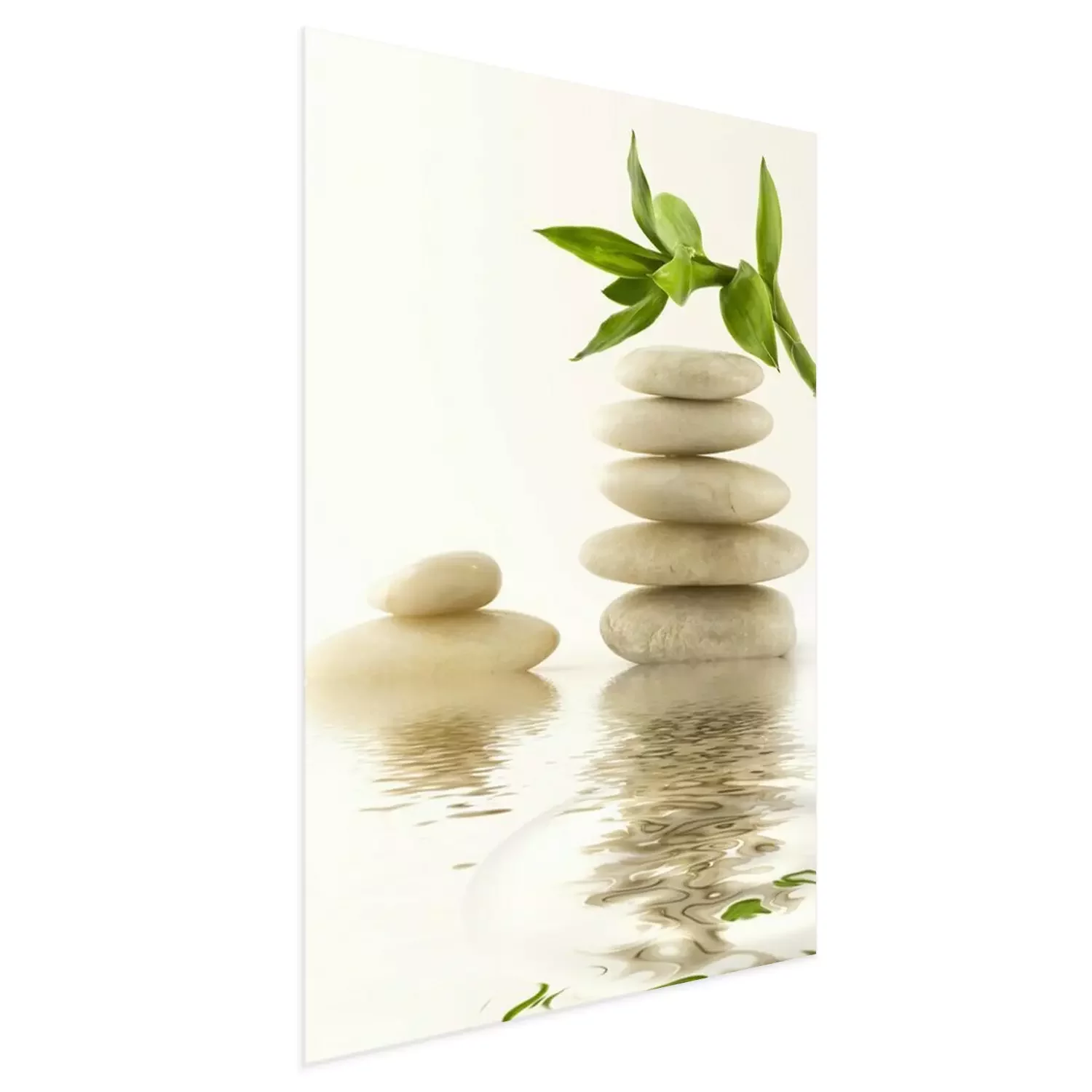 Poster: Weiße Zen-Steine, bedeckt mit Bambussprossen