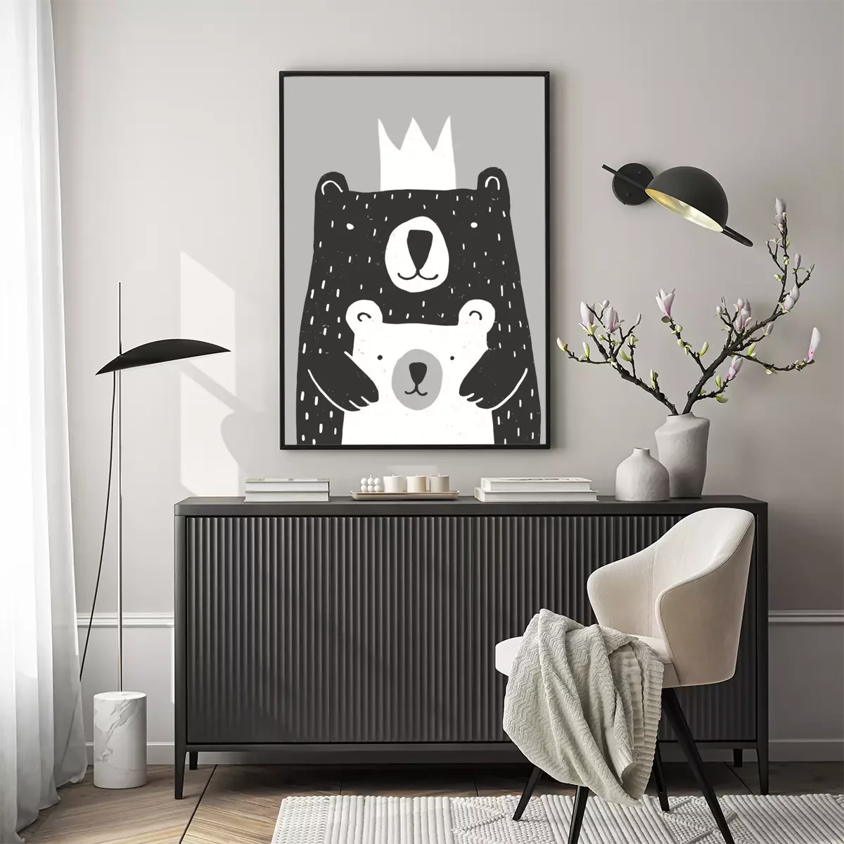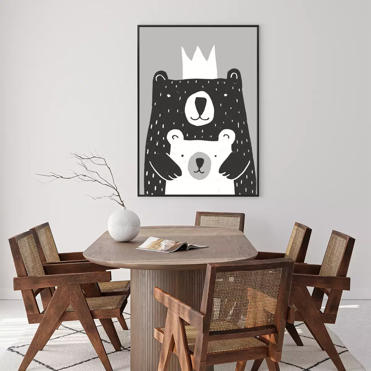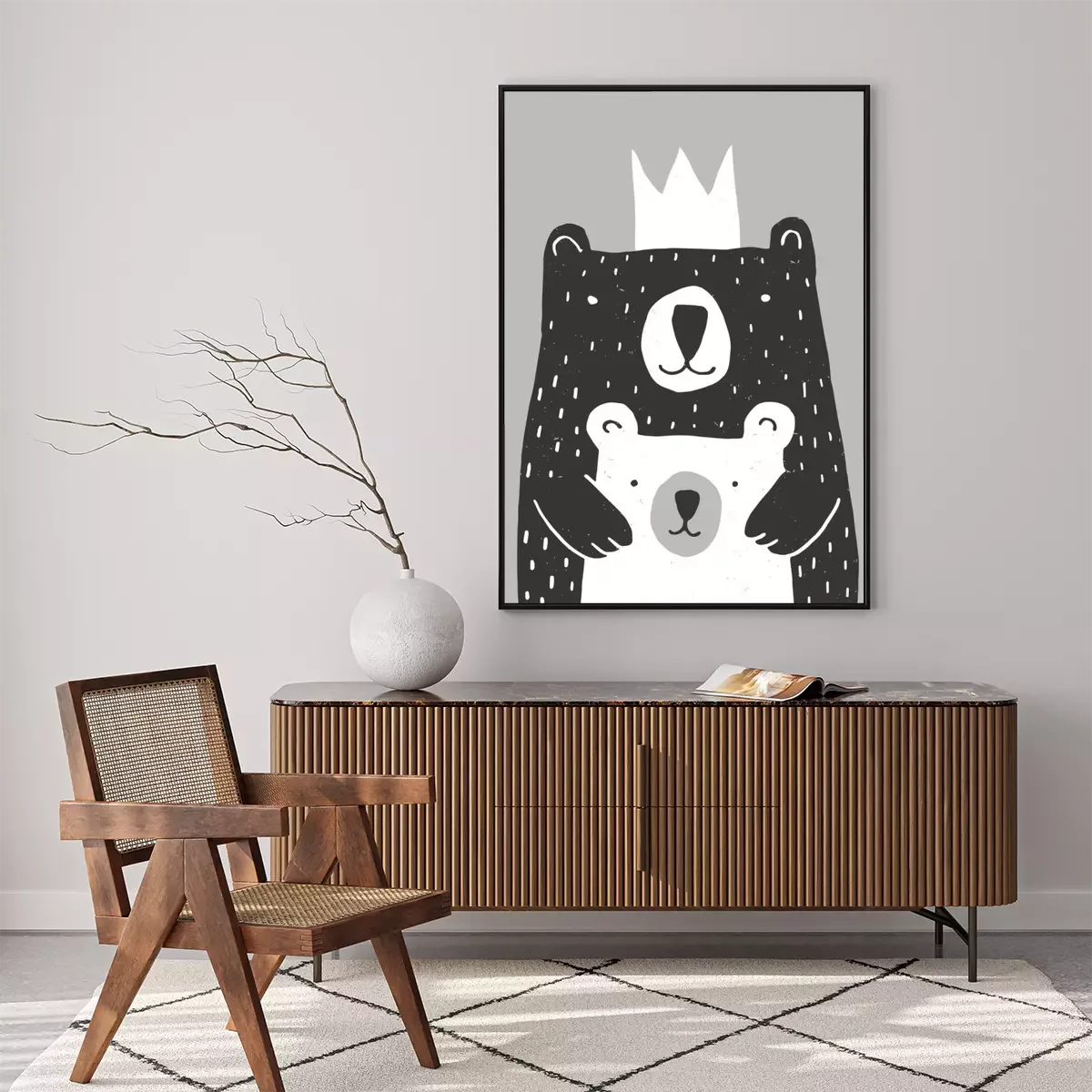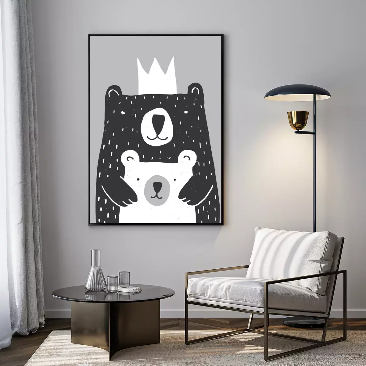 Poster Weißer Bär und schwarzer Bär mit einer Krone in einer Umarmung