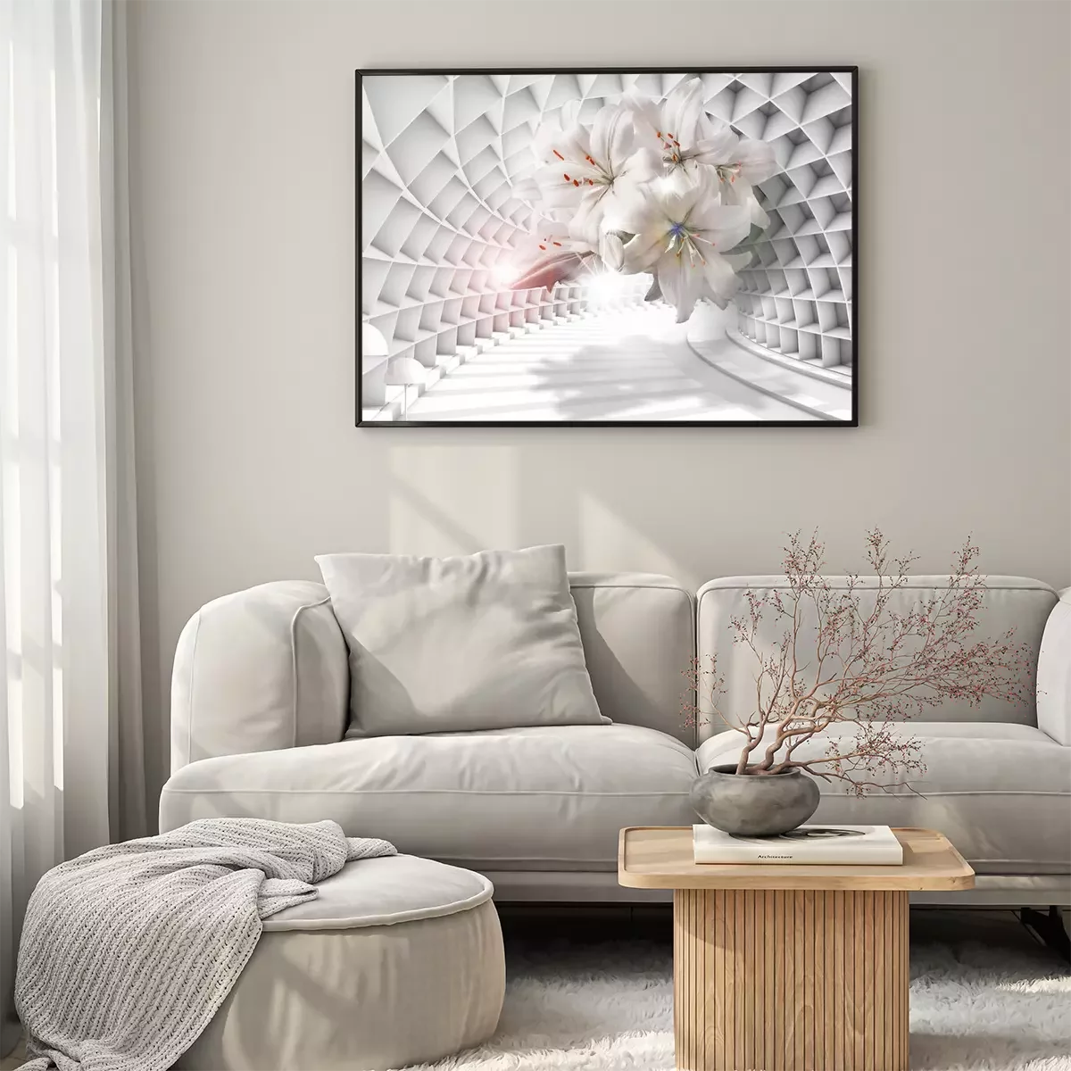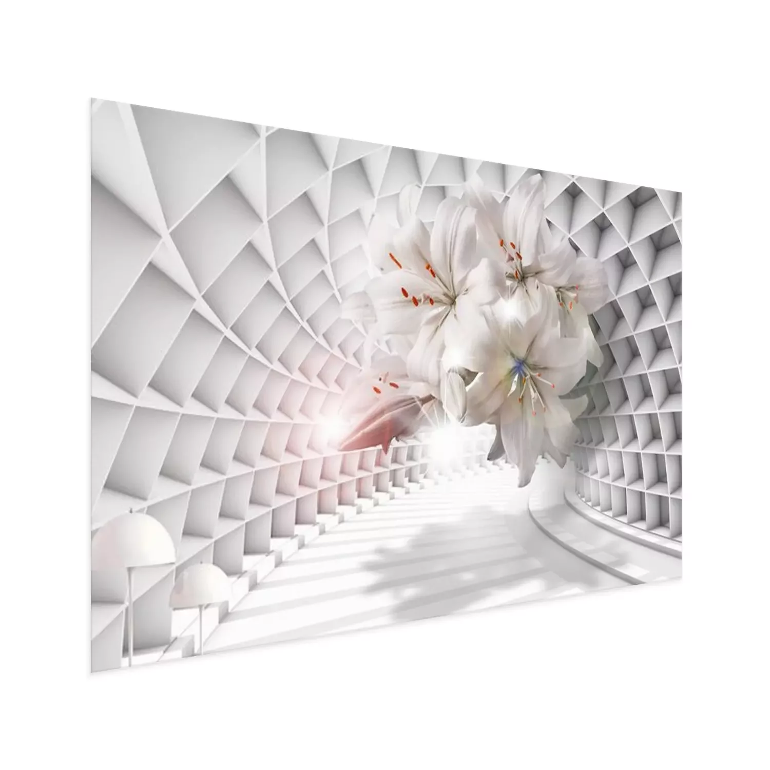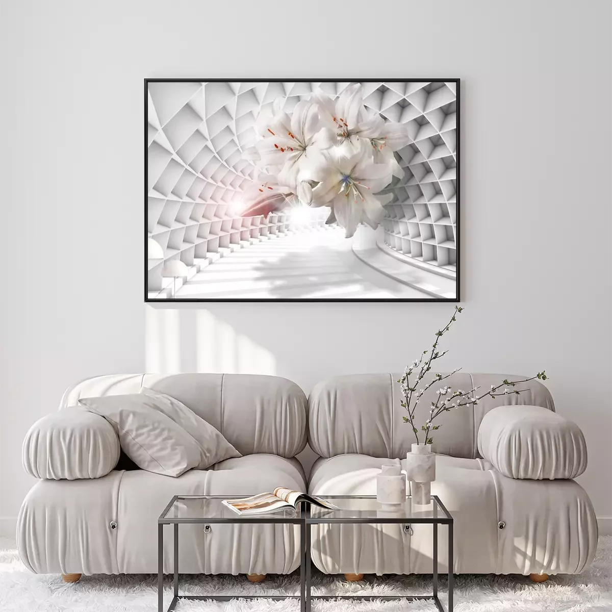 Poster: Weißer gewundener Korridor mit Blumen 3d