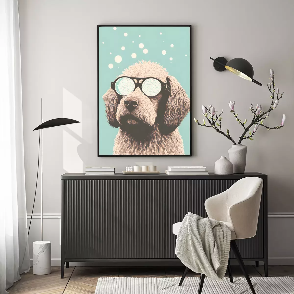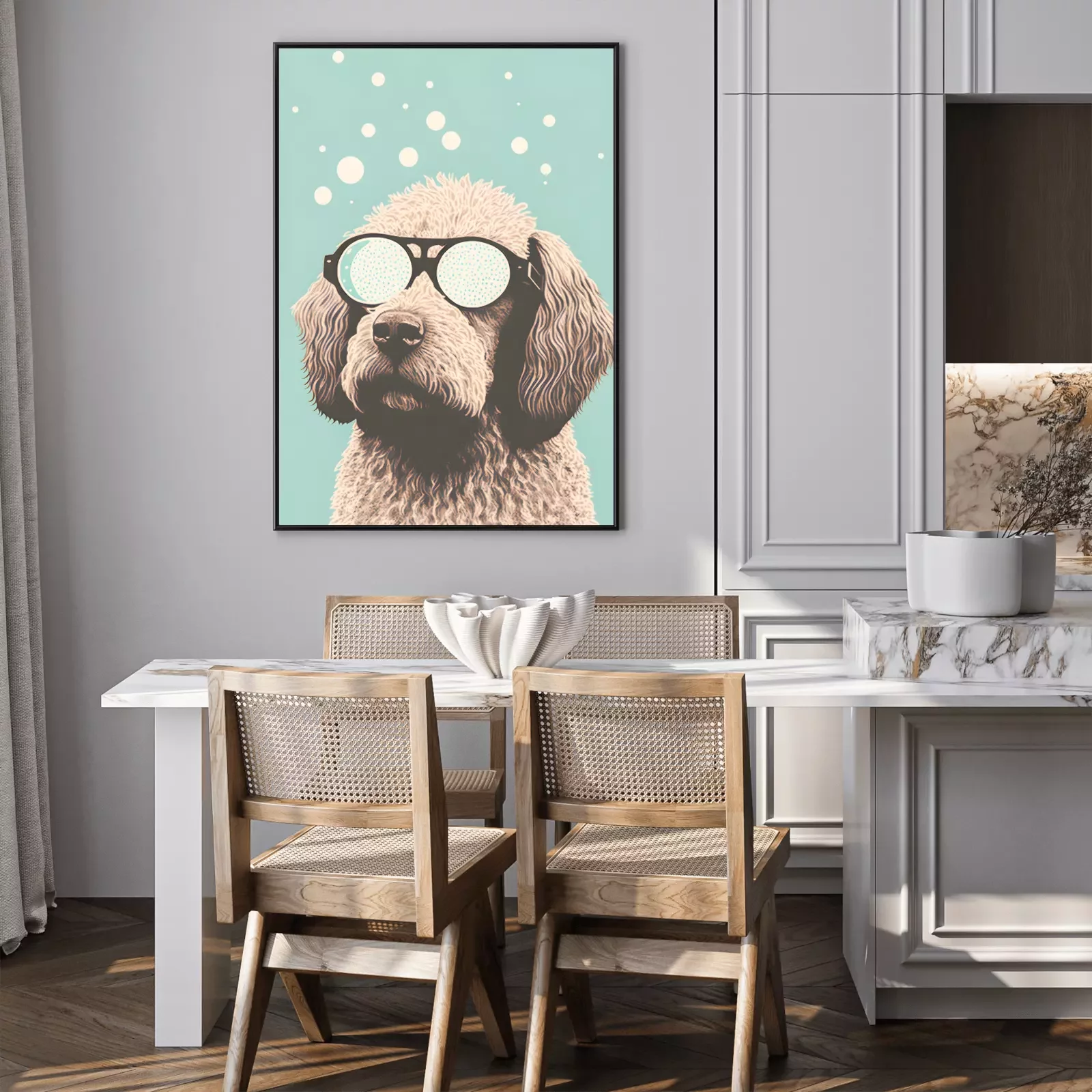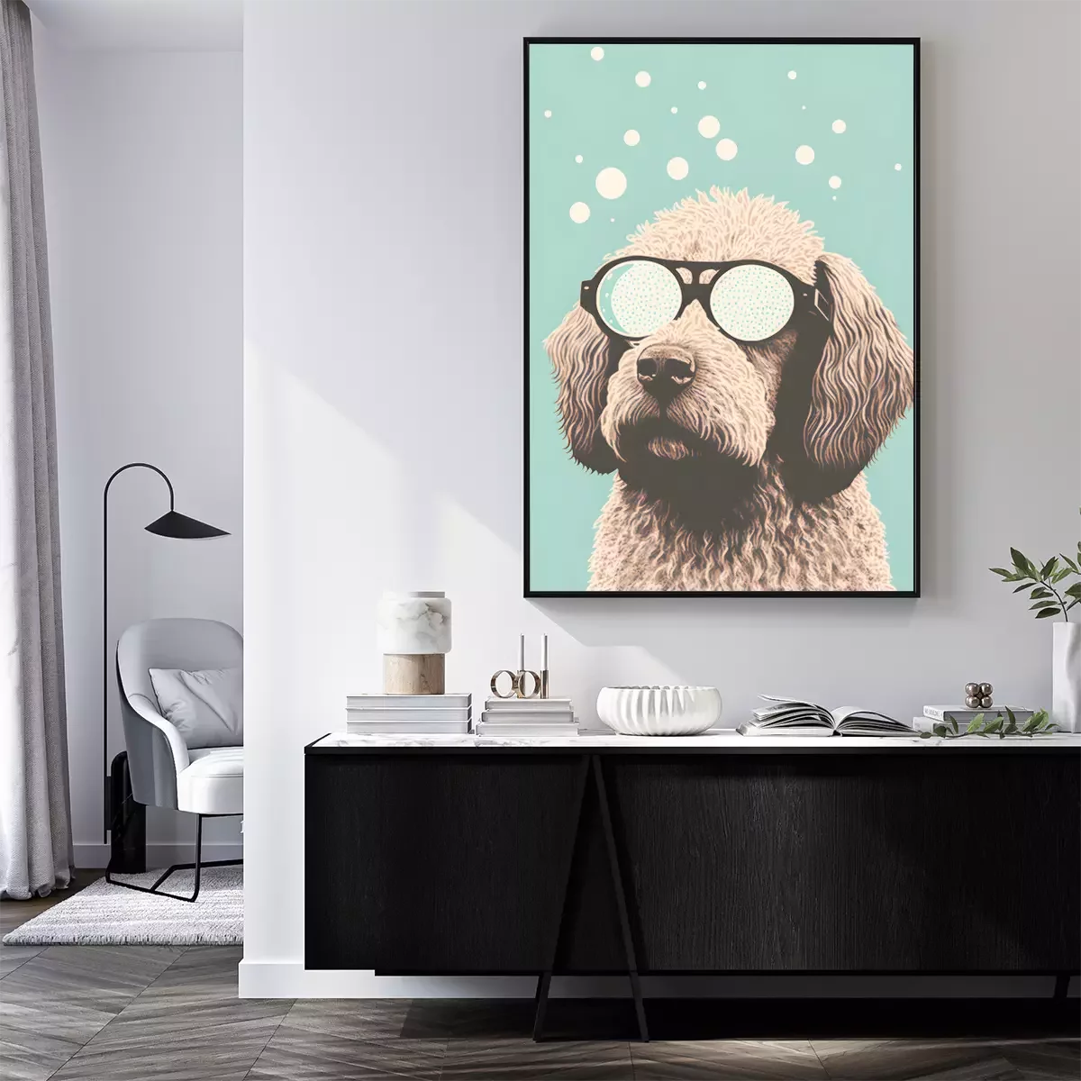 Poster: Weißer Hund mit Brille