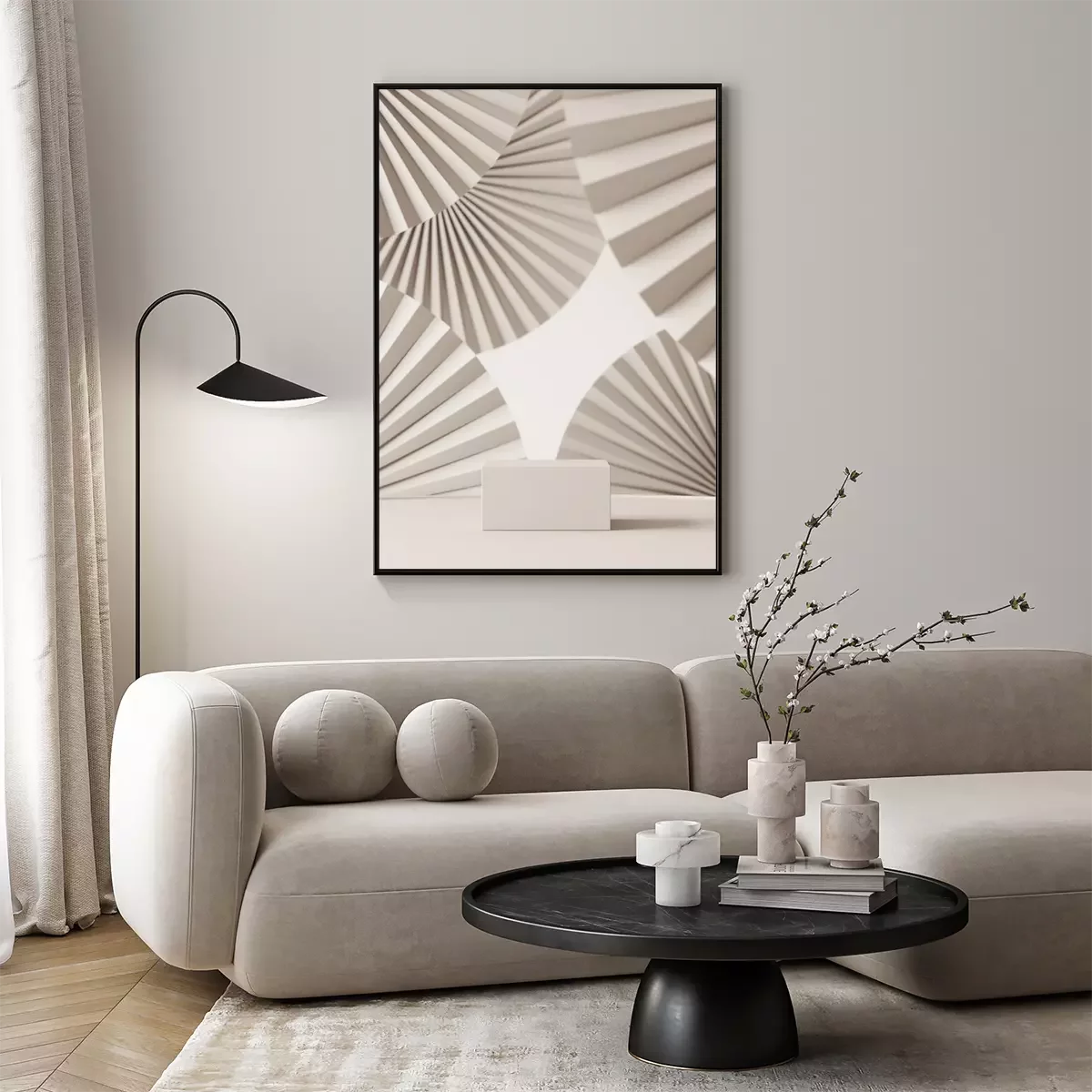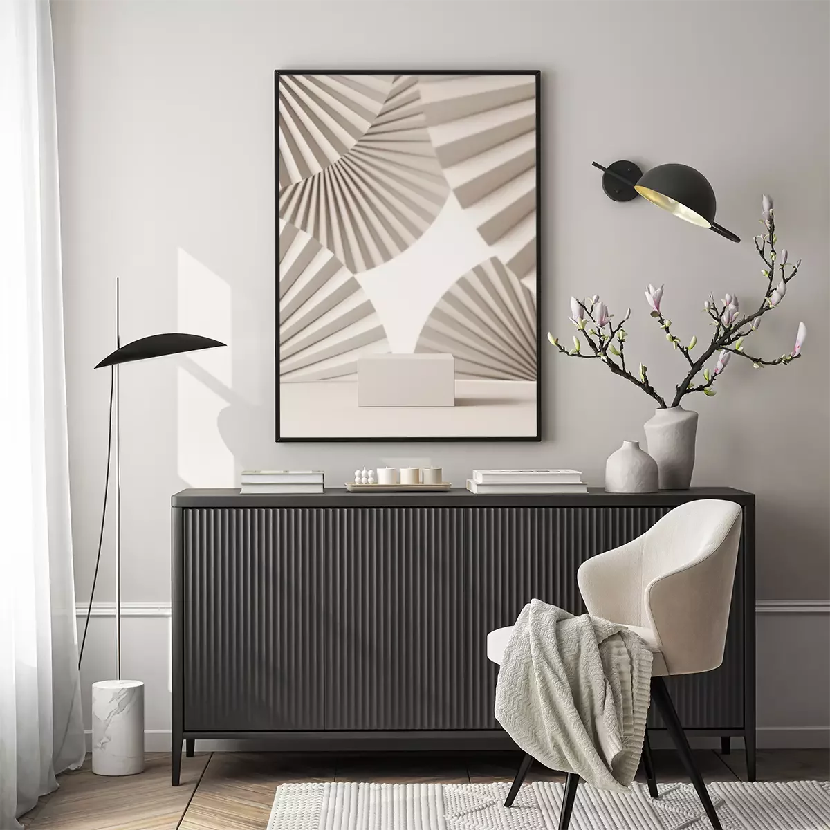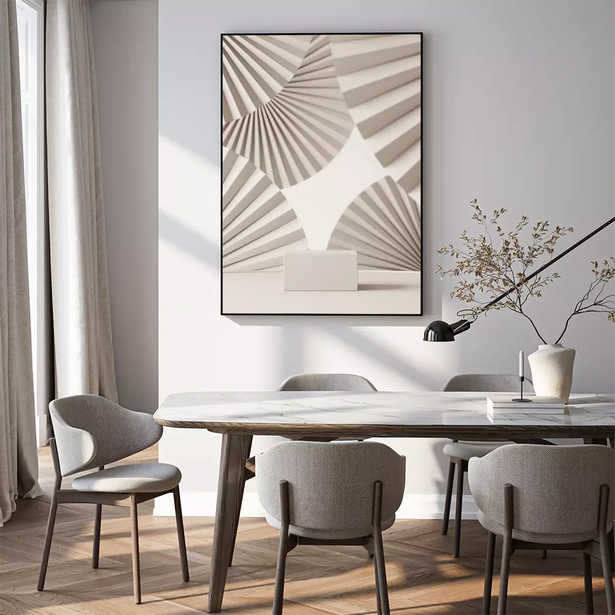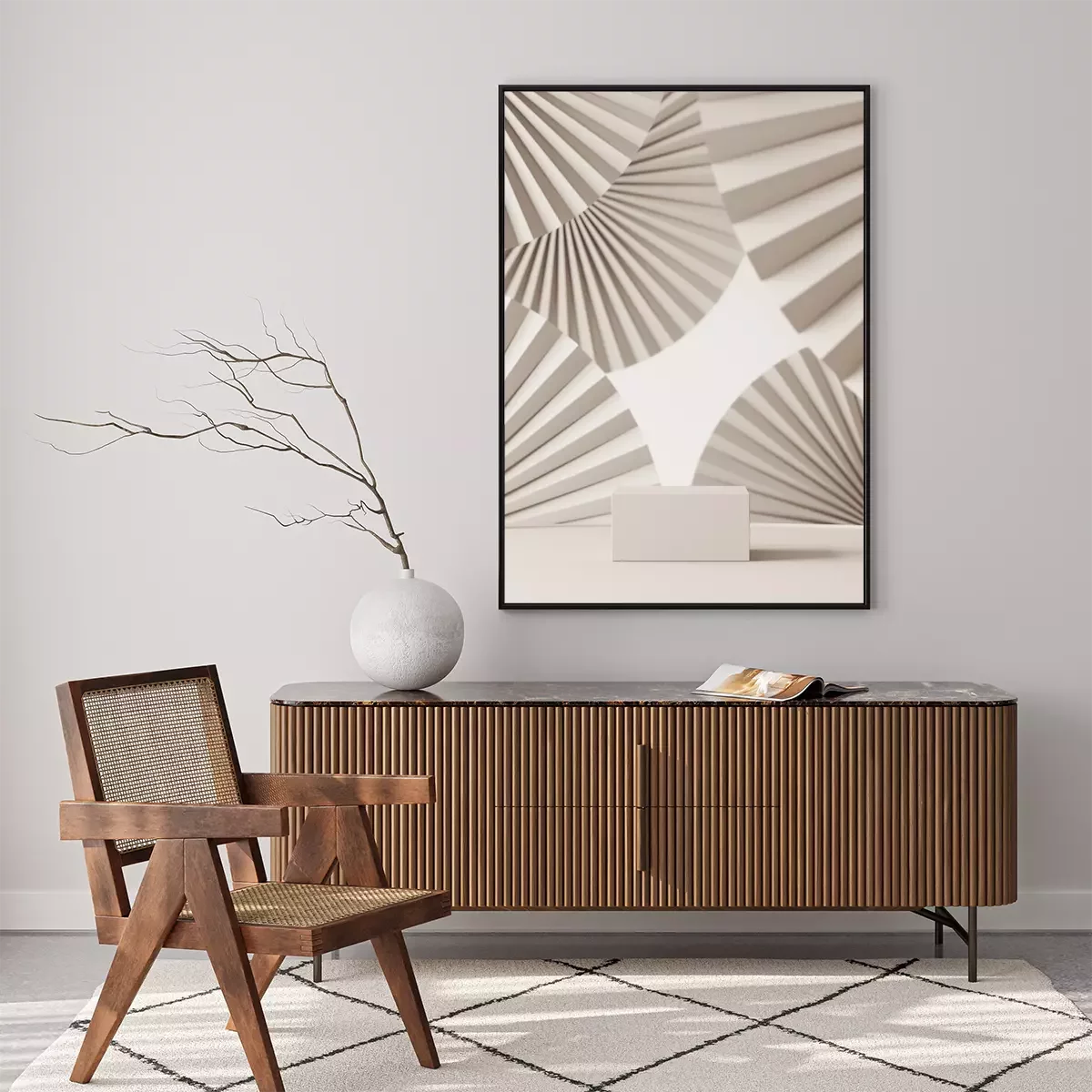 Poster: Weißes Polyeder auf einem 3d-Fächer-Hintergrund