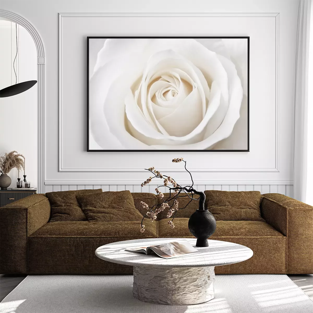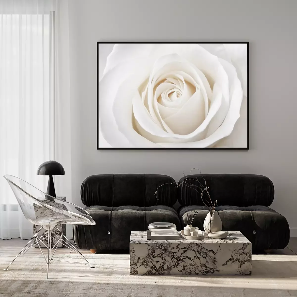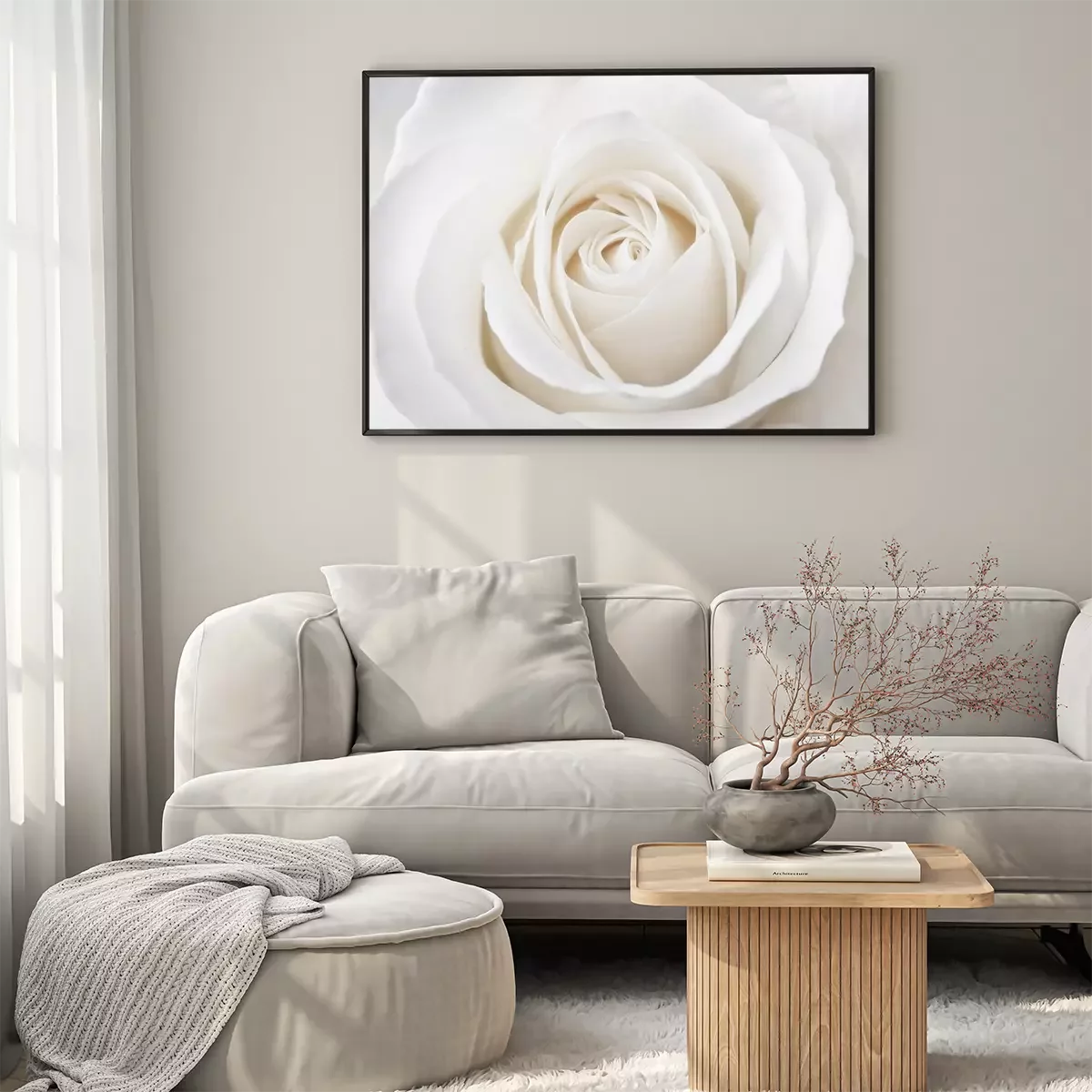 Poster: Weißes Rosenblütenblatt als Nahaufnahme