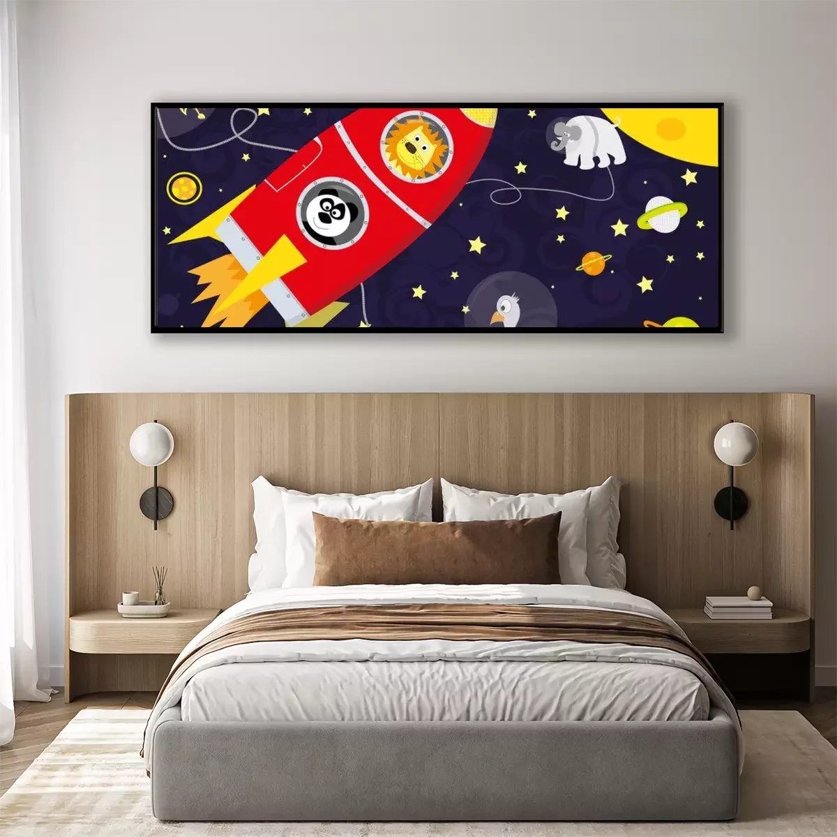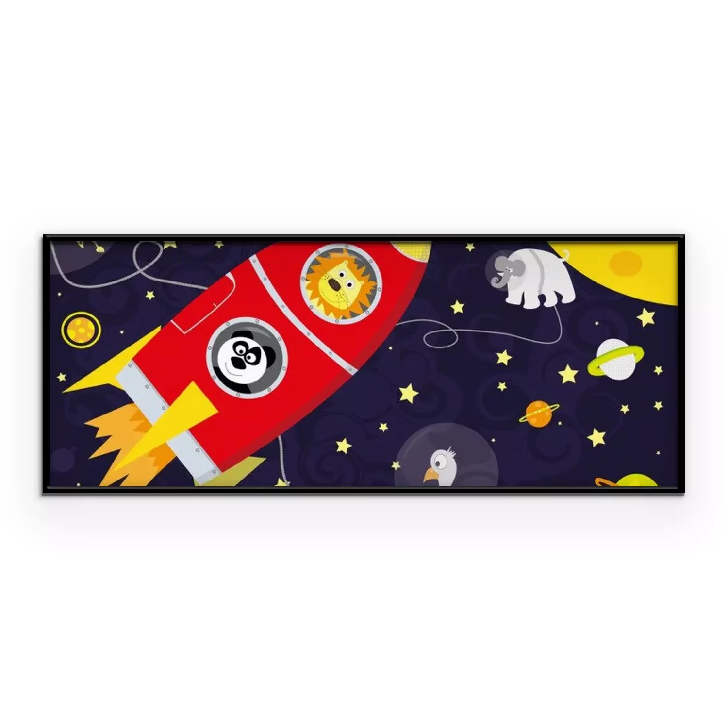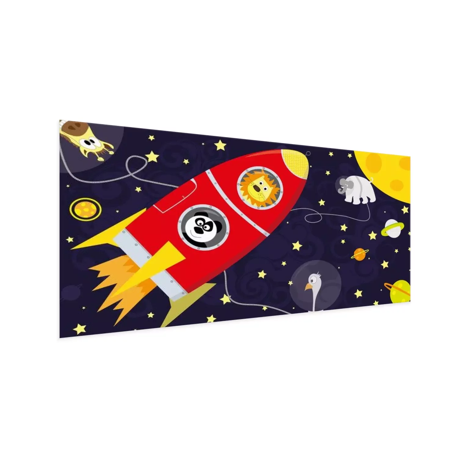 Poster: Weltrall Kinder Löwe und Panda in einer Rakete