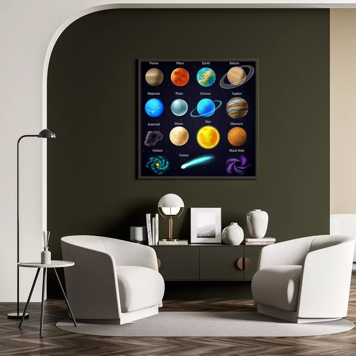 Poster: Weltraum mit Sternen und allen Planeten im System