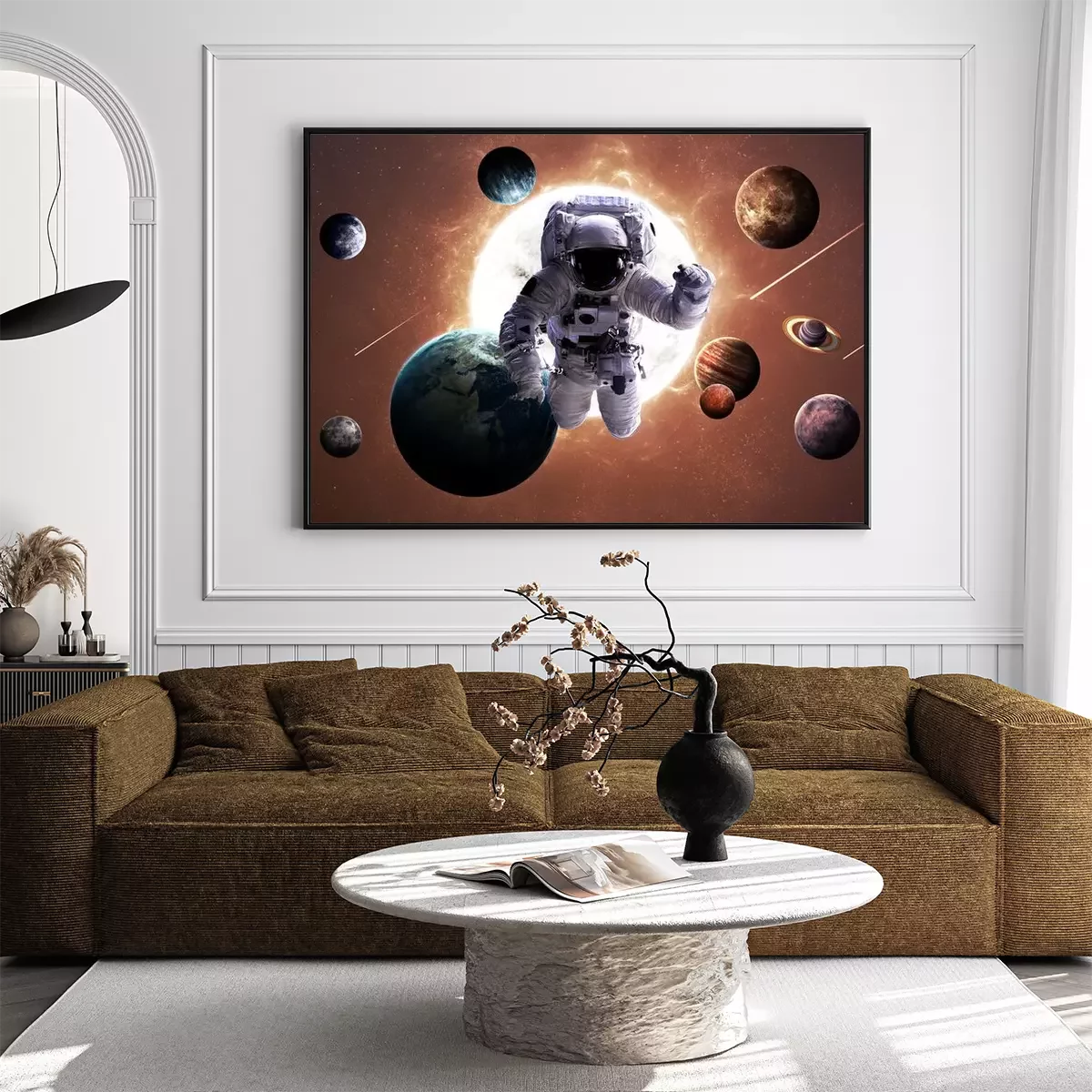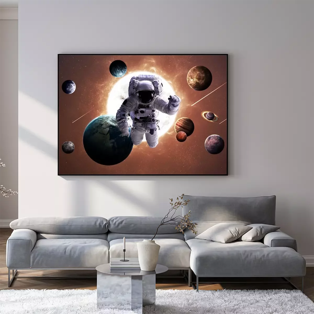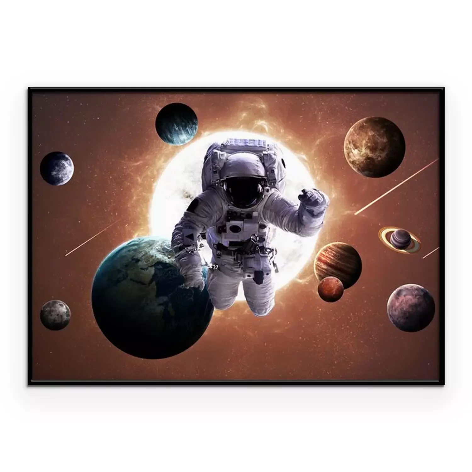 Poster: Weltraum, Planeten und tapferer Astronaut