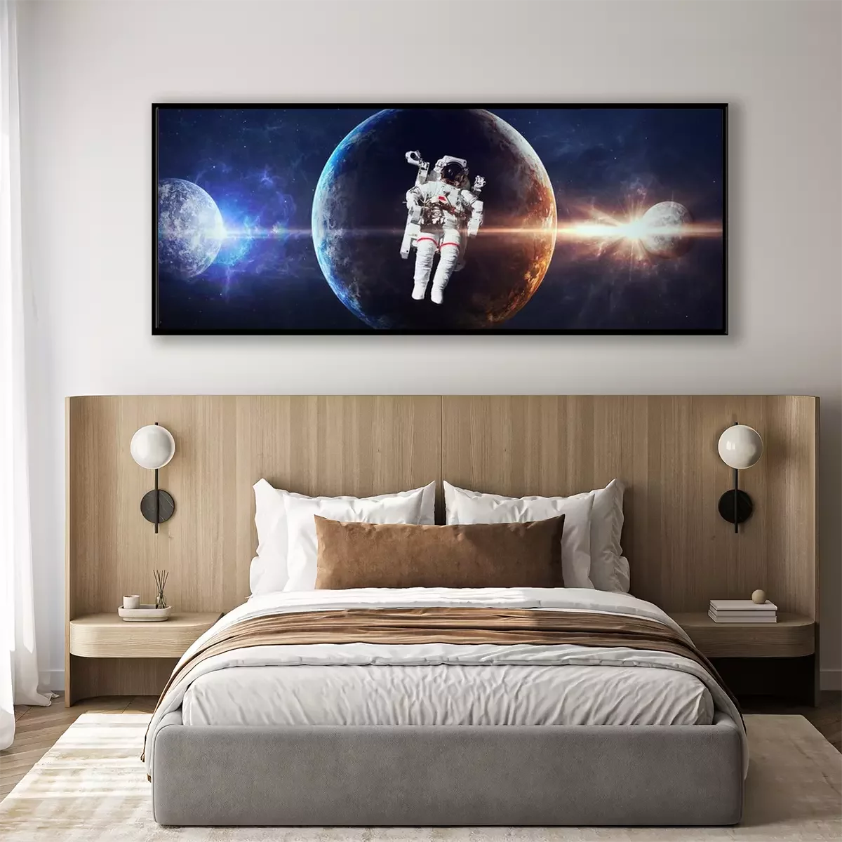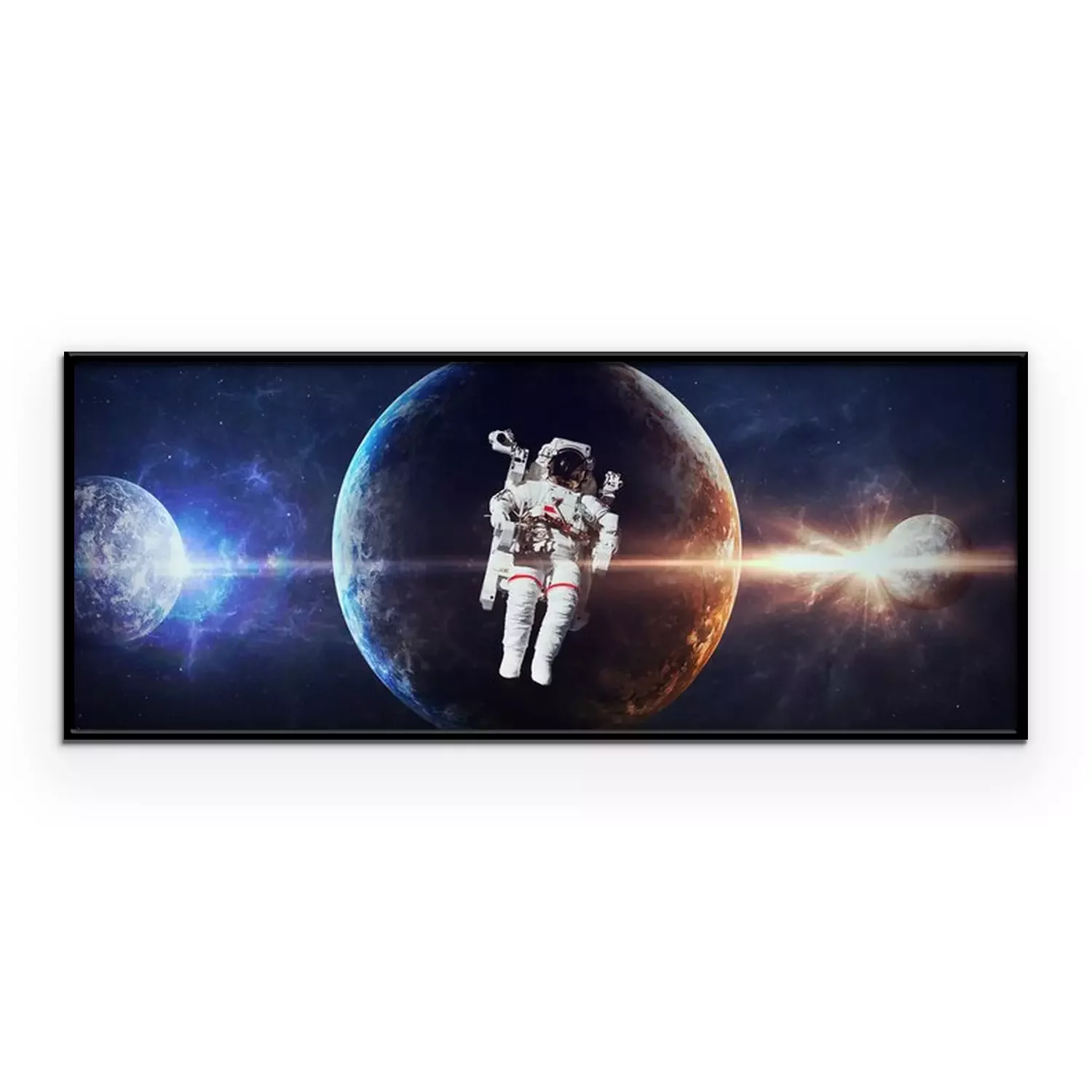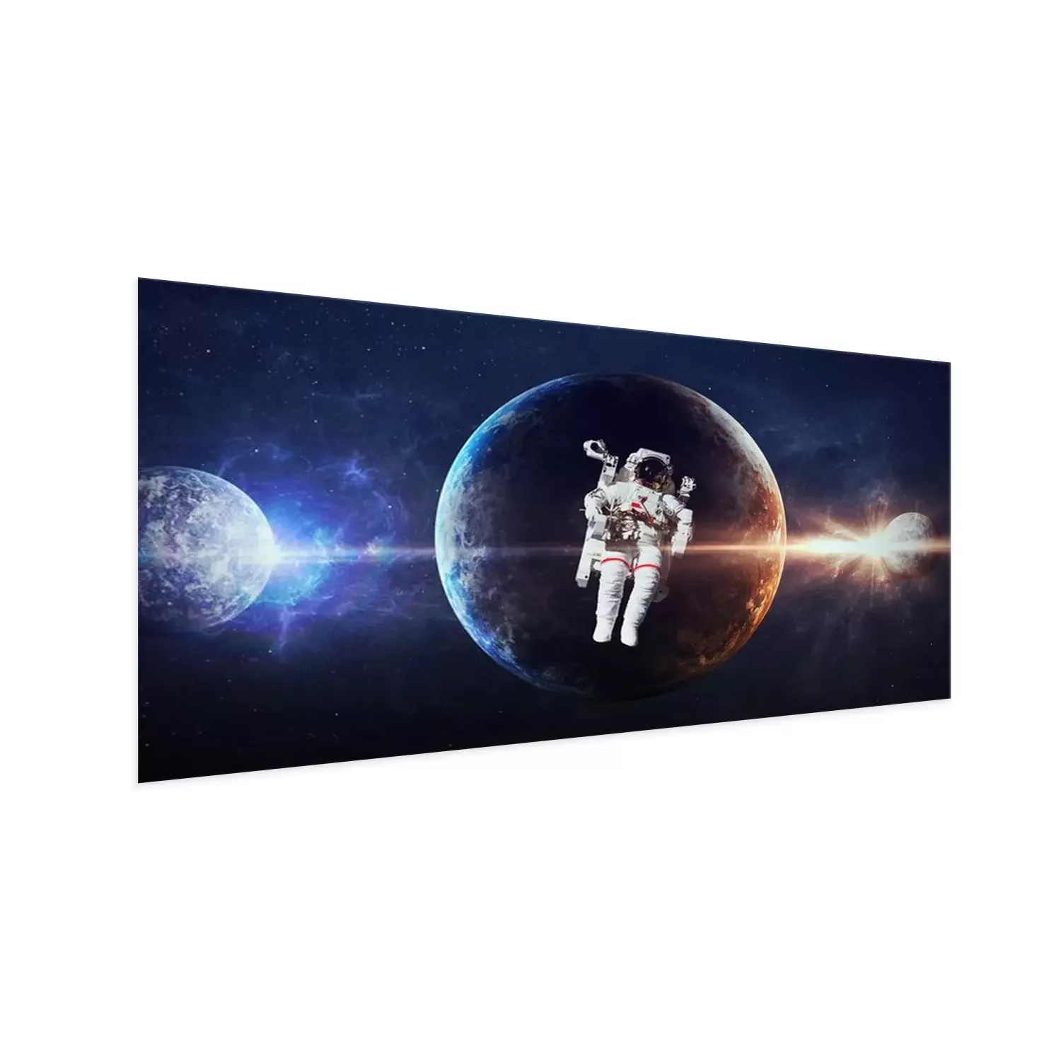 Poster: Weltraumthema und Astronaut auf dem Hintergrund von Planeten