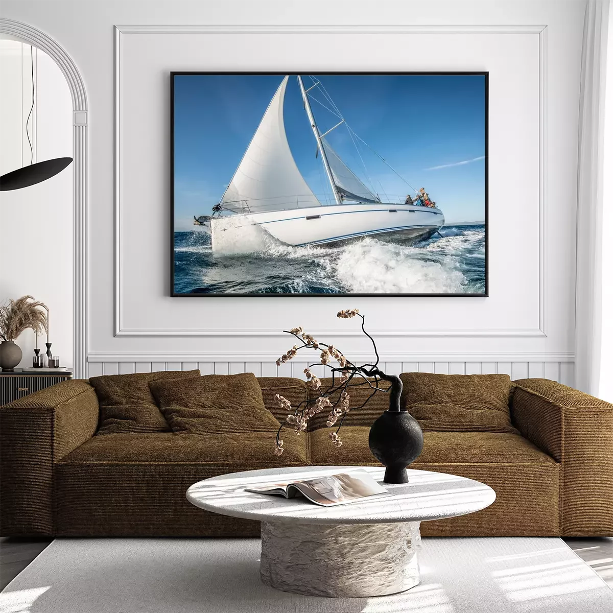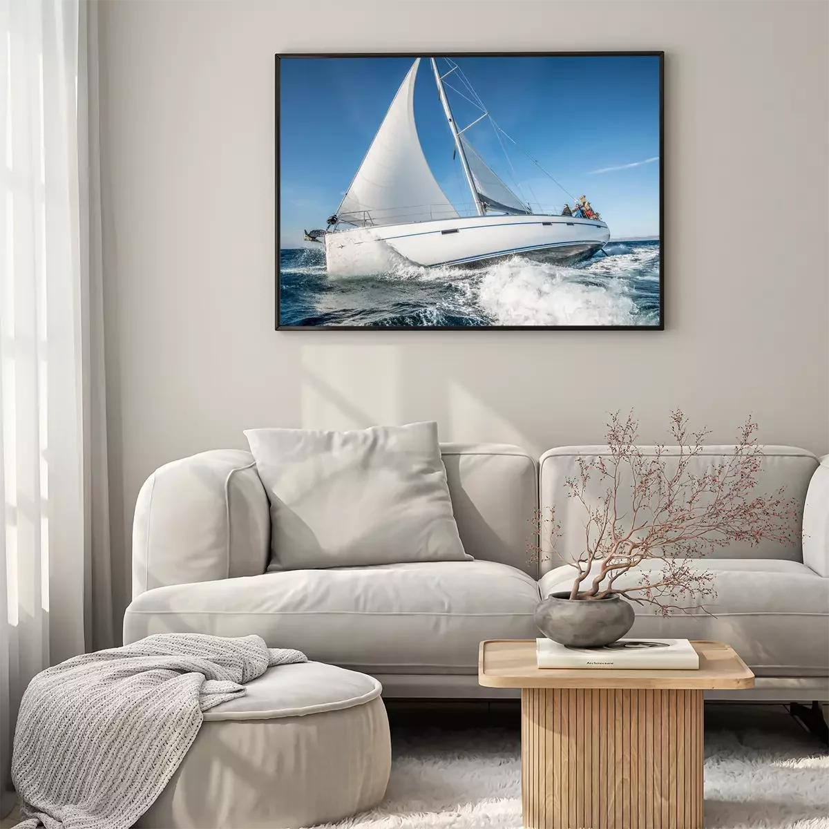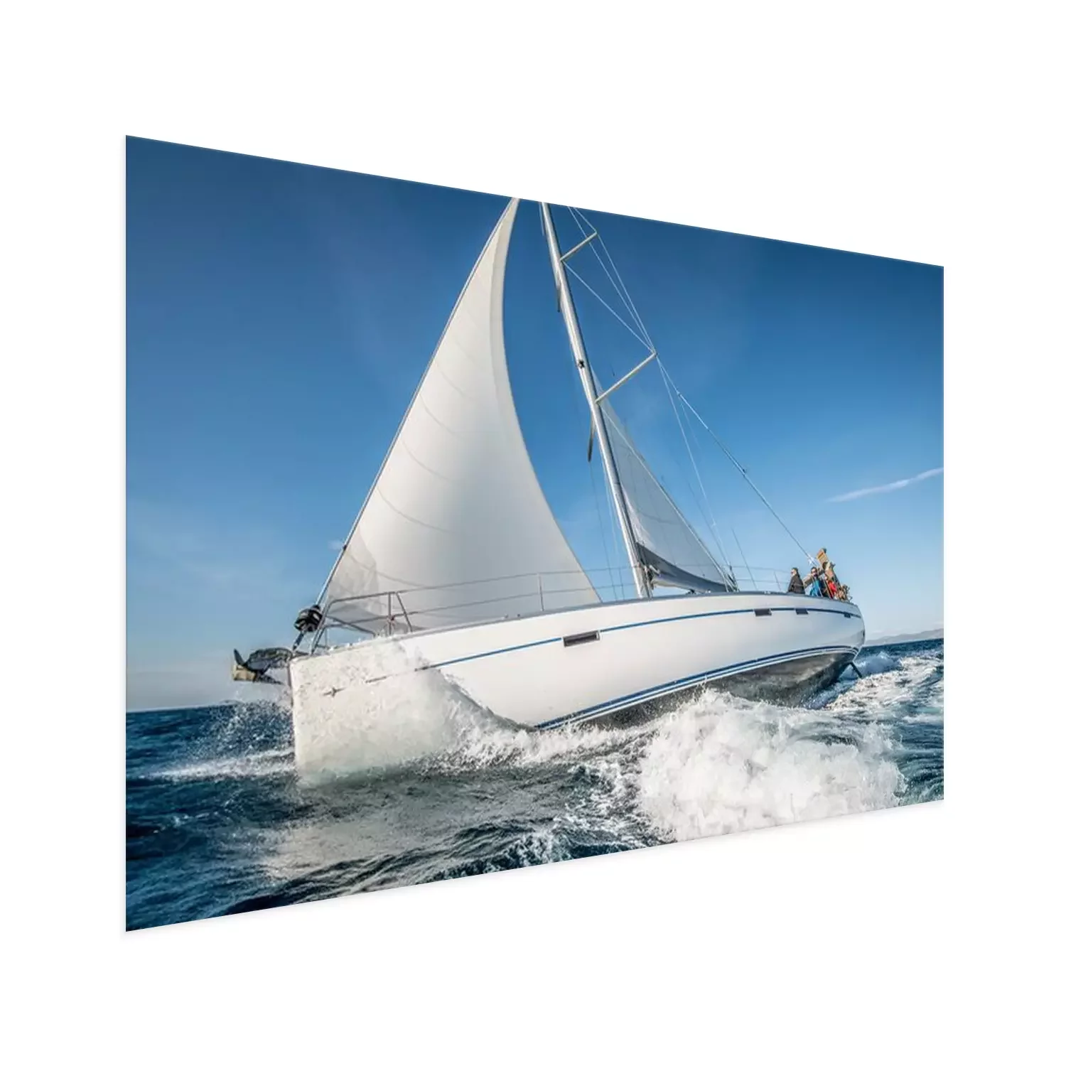 Poster Wendemanöver eines Segelbootes auf dem Wasser