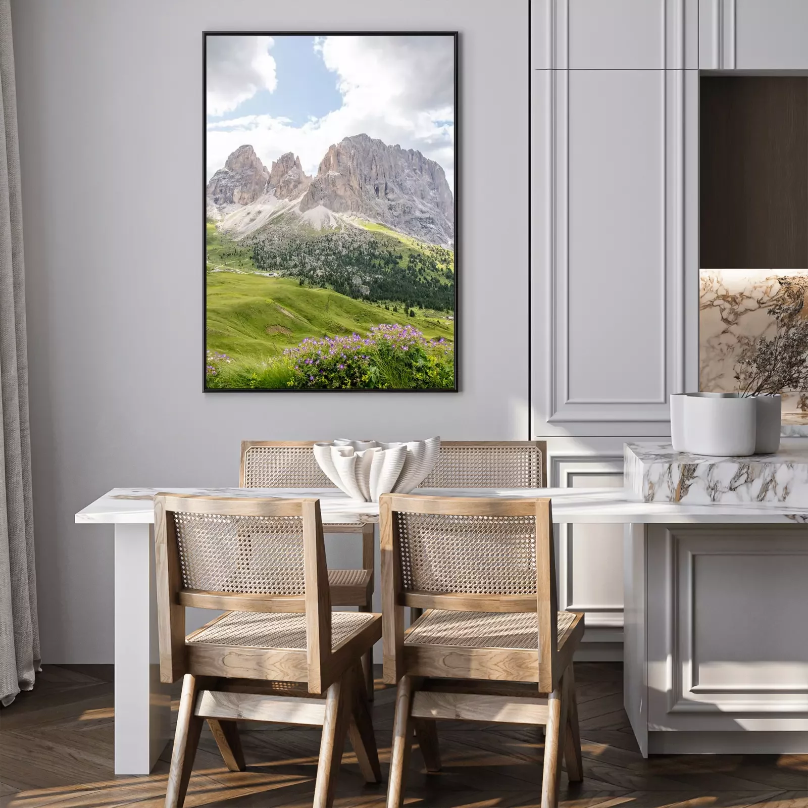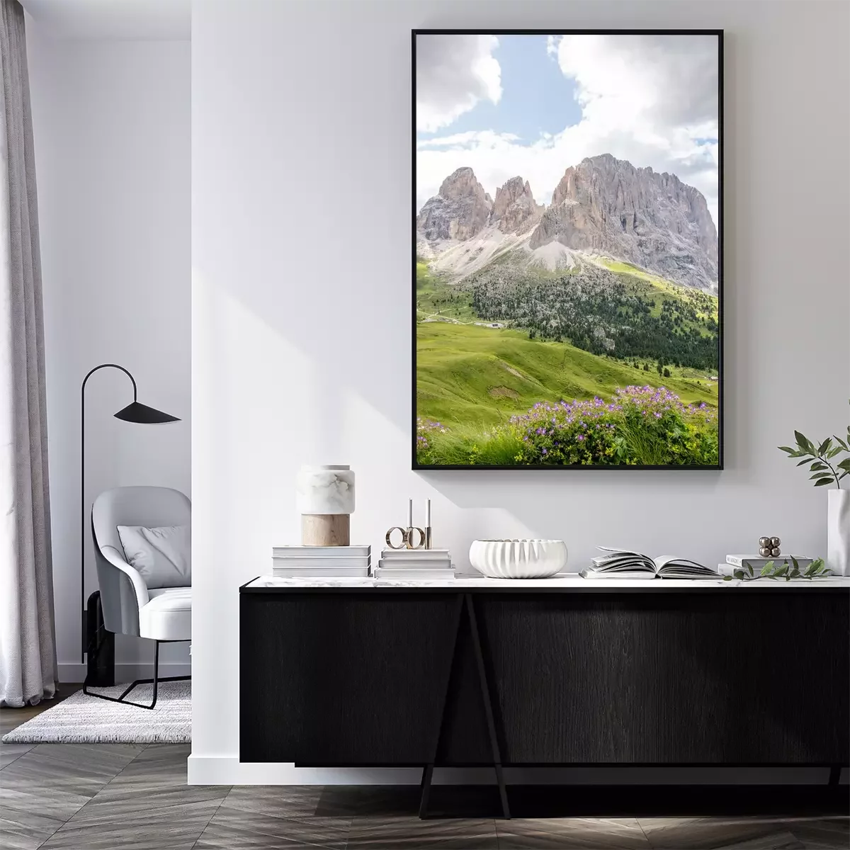 Poster: Wiese am Fuße der Berge