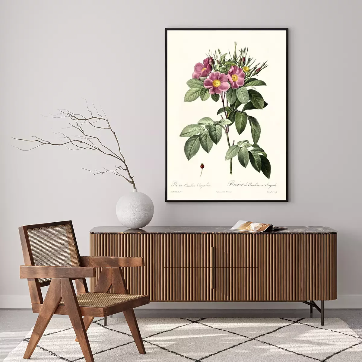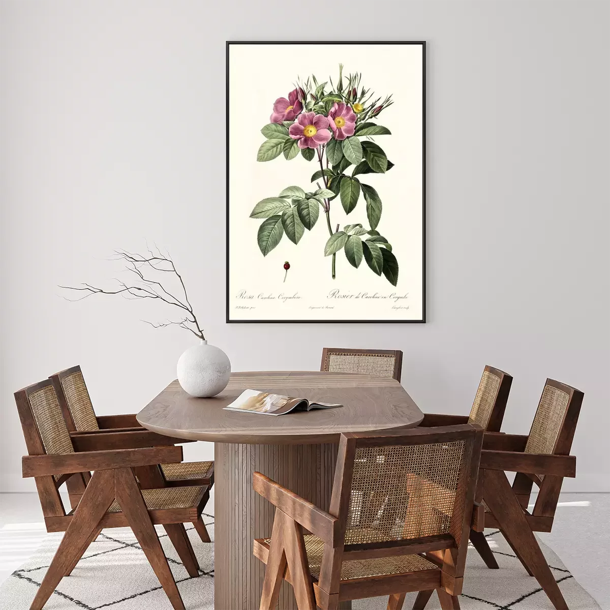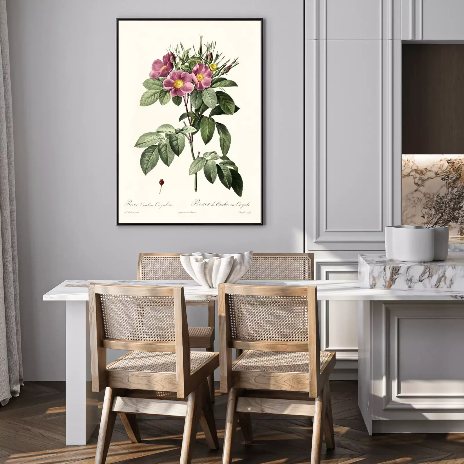 Botanische Grafik der weißen Rose mit Beschreibungen