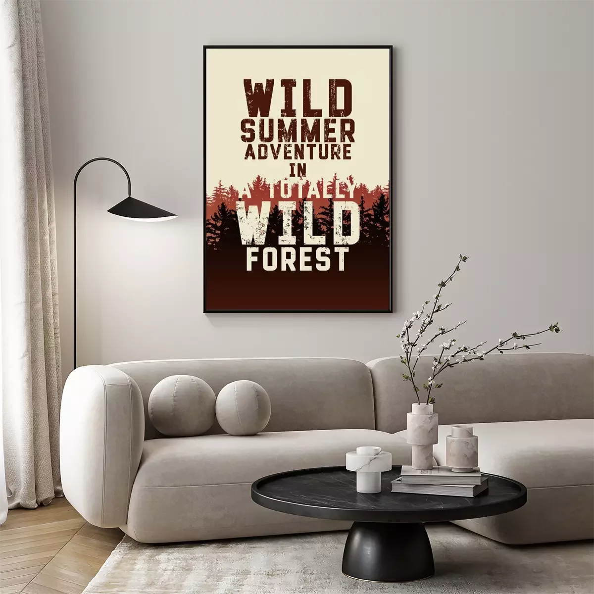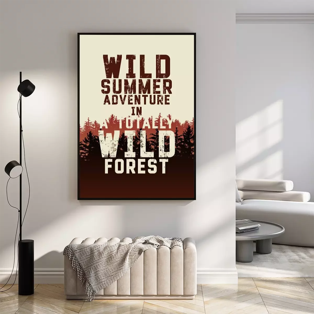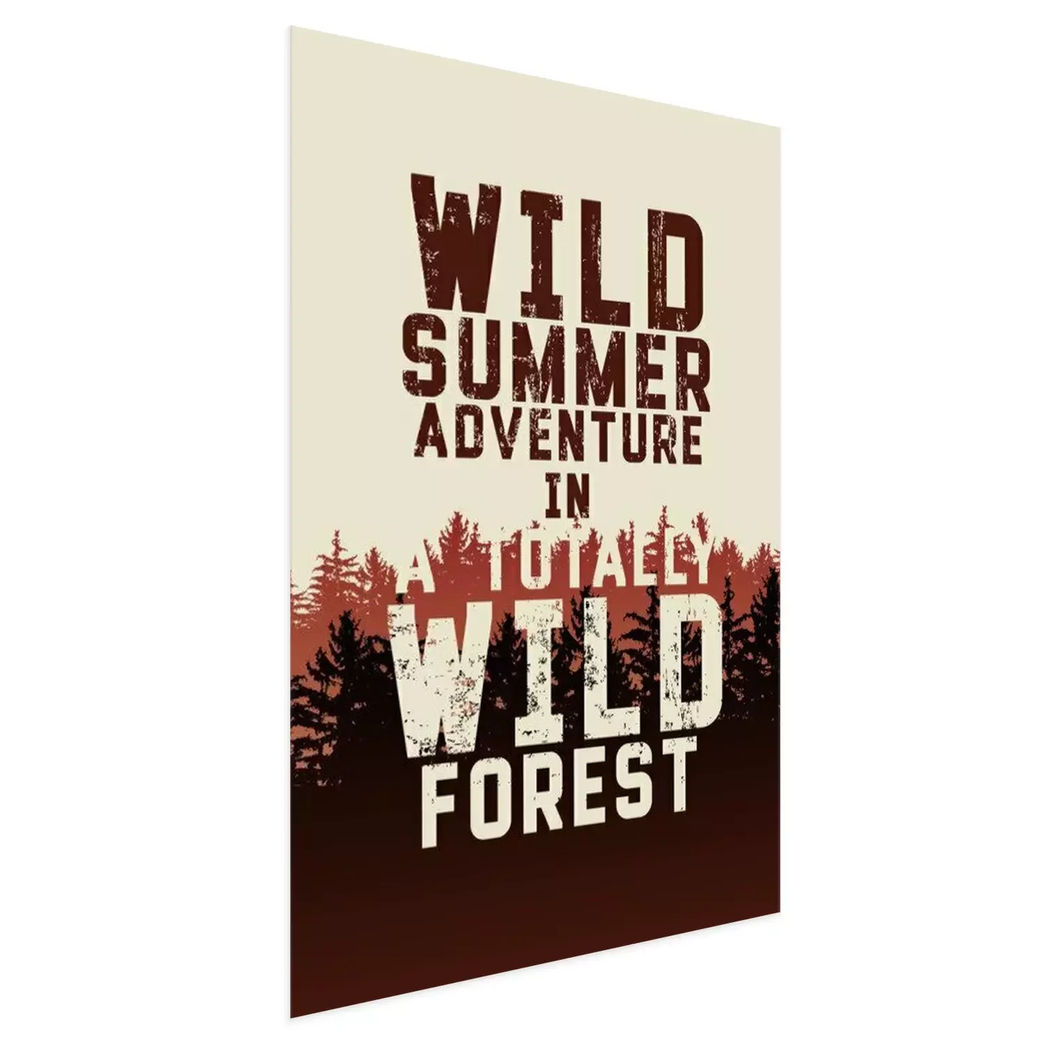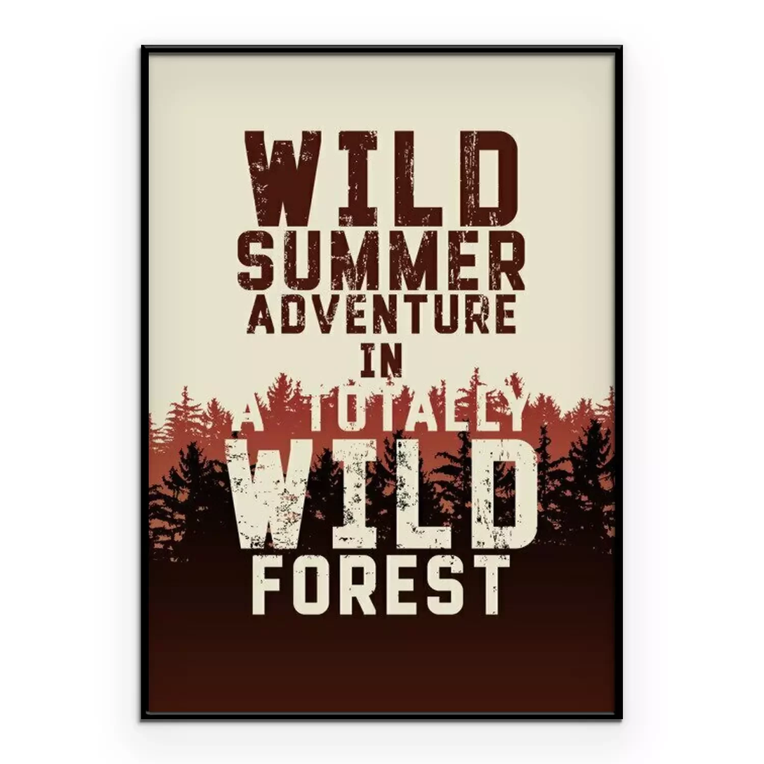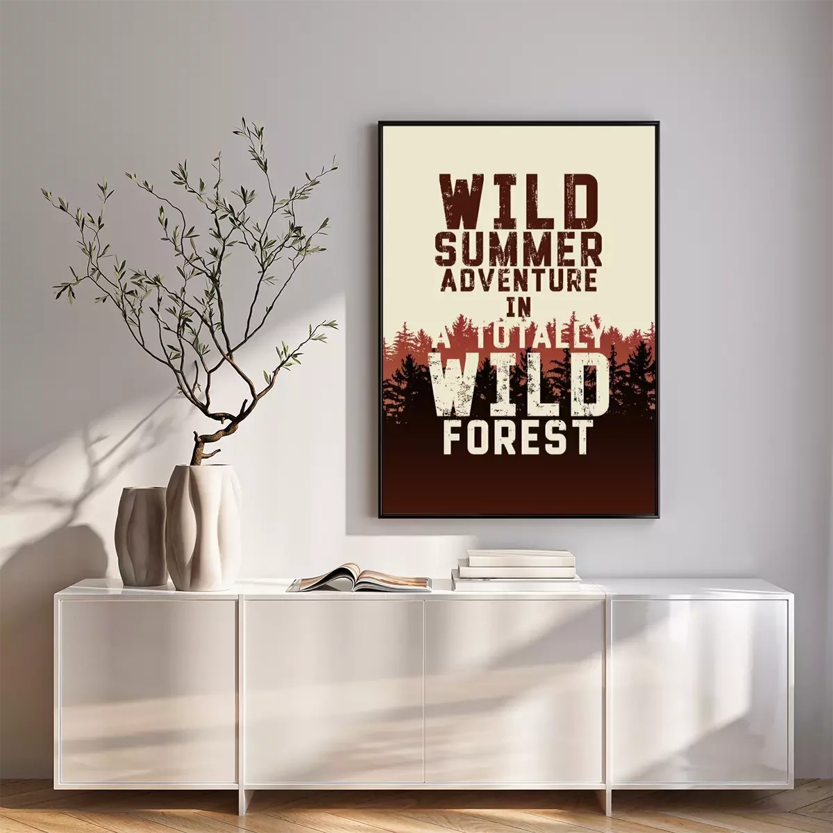 Poster: Wild Forest und Öko-Tourismus-Satz typografischen Vintage Grunge-Stil Poster mit Tannen Landschaft. Abbildung.