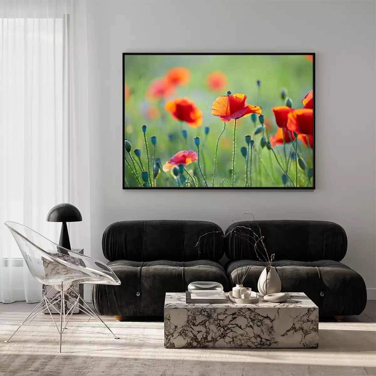 Poster Wildblumen in der Sonne vor unscharfem Hintergrund