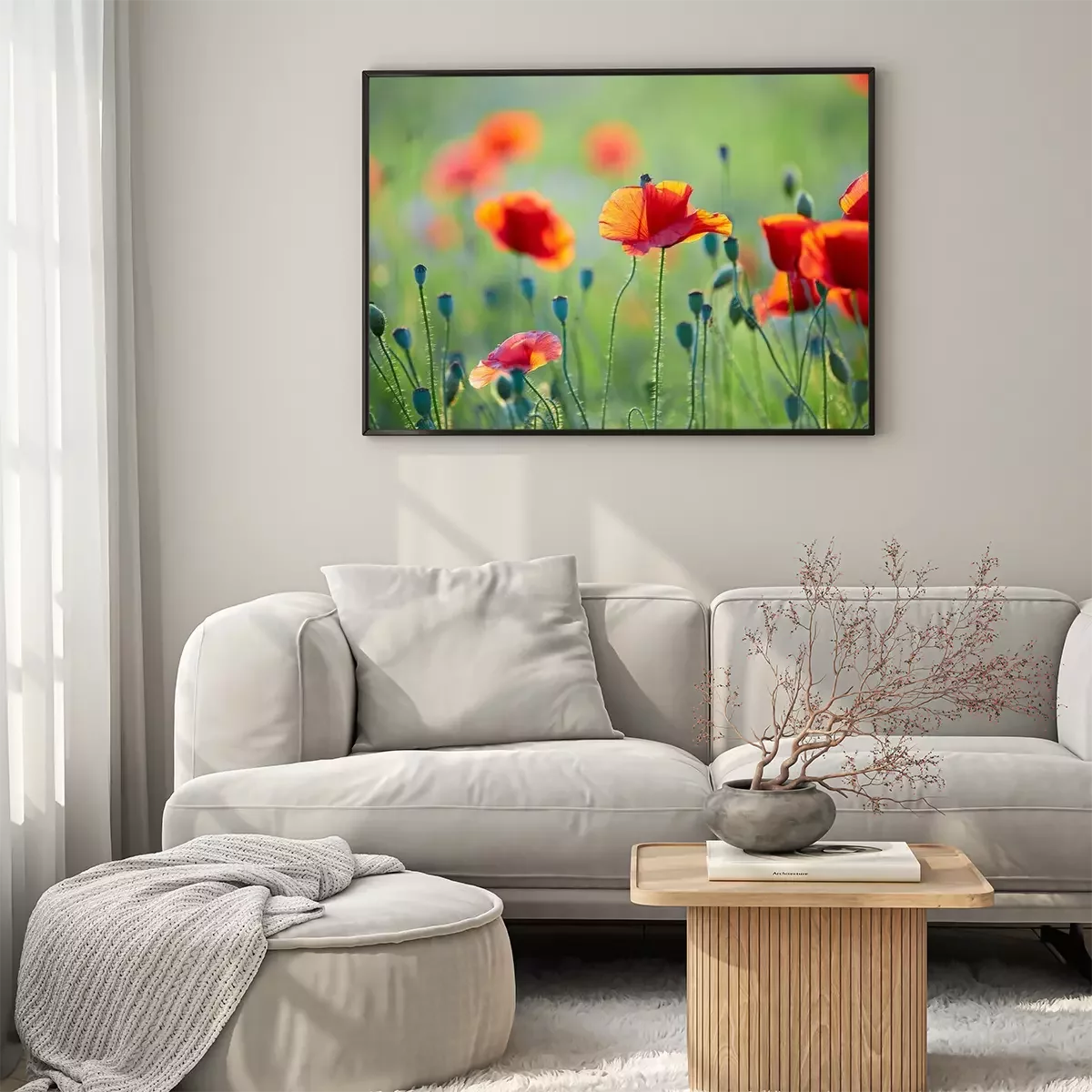 Poster: Wildblumen in der Sonne vor unscharfem Hintergrund
