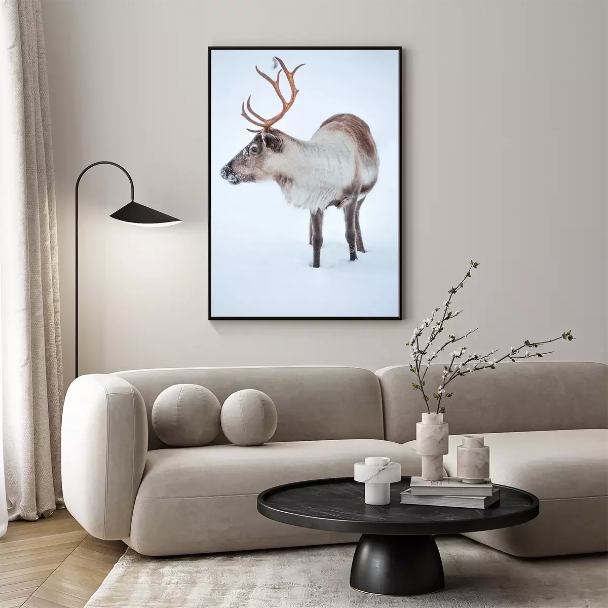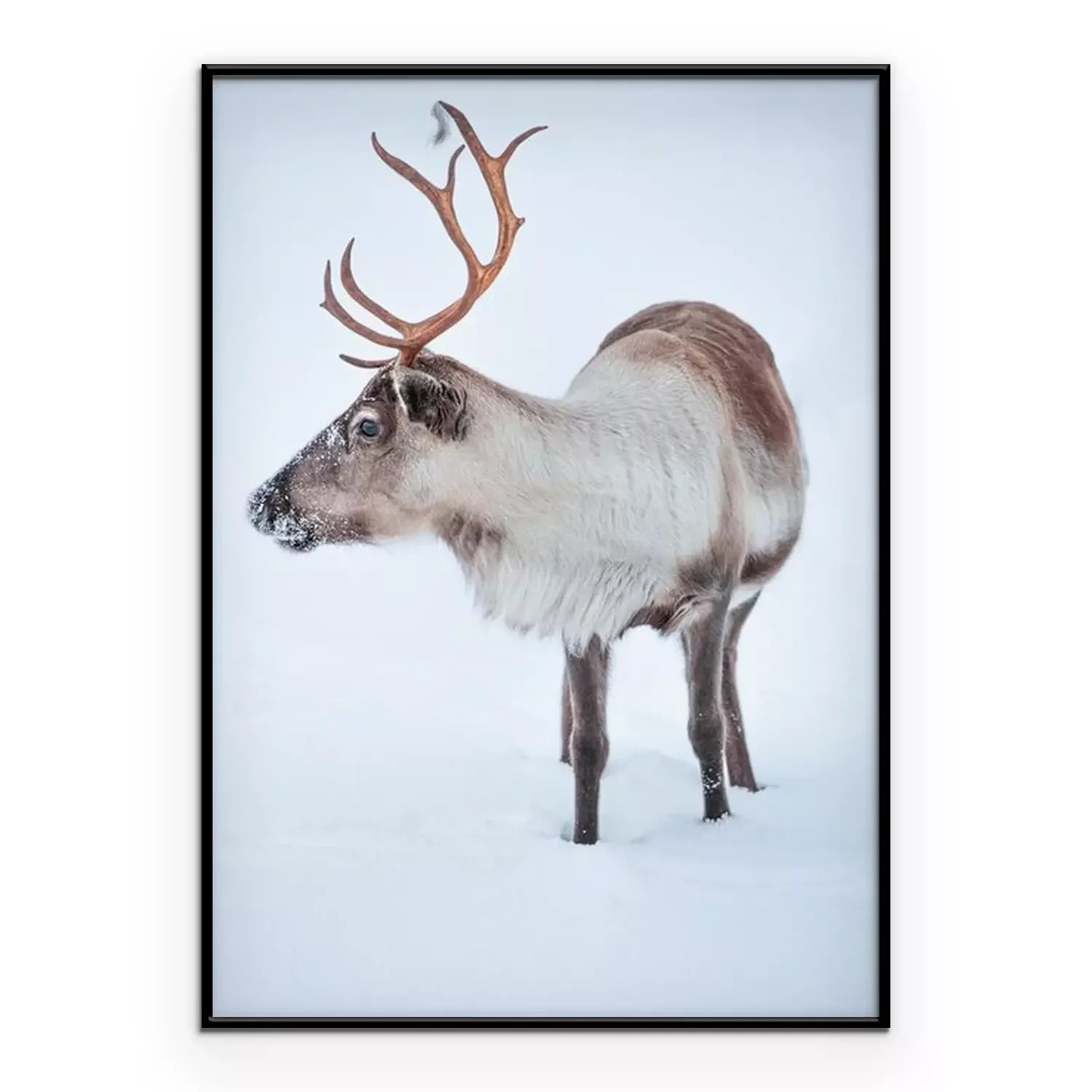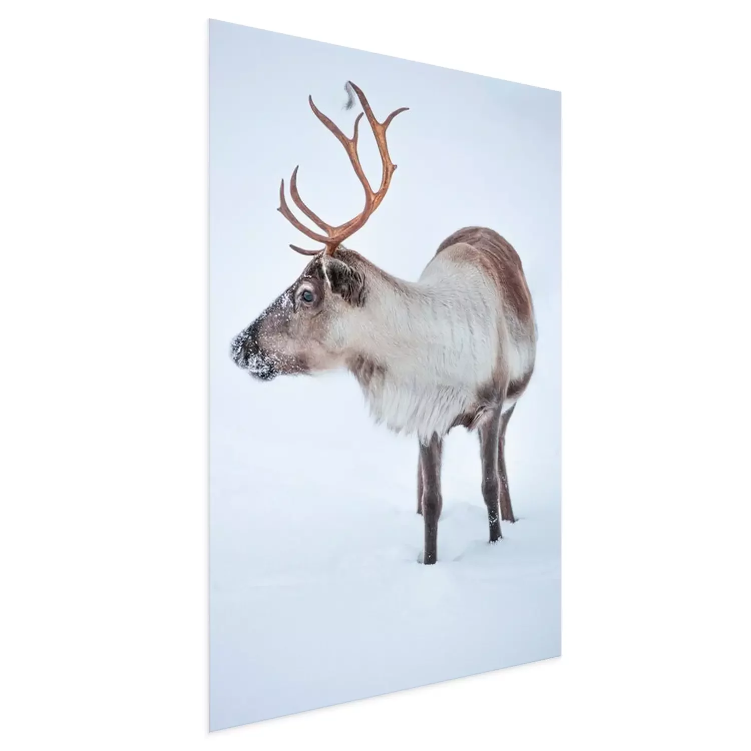 Poster: Wilder Rehbock auf verschneitem Hintergrund