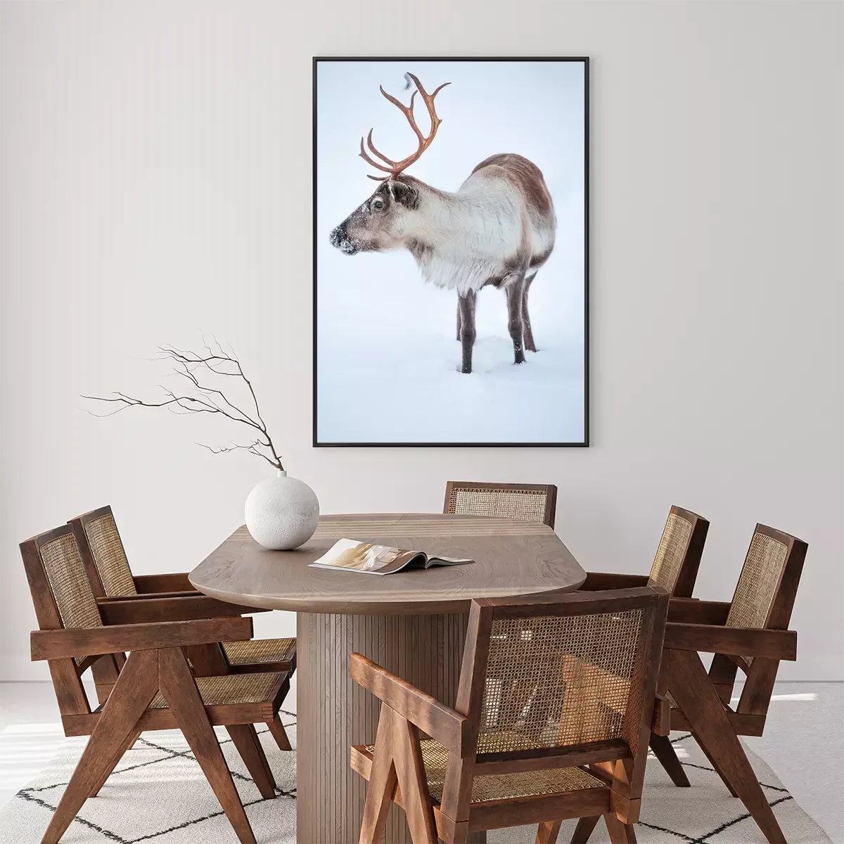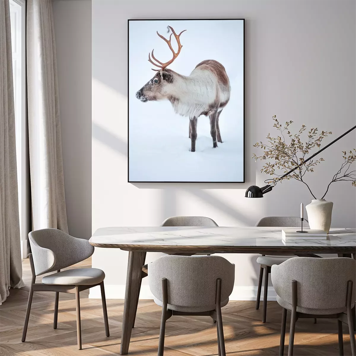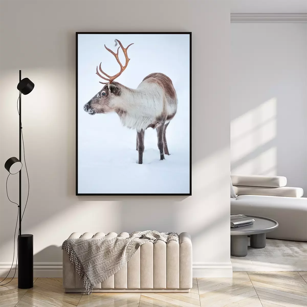 Poster: Wilder Rehbock auf verschneitem Hintergrund