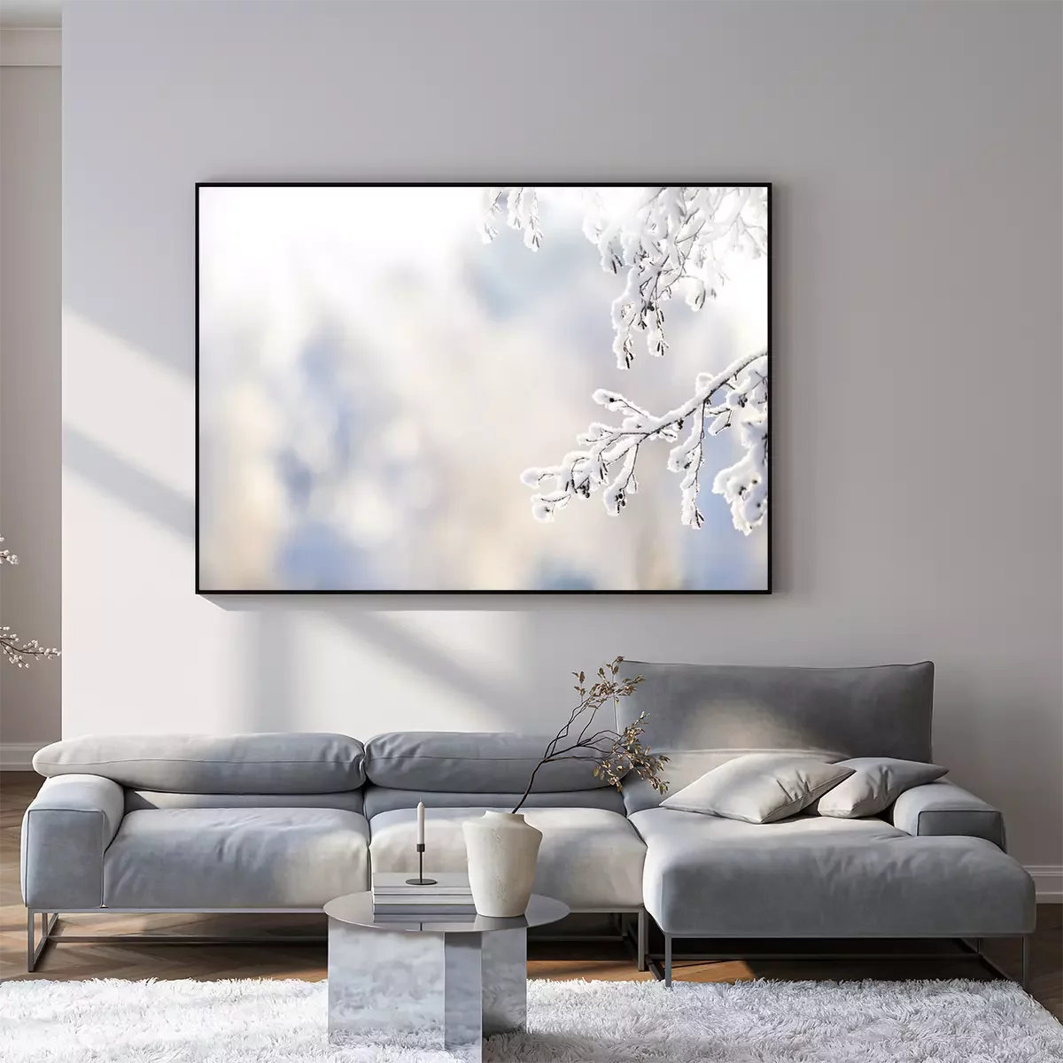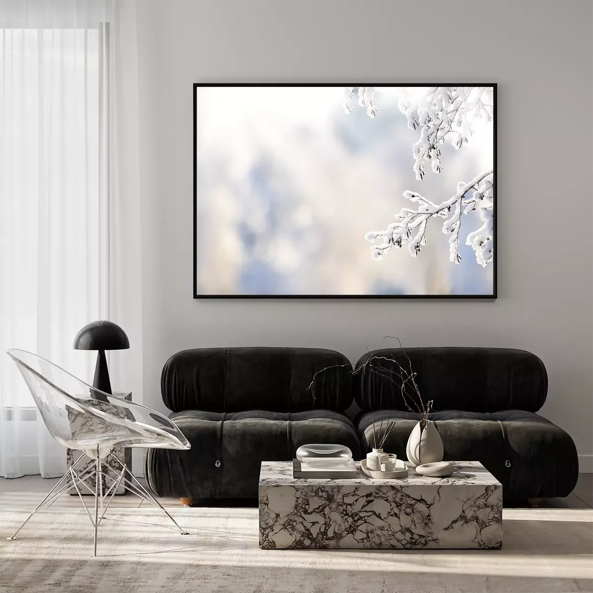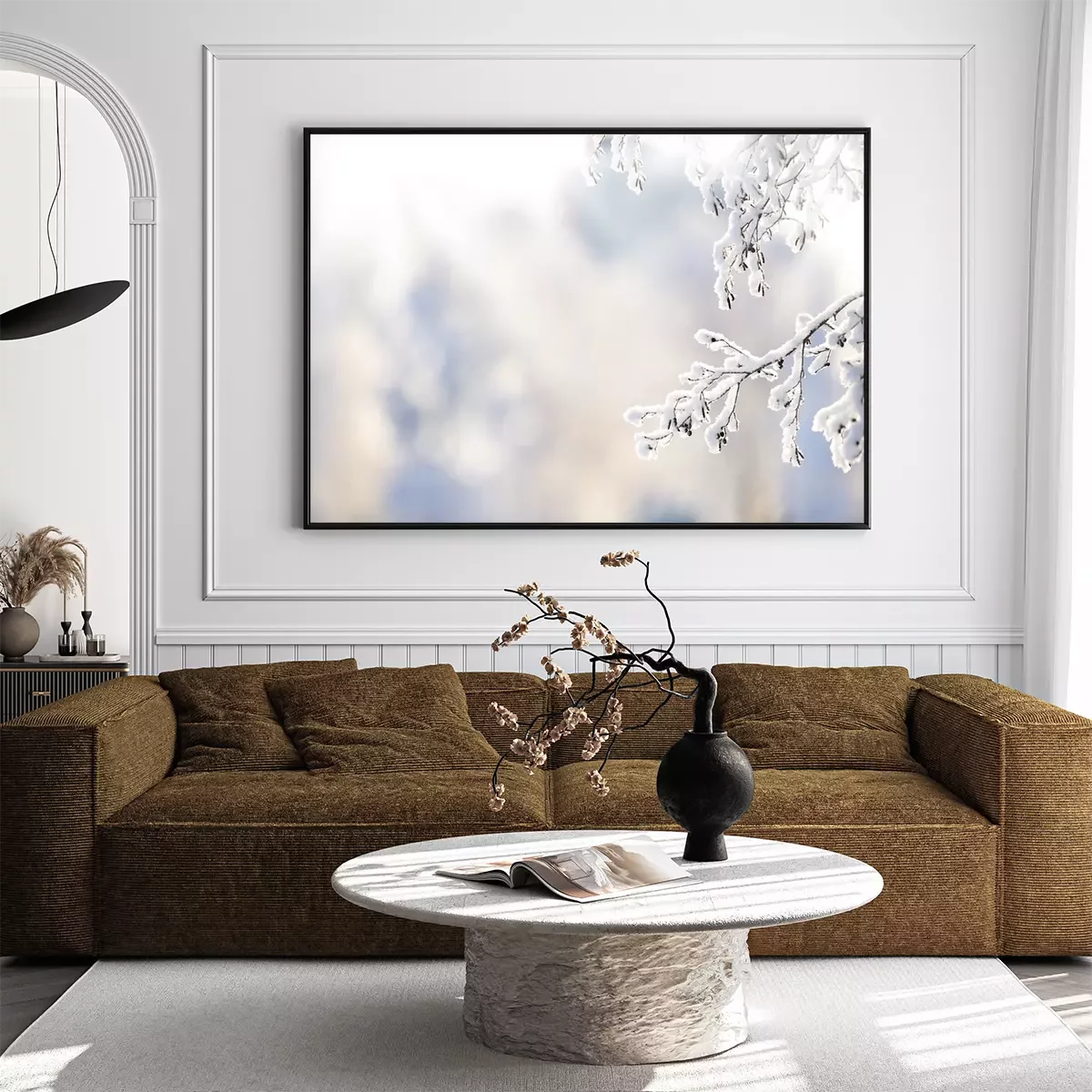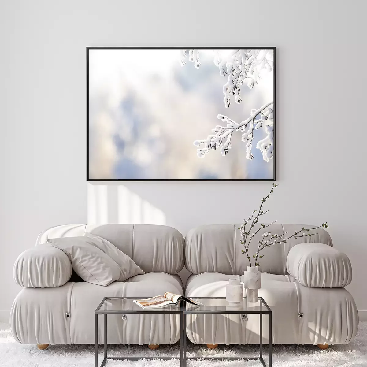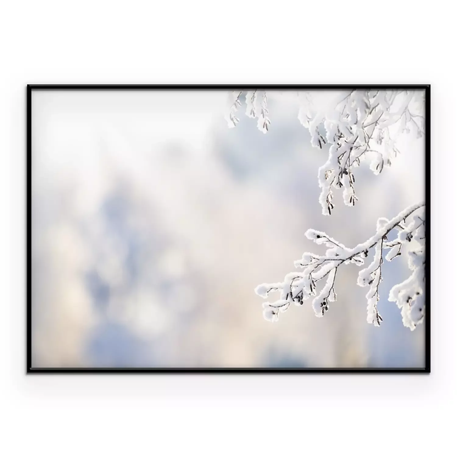 Poster: Winterliche Erlenzweige mit Schnee bedeckt