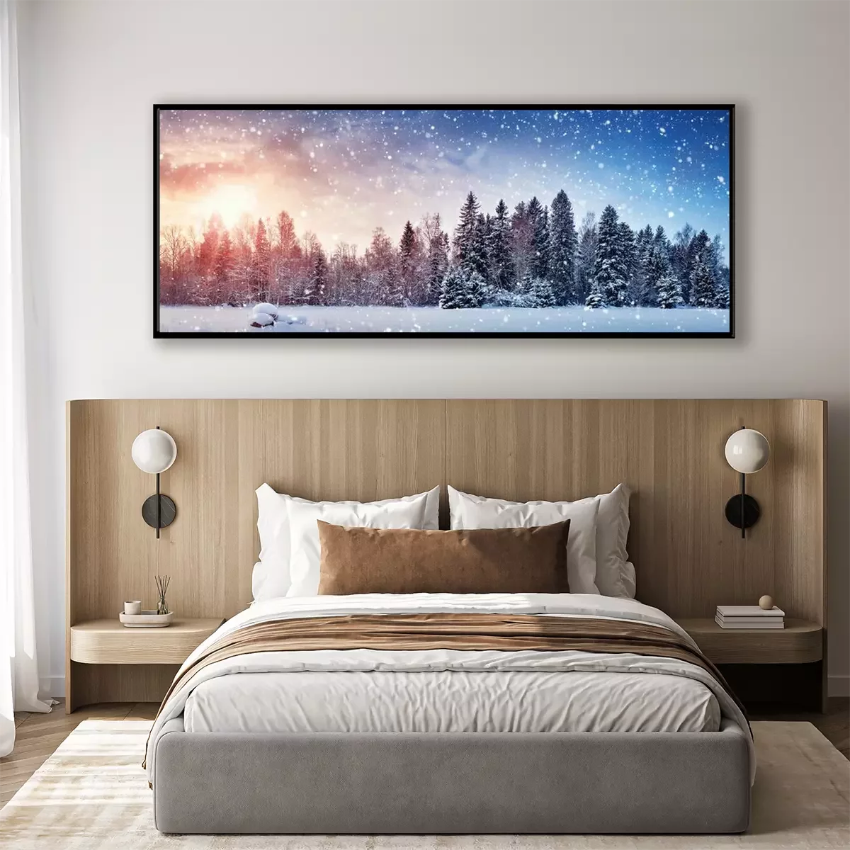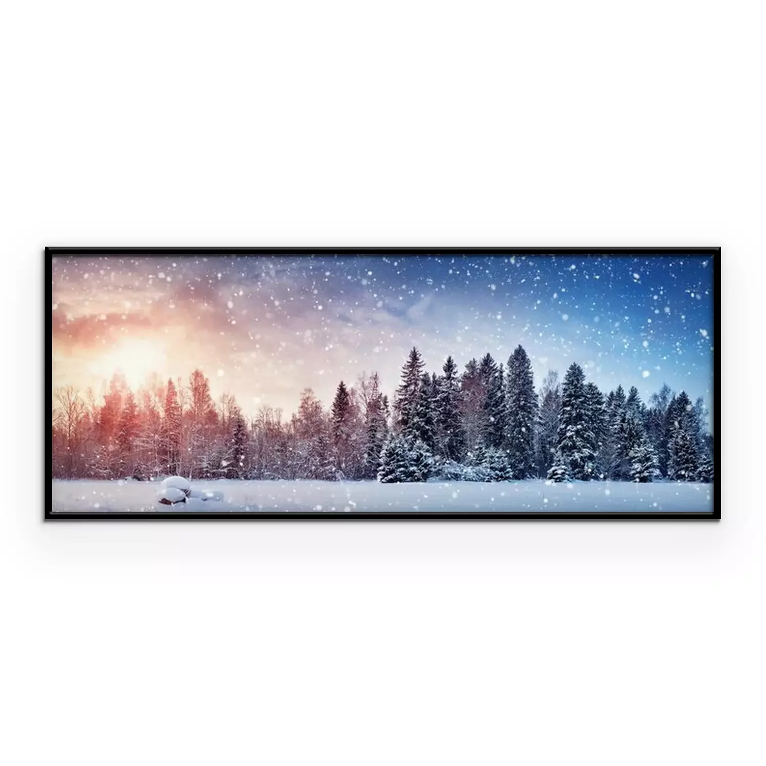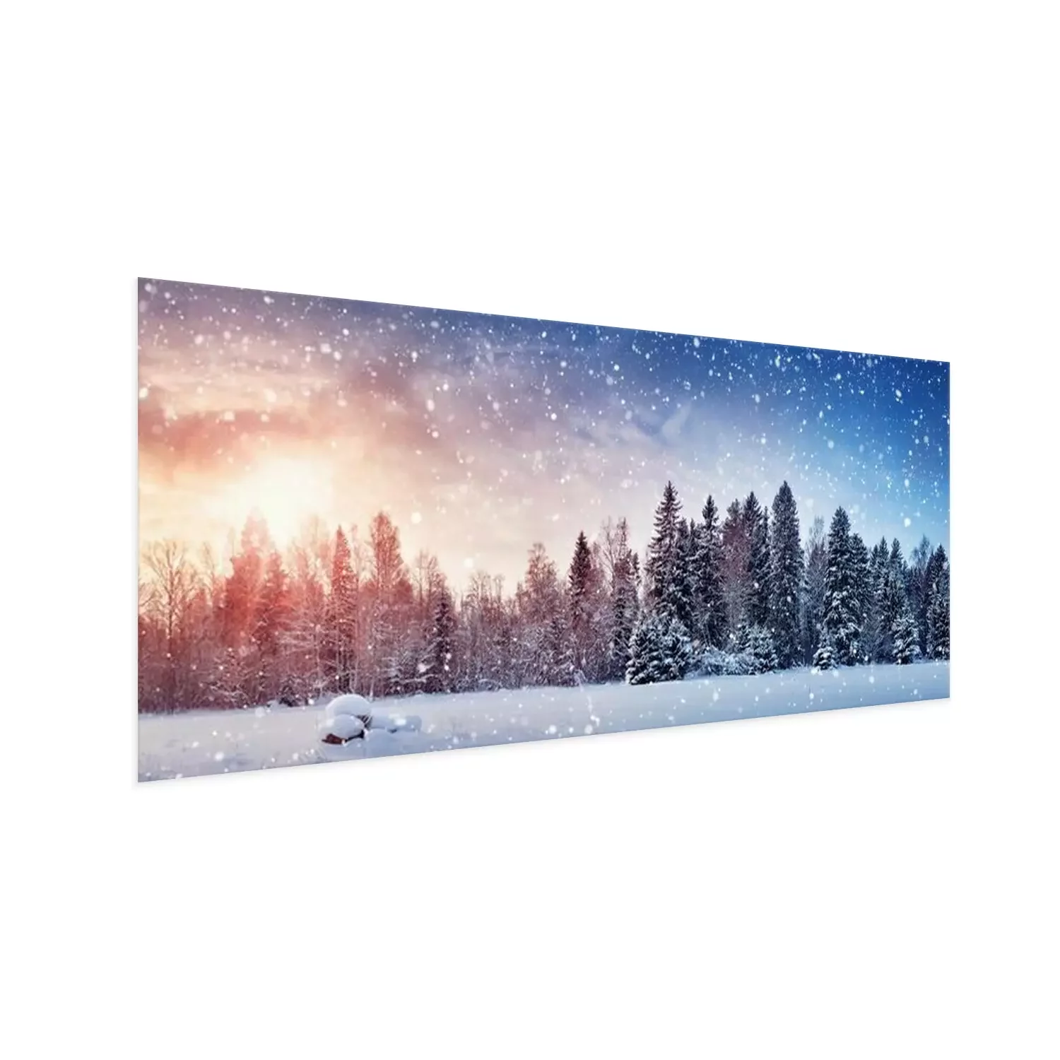 Poster: Winterpanorama des Waldes bei Sonnenuntergang